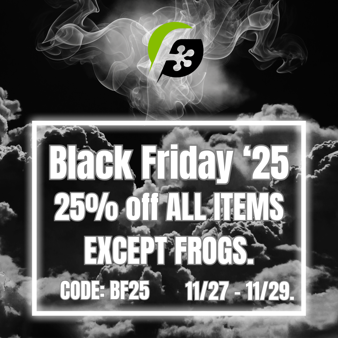 BLACK FRIDAY STARTS NOW! THURSDAY THROUGH SUNDAY GET 25% OFF WITH CODE: BF25 ON ALL ITEMS EXCEPT FROGS! HURRY BEFORE SALE ENDS!
