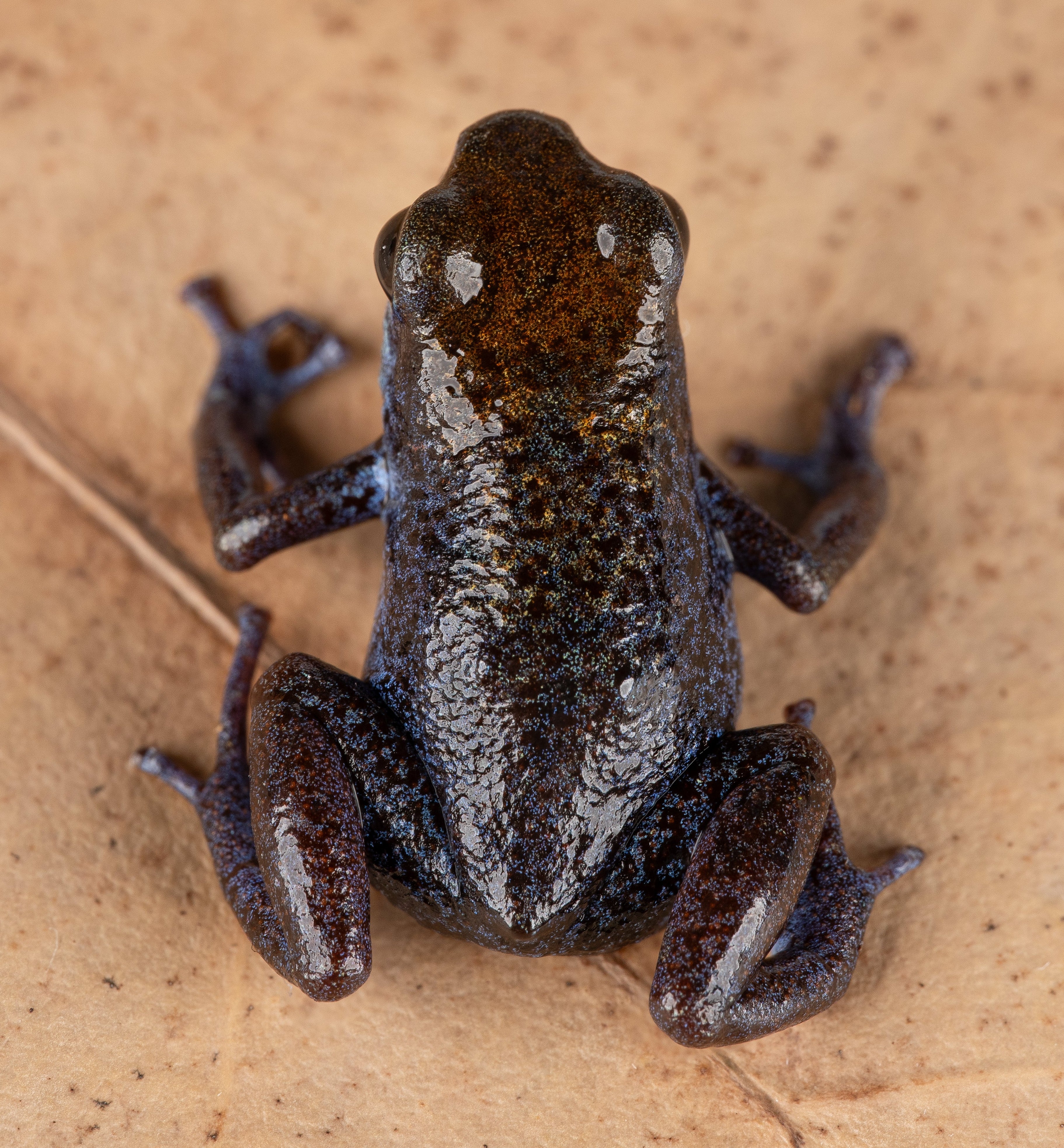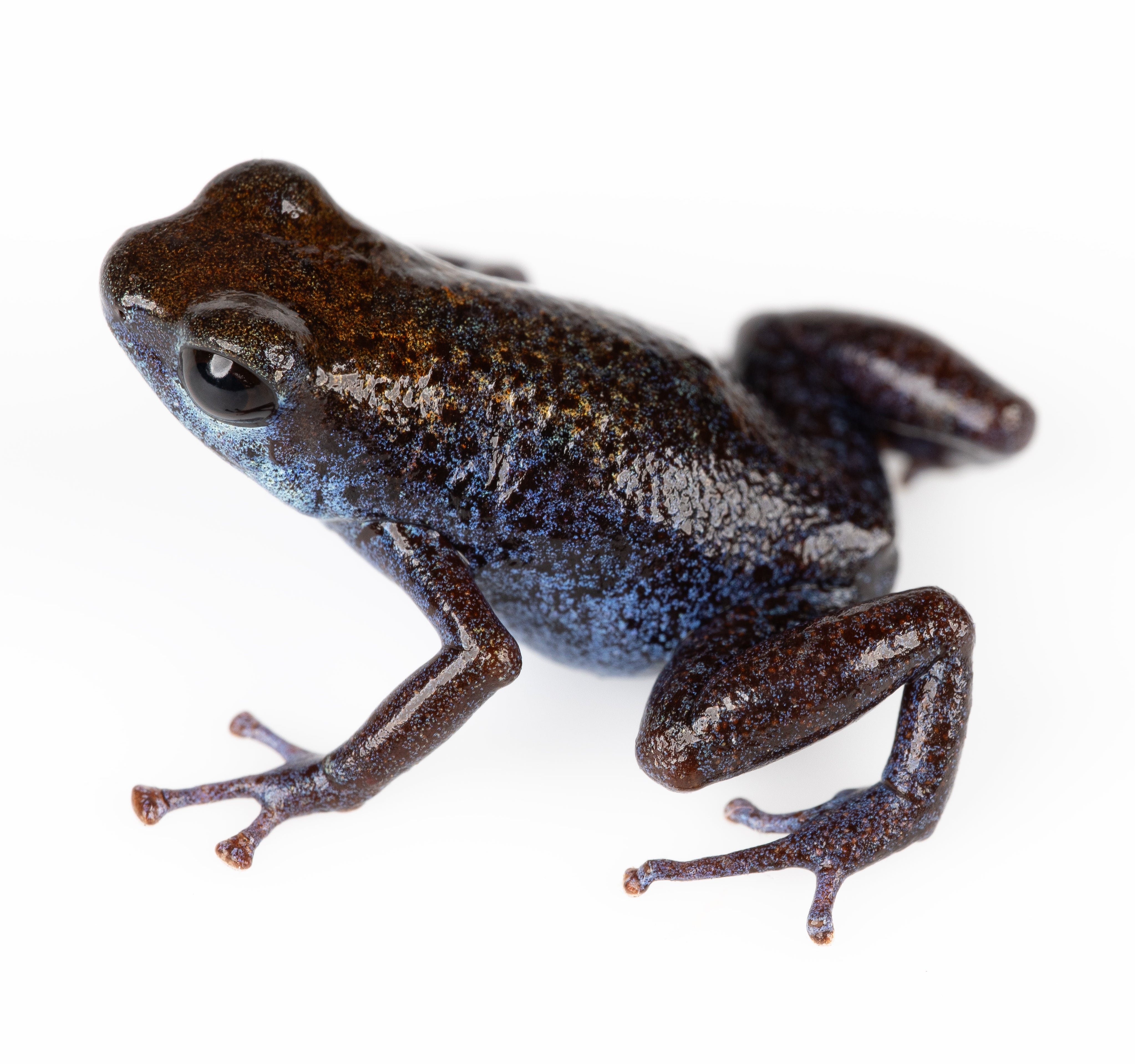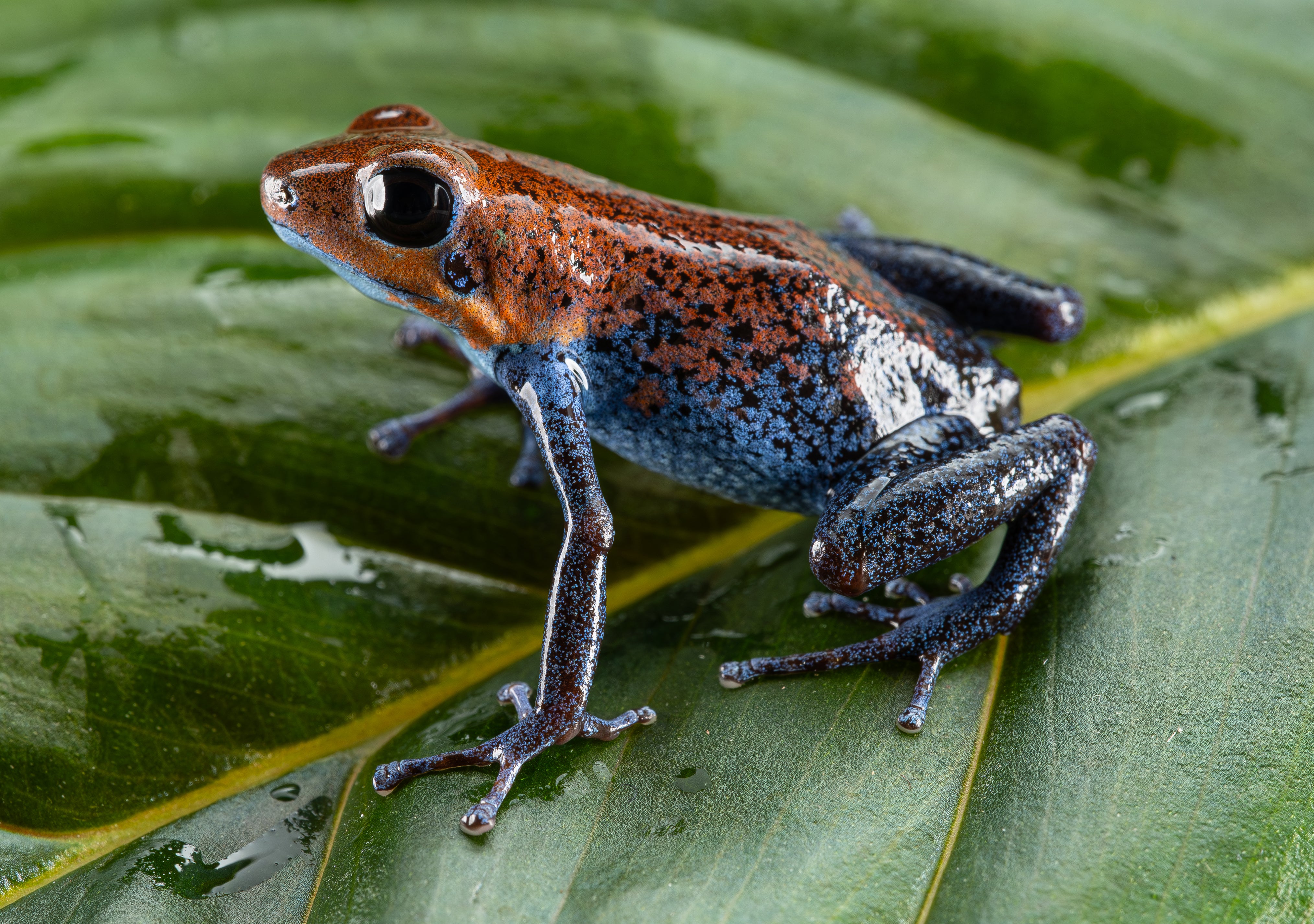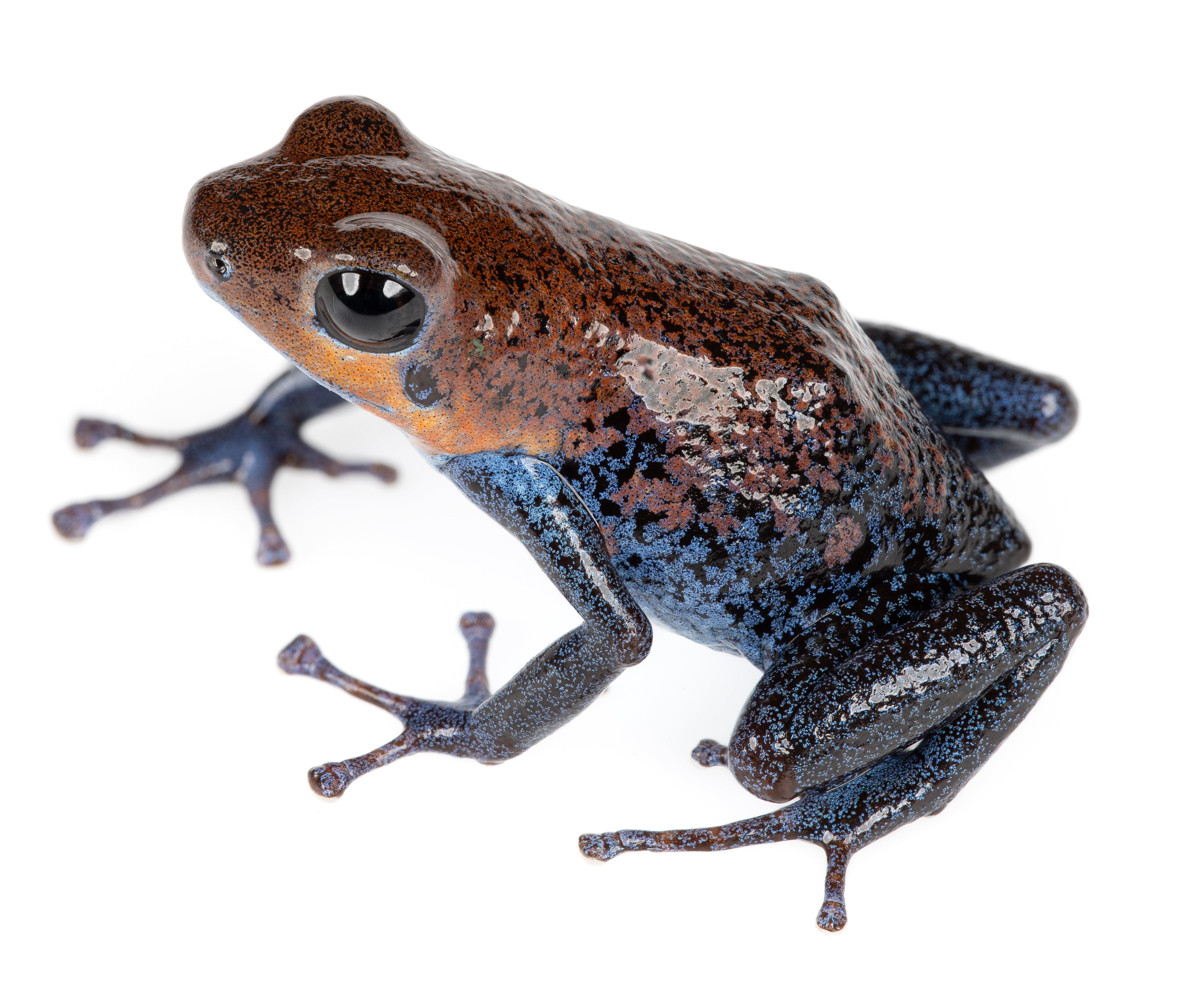 Oophaga pumilio "Almirante" is a small poison dart frog with beautiful, purplish coloration. They are found near Pennisula de Aguacate and Teirra Oscura in Panama. They do fine in small groups, but do best as a pair or trio when sexual maturity is reached. The males often have control of 1 to 5 square meters of territory in the wild, so rival males may display aggression for supremacy. They usually lay 3 to 10 eggs on glossy leaves, on glass, or sometimes in leaf litter. Tadpoles must be raised by adults because they feed on infertile eggs from the female. These dart frogs are interesting to many hobbyists because they exhibit biparental care. No more than a trio should go in a 20 gallon vertical conversion tank or a 18 x 24 Exo-terra enclosure. Additional information can be found, of course, through our complimentary Encyclopedia Database: DendroKnow Project.