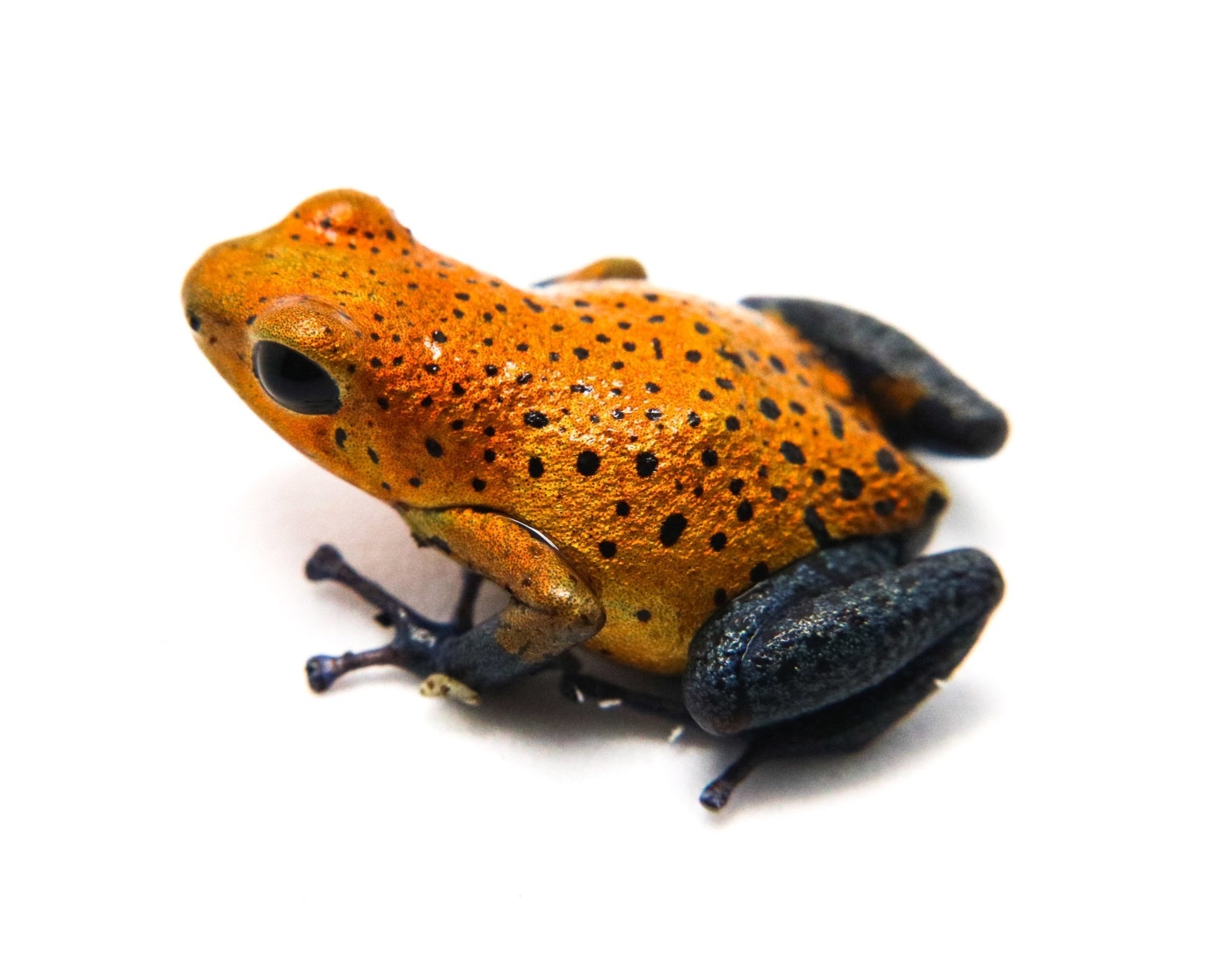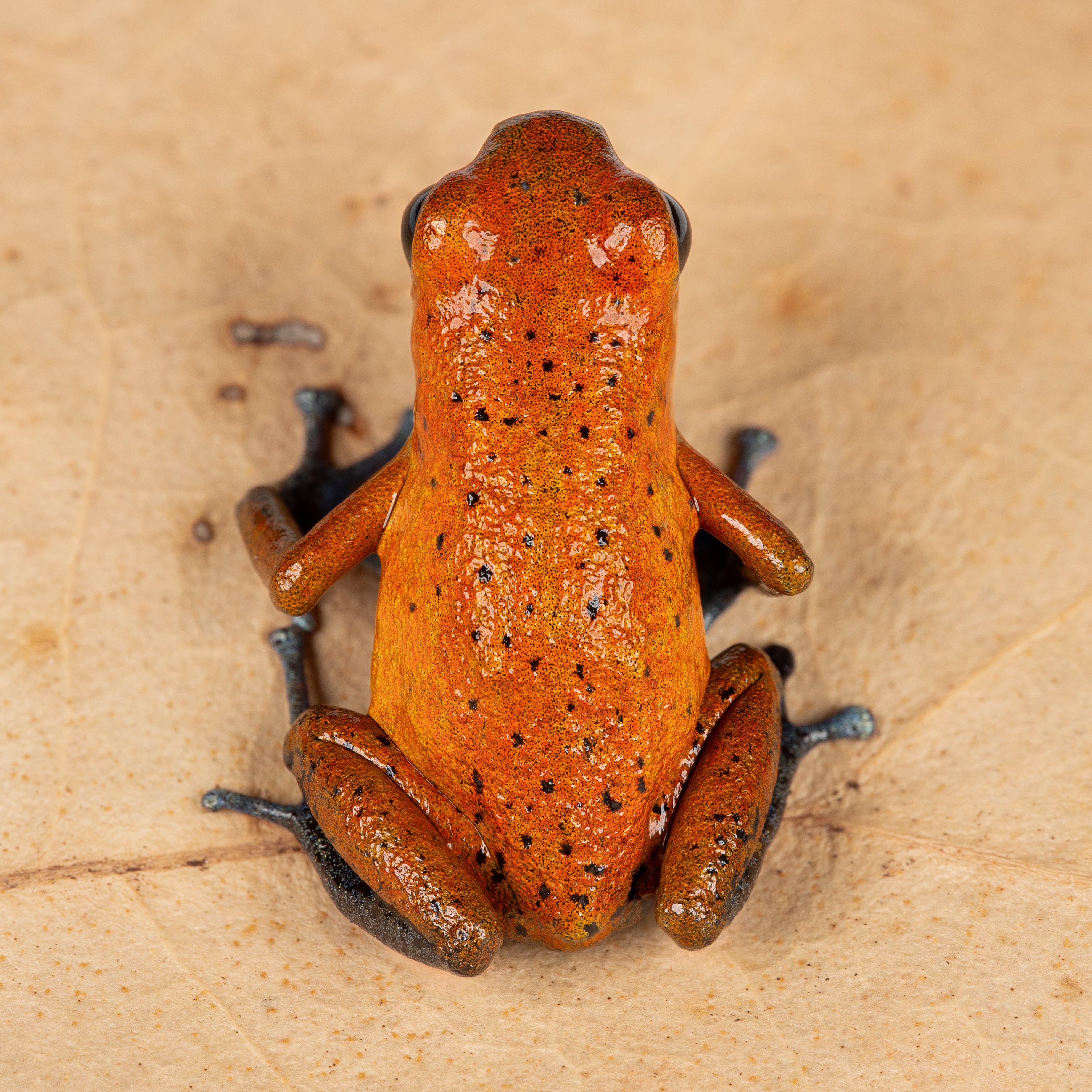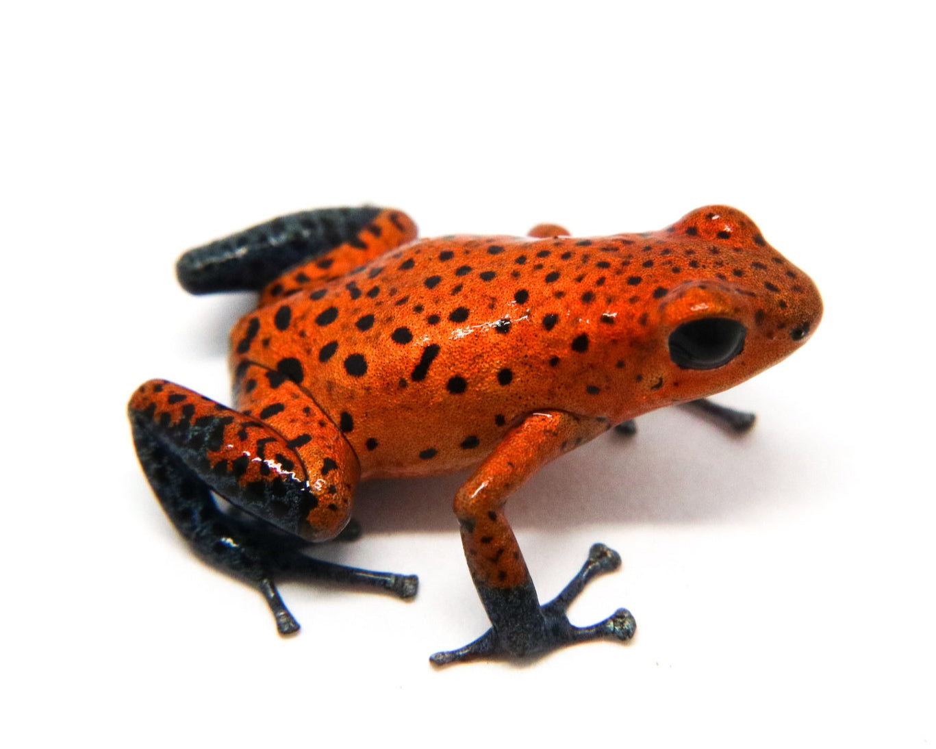 Oophaga pumilio "Cristobal" locale is restricted to the island of Cristobal in the Bocas del Torro providence. They have wonderful orange to red coloration. They do fine in small groups, but do best as a pair or trio when sexual maturity is reached. The males often have control of 1 to 5 square meters of territory in the wild, so rival males may display aggression for supremacy. They usually lay 3 to 10 eggs on glossy leaves, on glass, or sometimes in leaf litter. Tadpoles must be raised by adults because they feed on infertile eggs from the female. These dart frogs are interesting to many hobbyists because they exhibit biparental care. No more than a trio should go in a 20 gallon vertical conversion tank or a 18 x 24 Exo-terra enclosure. Additional information can be found, of course, through our complimentary Encyclopedia Database: DendroKnow Project.