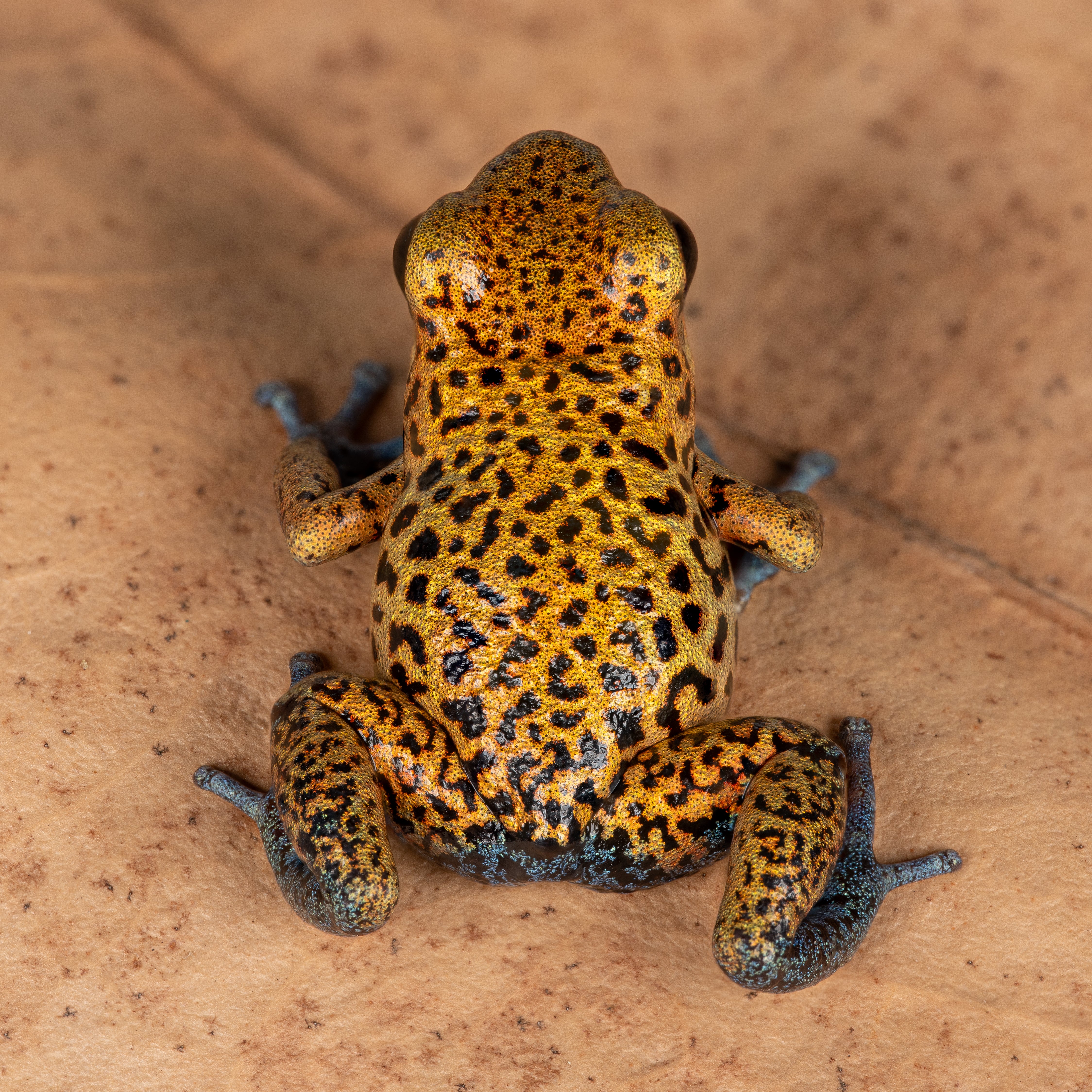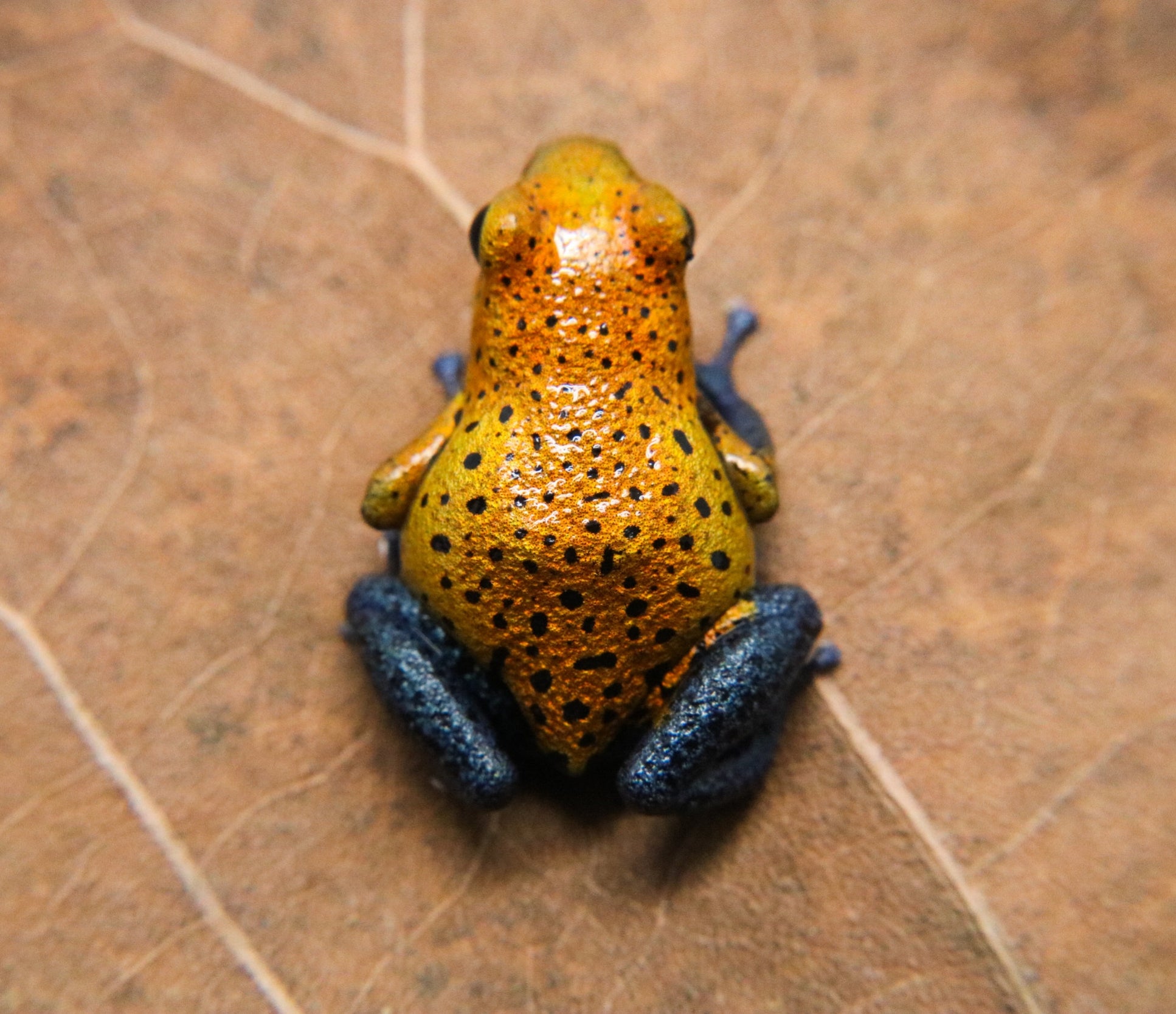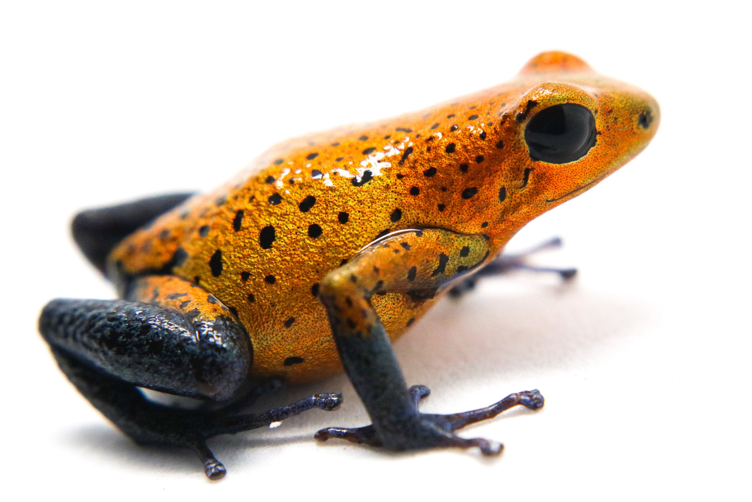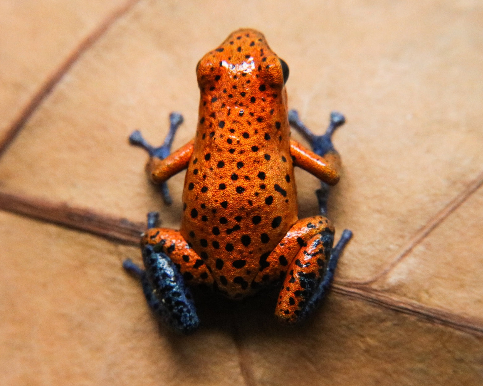 Oophaga pumilio "Cristobal" locale is restricted to the island of Cristobal in the Bocas del Torro providence. They have wonderful orange to red coloration. They do fine in small groups, but do best as a pair or trio when sexual maturity is reached. The males often have control of 1 to 5 square meters of territory in the wild, so rival males may display aggression for supremacy. They usually lay 3 to 10 eggs on glossy leaves, on glass, or sometimes in leaf litter. Tadpoles must be raised by adults because they feed on infertile eggs from the female. These dart frogs are interesting to many hobbyists because they exhibit biparental care. No more than a trio should go in a 20 gallon vertical conversion tank or a 18 x 24 Exo-terra enclosure. Additional information can be found, of course, through our complimentary Encyclopedia Database: DendroKnow Project.
