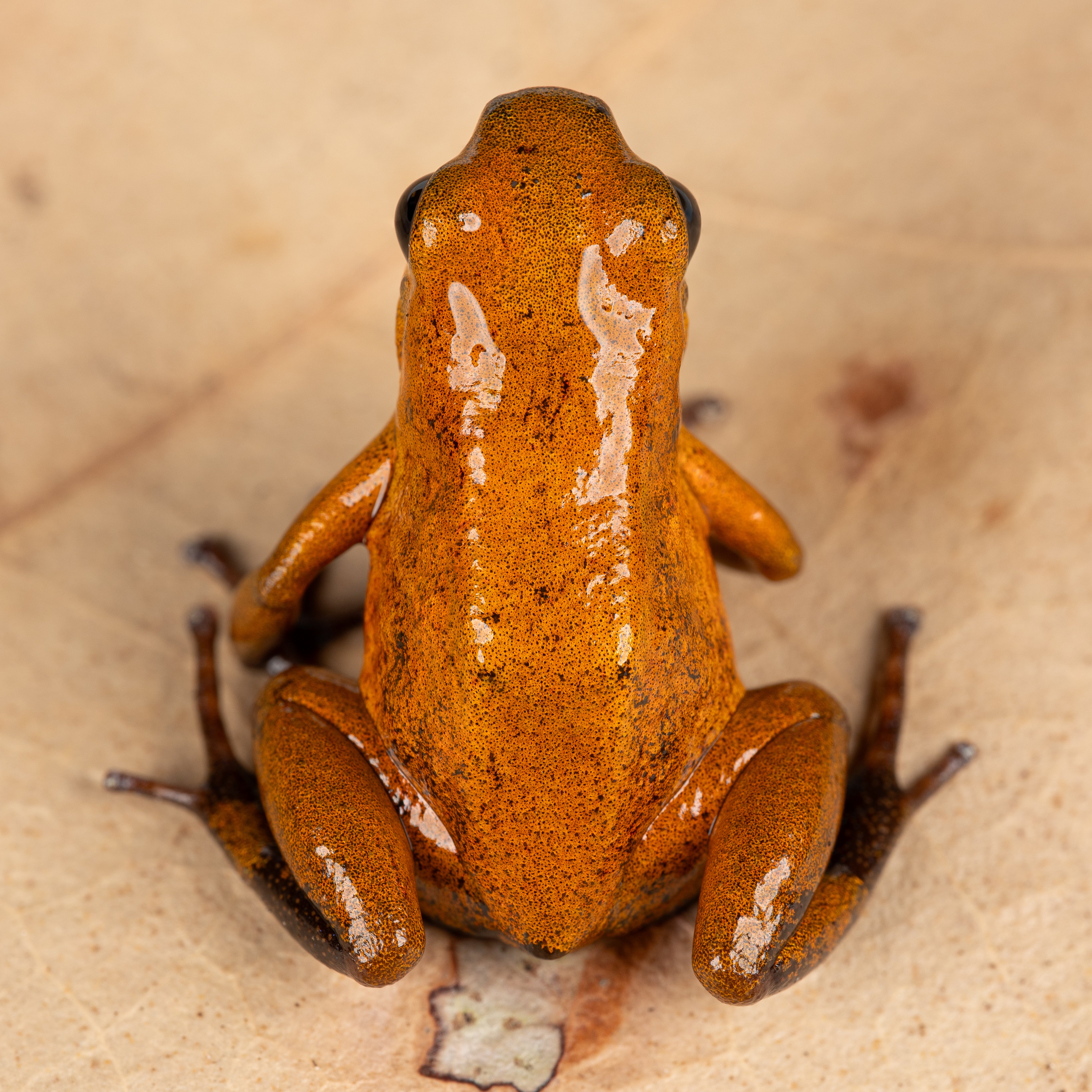 Oophaga pumilio "Finca Four"" is a small poison dart frog that has brilliant orange coloration. They do fine in small groups, but do best as a pair or trio when sexual maturity is reached. The males often have control of 1 to 5 square meters of territory in the wild, so rival males may display aggression for supremacy. They usually lay 3 to 10 eggs on glossy leaves, on glass, or sometimes in leaf litter. Tadpoles must be raised by adults because they feed on infertile eggs from the female. These dart frogs are interesting to many hobbyists because they exhibit biparental care. No more than a trio should go in a 20 gallon vertical conversion tank or a 18 x 24 Exo-terra enclosure. Additional information can be found, of course, through our complimentary Encyclopedia Database: DendroKnow Project.