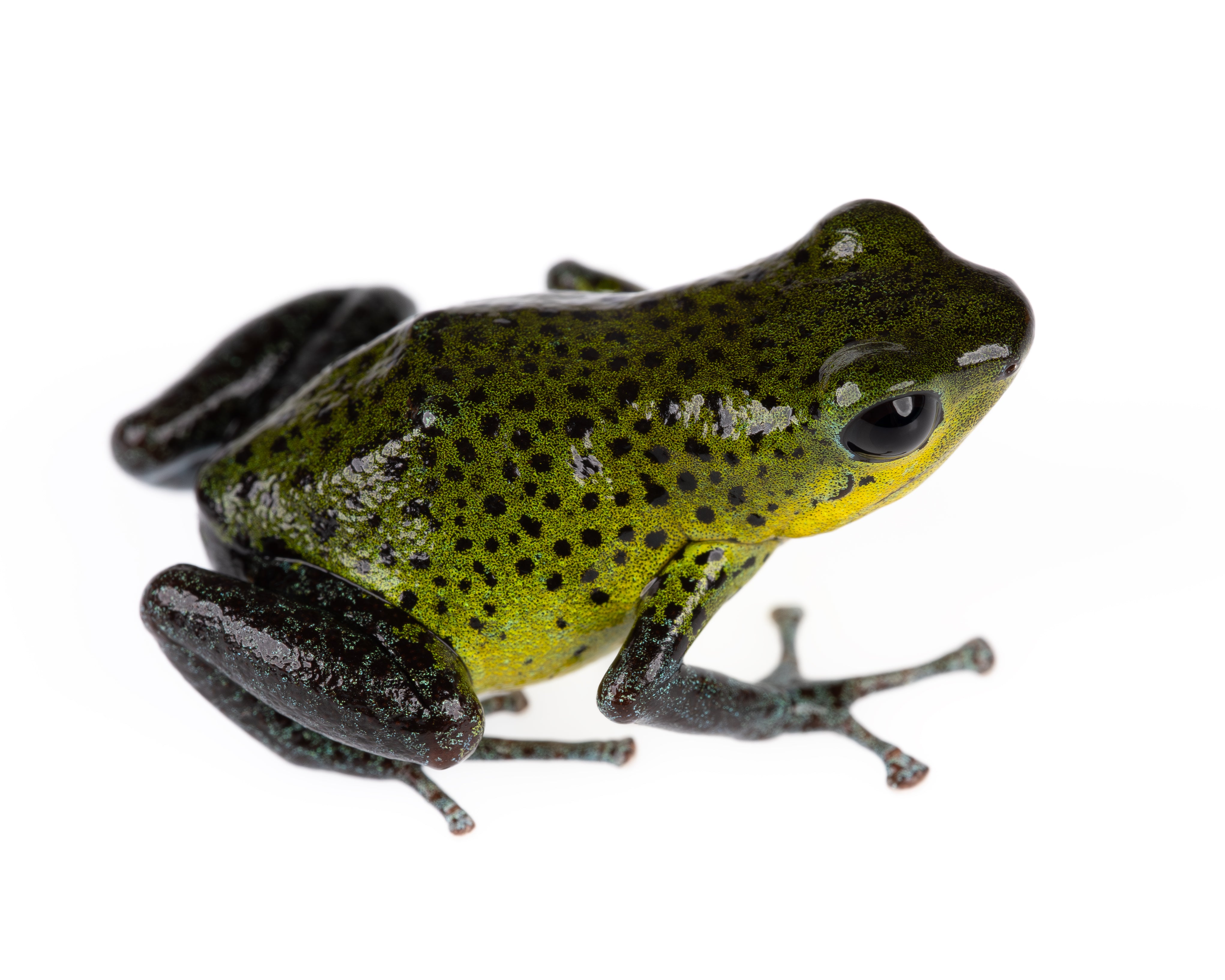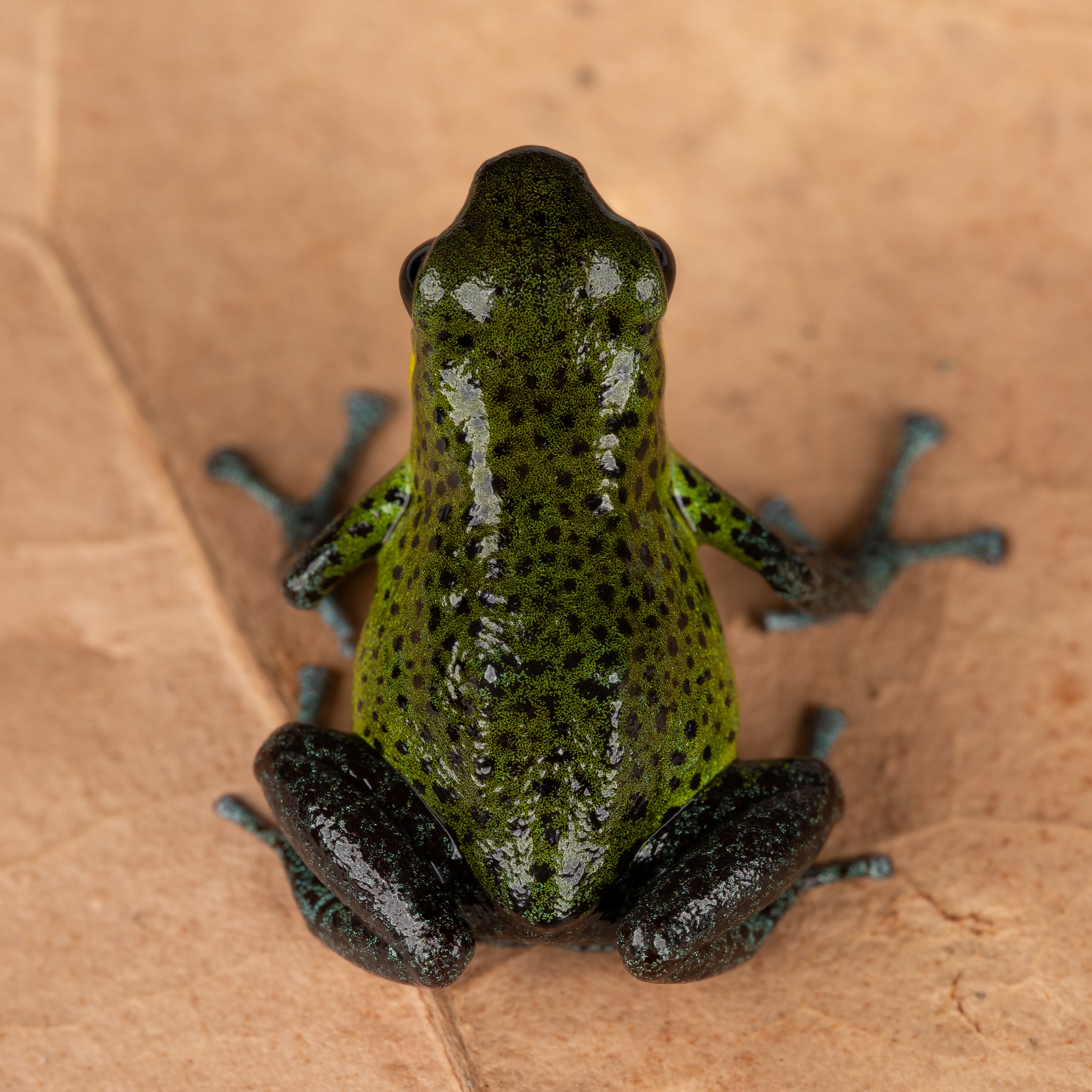 Oophaga pumilio "Punta Laurel" is a small poison dart frog that inhabits the Bocas del Toro District in the Bocas del Toro Province, Panama. They have amazing green coloration that can be very intense, to a more subtle yellow-green. They are one of the most popular pumilio. They do fine in small groups, but do best as a pair or trio when sexual maturity is reached. The males often have control of 1 to 5 square meters of territory in the wild, so rival males may display aggression for supremacy. They usually lay 3 to 10 eggs on glossy leaves, on glass, or sometimes in leaf litter. Tadpoles must be raised by adults because they feed on infertile eggs from the female. These dart frogs are interesting to many hobbyists because they exhibit biparental care. No more than a trio should go in a 20 gallon vertical conversion tank or a 18 x 24 Exo-terra enclosure. Additional information can be found, of course, through our complimentary Encyclopedia Database: DendroKnow Project.