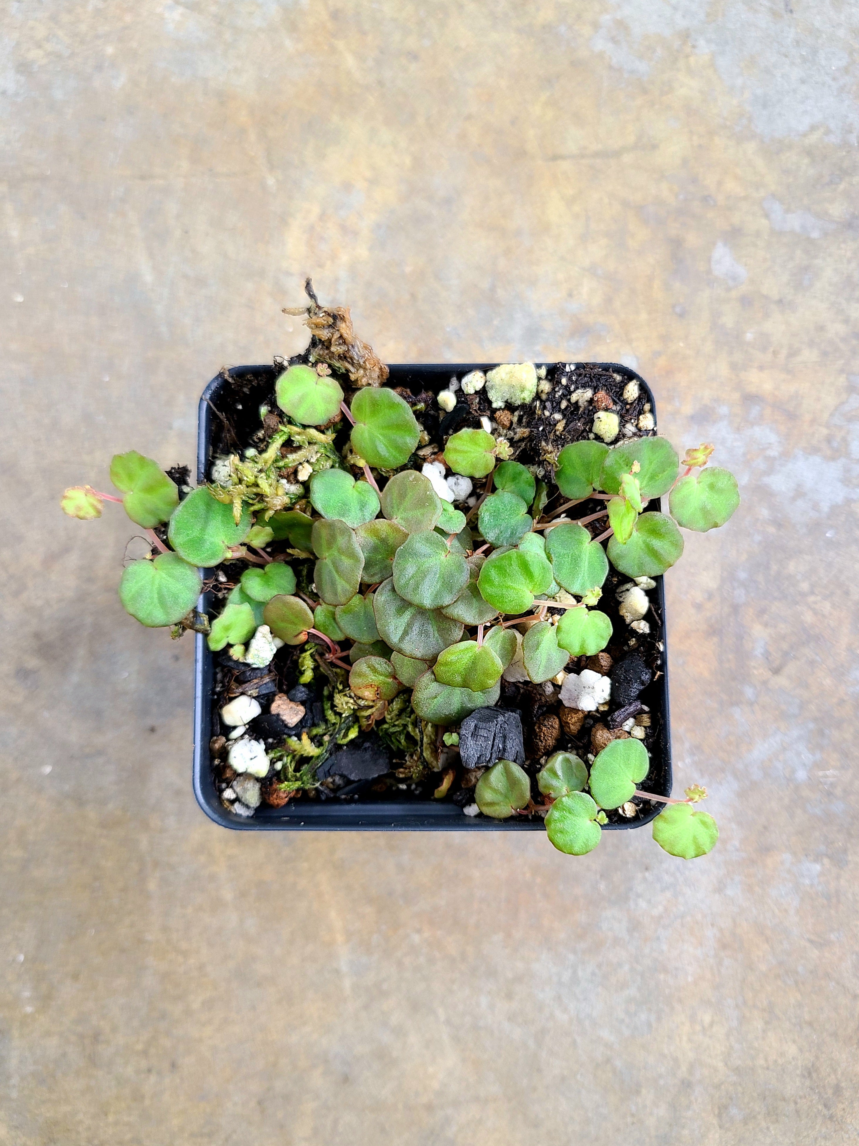 Begonia lichenora is a very small, rare, moderate growing species of trailing Begonia native to Borneo, specifically Sarawak. It has bright green, small leaves that shine a very iridescent blue. It does not like water sitting on its leaves and can be quite fickle. Moist sphagnum moss are helpful for rooting this species. Give it some space to climb. This Begonia can fill in background areas nicely.