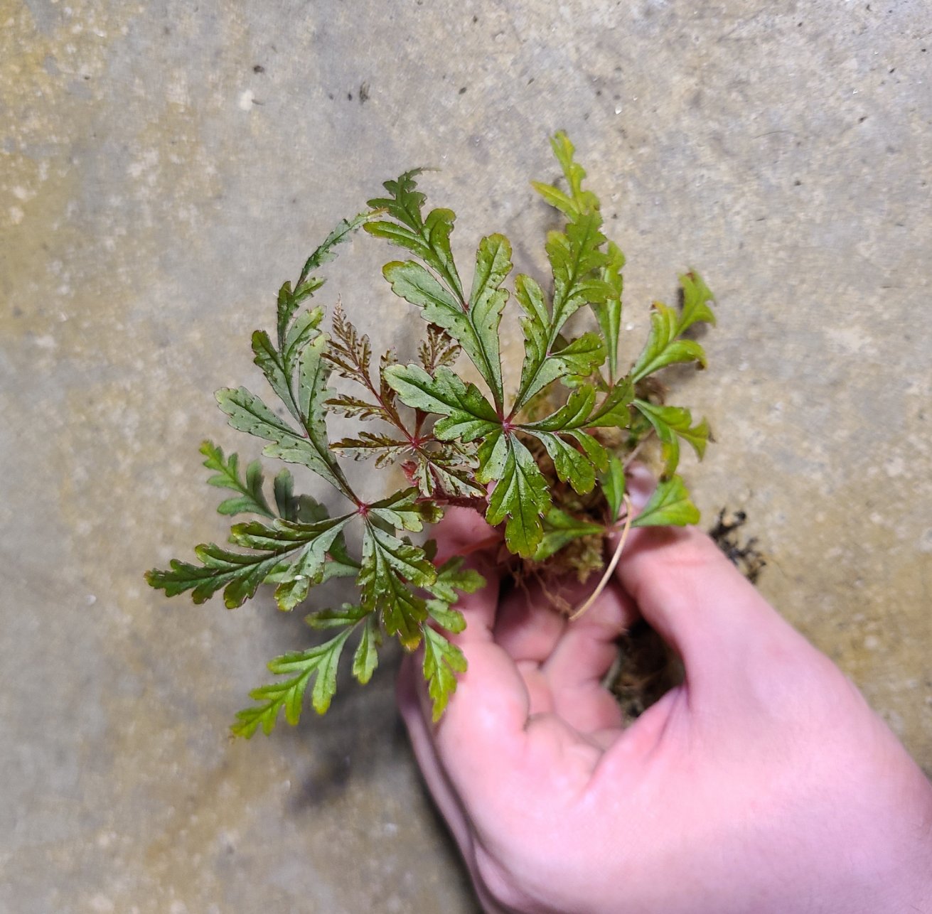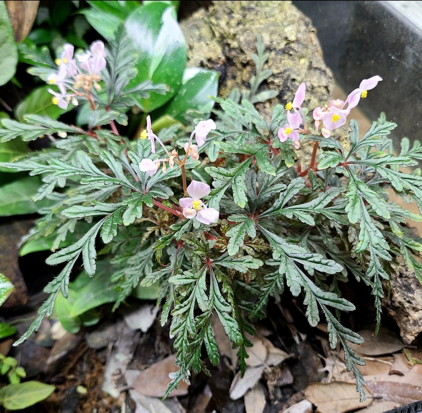 Begonia polliloensis is a moderately slow grower but does well in a vivarium. Its leaves are its selling point; they are incredibly unique, even amongst the Begonias. The leaves range in color from green to an orange / bronze. Begonia polliloensis does well in bright, indirect light and moderate to high humidity. It prefers some airflow. Moist soil and sphagnum moss are helpful for rooting this species. Cuttings may be difficult to root. Please be aware cuttings of this plant are fragile and need high humidity.