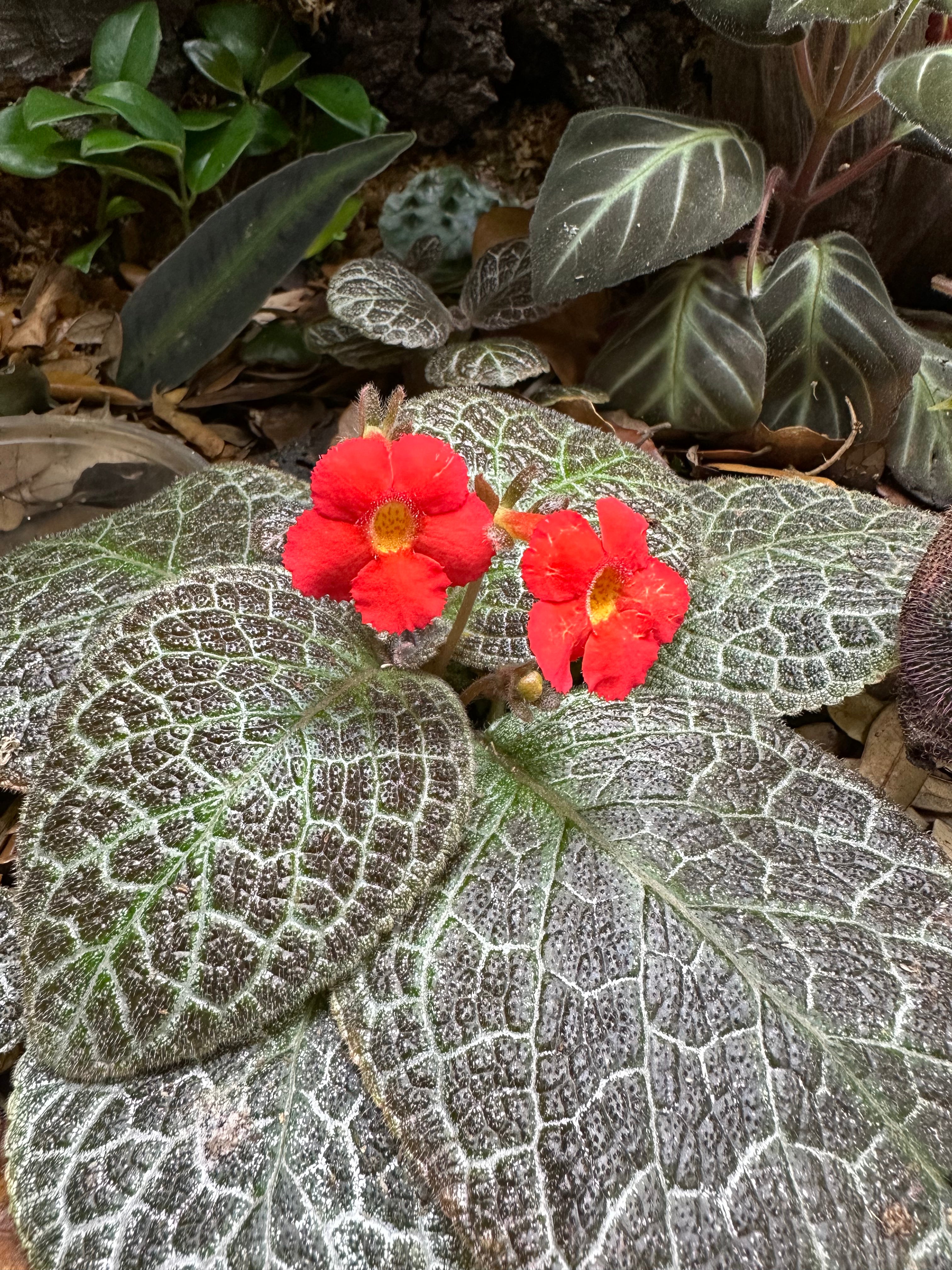 Episcia cupreata “Silver Dust” is a type of Gesneriad native to Central and South America. It is known for its stunning leaves and year-round blooming capabilities. It is a rarer Episcia. It is adaptable to the vivarium life, and does well in moist, but not wet, conditions. It enjoys high light and does not like standing water on its leaves. It is easily propagated in sphagnum moss.