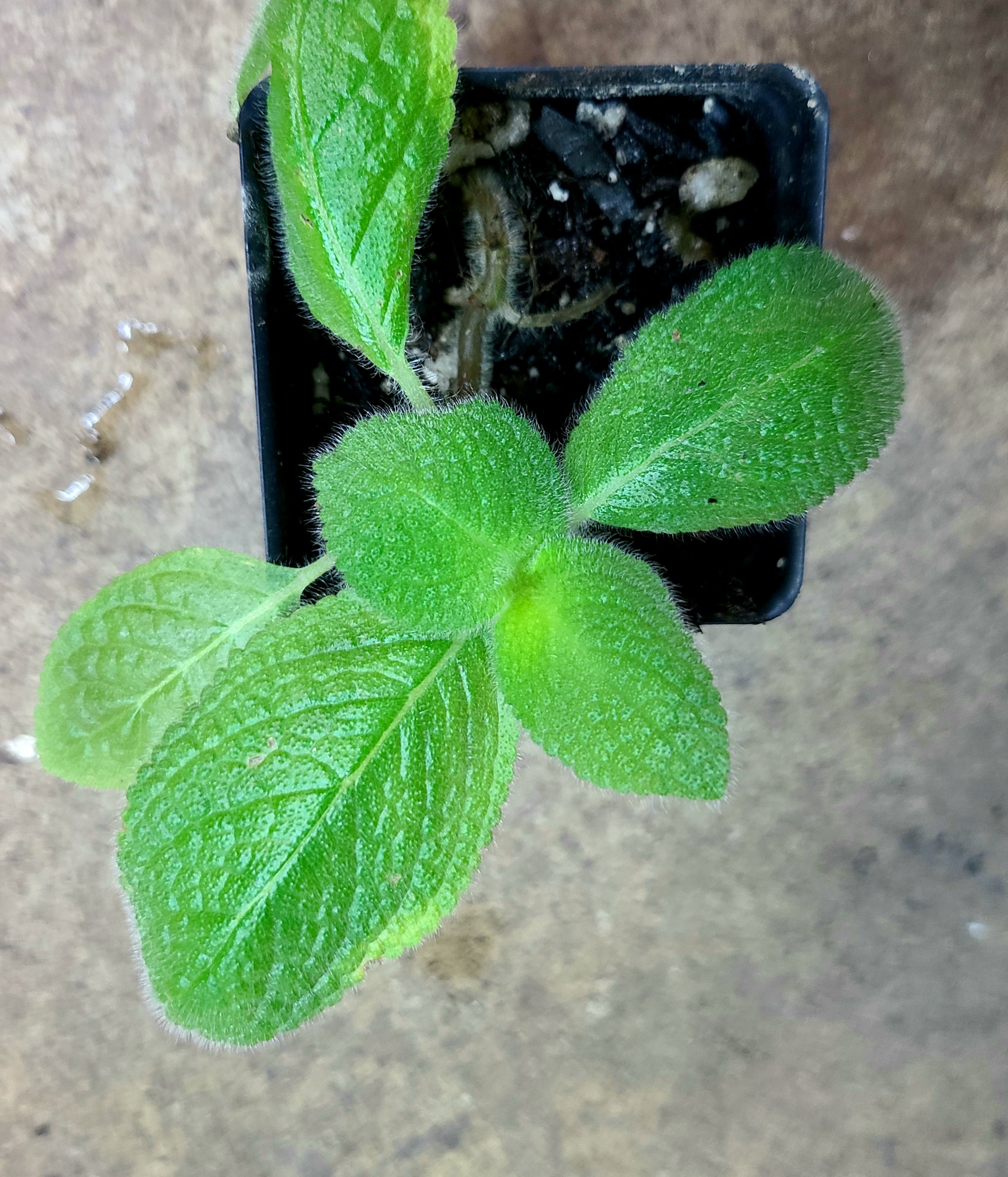 Episcia fimbrata “Blue Heaven” is a type of Gesneriad native to Central and South America. It is known for its very fuzzy green leaves. It is adaptable to the vivarium life, and does well in moist, but not wet, conditions. It enjoys high light and does not like standing water on its leaves. It is easily propagated in sphagnum moss.