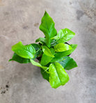 Ficus radicans, is a moderately fast growing species of Ficus native to Asia. It has bright green leaves. It does well in bright, indirect light and moderate to high humidity. Moist soil and sphagnum moss are helpful for rooting this species. This vine can be tough to keep up with, so prune it appropriately.