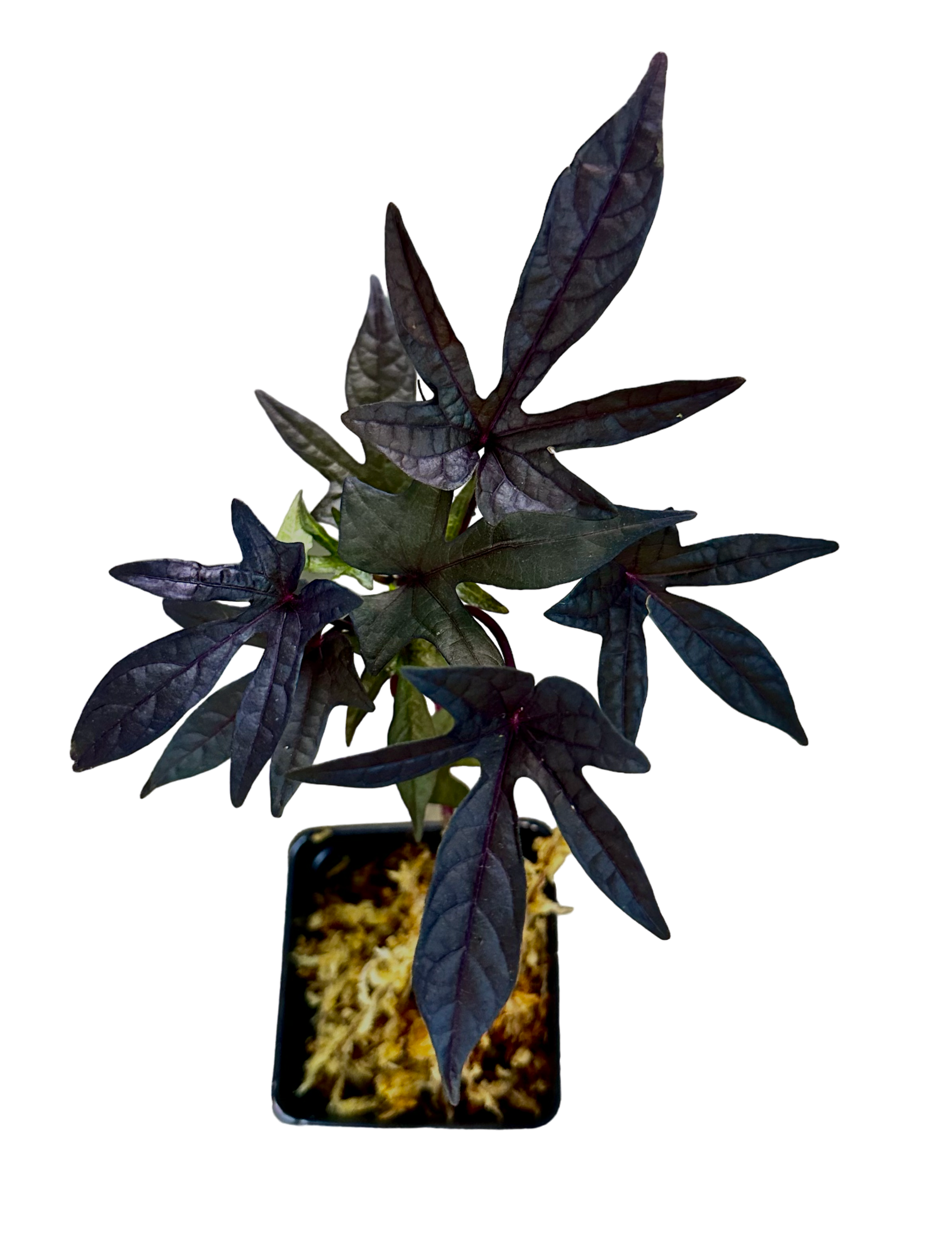 Ipomoea is a fast growing, terrestrial species of sweet potato from Brazil with beautiful Purple Heart shaped leaves. It does not require much ventilation, but also does not require that much humidity. Moist soil and sphagnum moss are helpful for rooting this species. It roots quickly. These are easy to propagate from stem breaks.