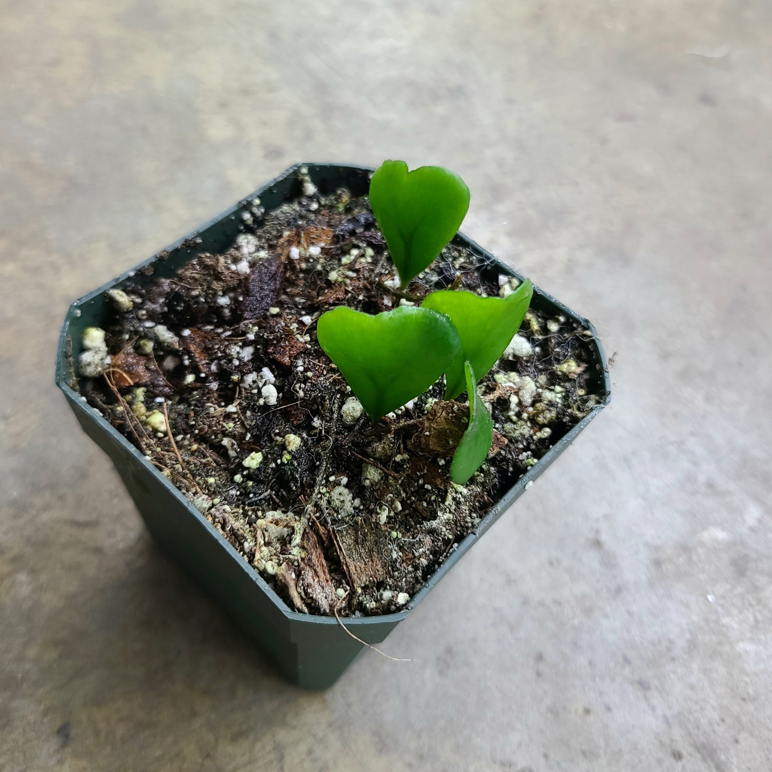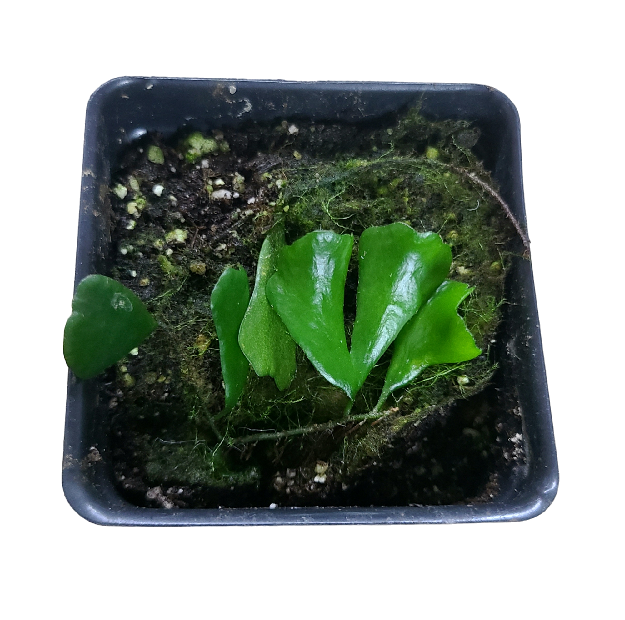 Lemmaphyllum microphyllum 'Shi Shi' is a very cool microfern that has glossy, heart-shaped fronds. It is native to China. This plant does well epiphityically. Even compared to other microferns this one is exceptionally slow growing. It does well in moderate, indirect light and high humidity. Moist soil and moist but not wet sphagnum moss are helpful for rooting this species.