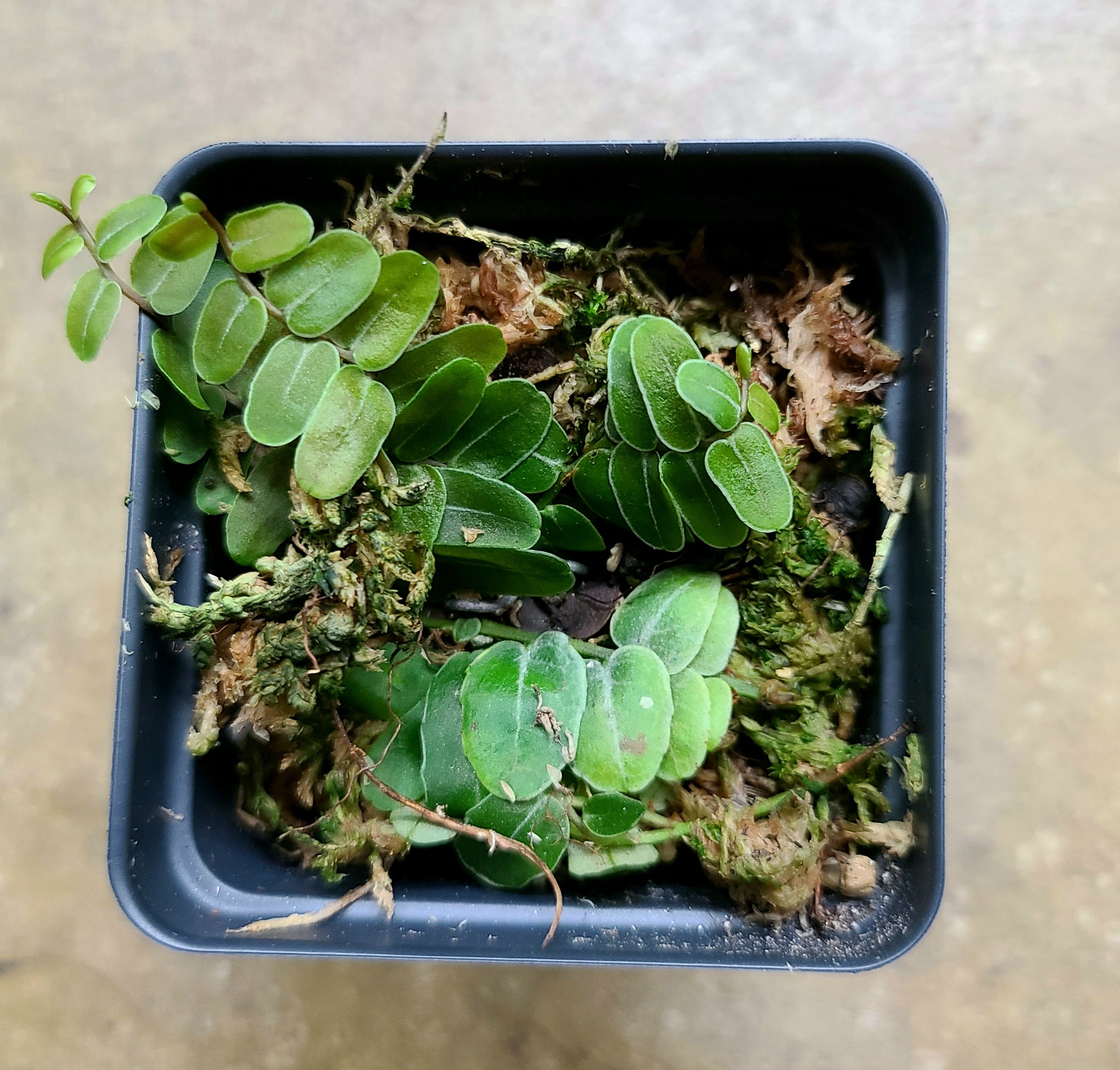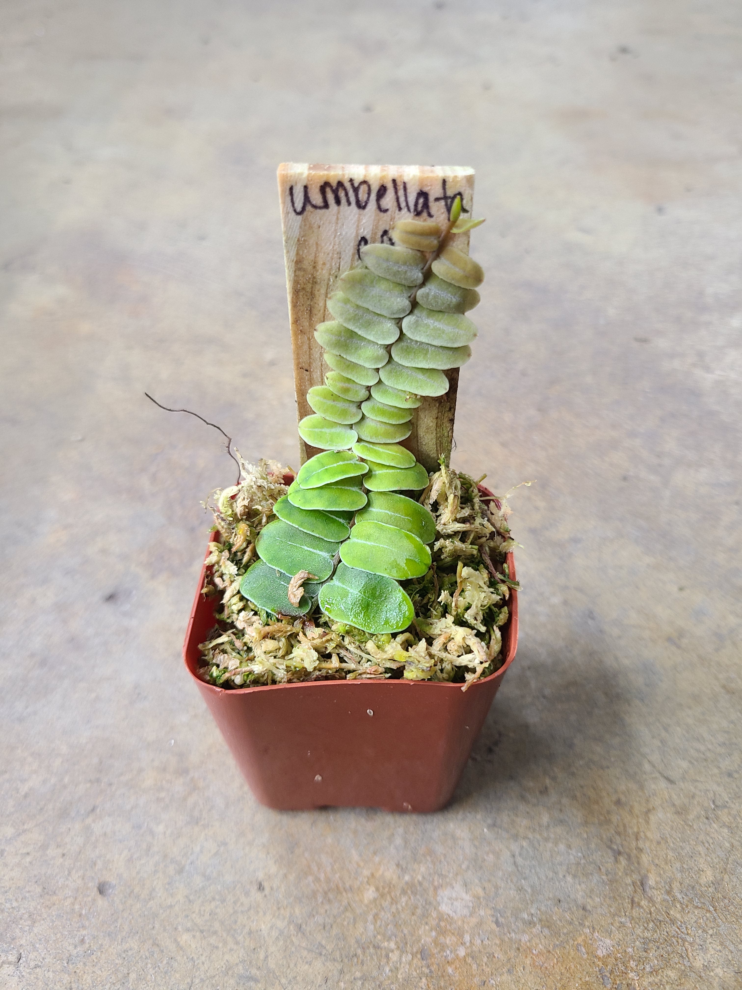 Marcgravia umbellata is a species native to the Caribbean. This Marcgravia has a beautiful white markings and small, deep green leaves that offer a beautiful, compact look. These vines appreciate lower light while rooting, and will display high levels of phototropism. They appreciate moderate to high humidity, and do not like water standing on their leaves. We like to root Marcgravia flattened out on sphagnum moss. We keep them in lower light and keep the moss moist but not wet while rooting. We are usually very generous with these portions. Many rooted options have multiple leads.