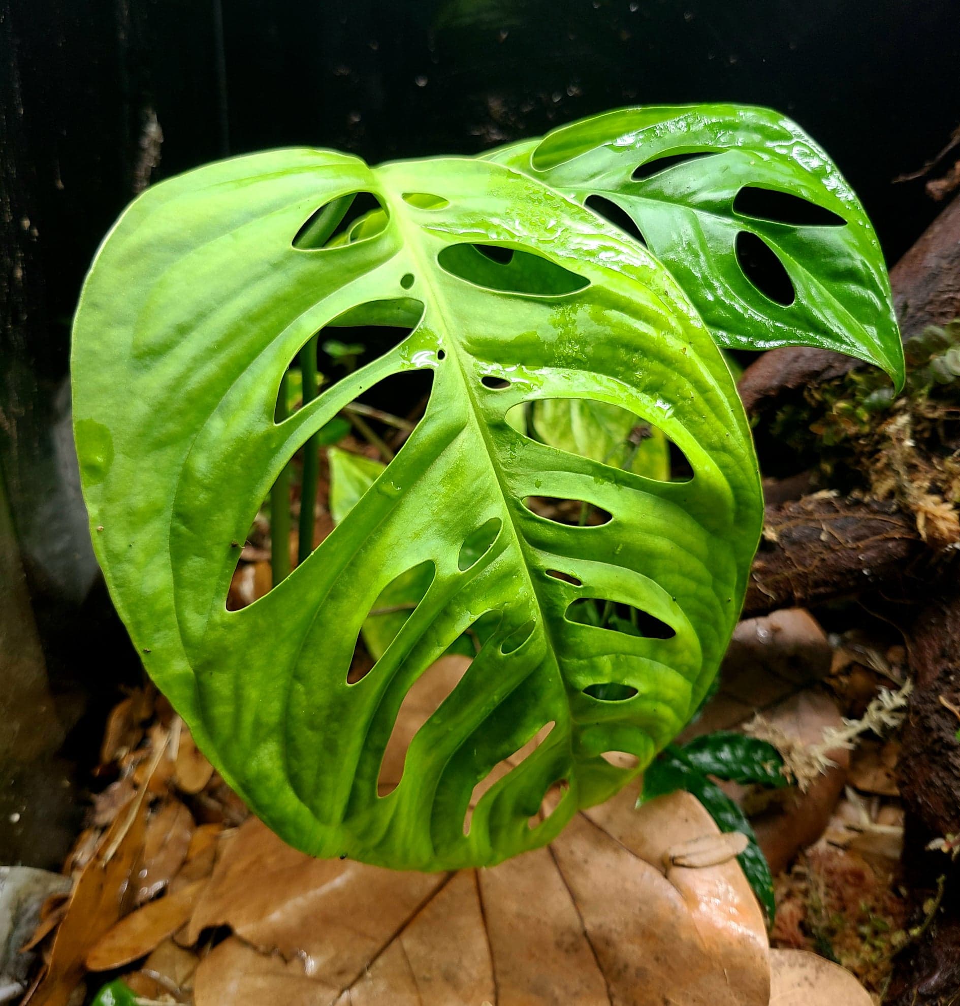 Monstera esqueleto is a rare Monstera that is fairly new to cultivation. It is thought to have originated from collections from Kew Gardens and has been found at numerous botanical gardens in Europe. This plant can get absolutely massive in situ, but usually stays fairly manageable. It is larger than some of the more common species of Monstera, and the fenestrations are much more intense, although it looks much like adansonii until it matures. They appreciate light and high humidity.