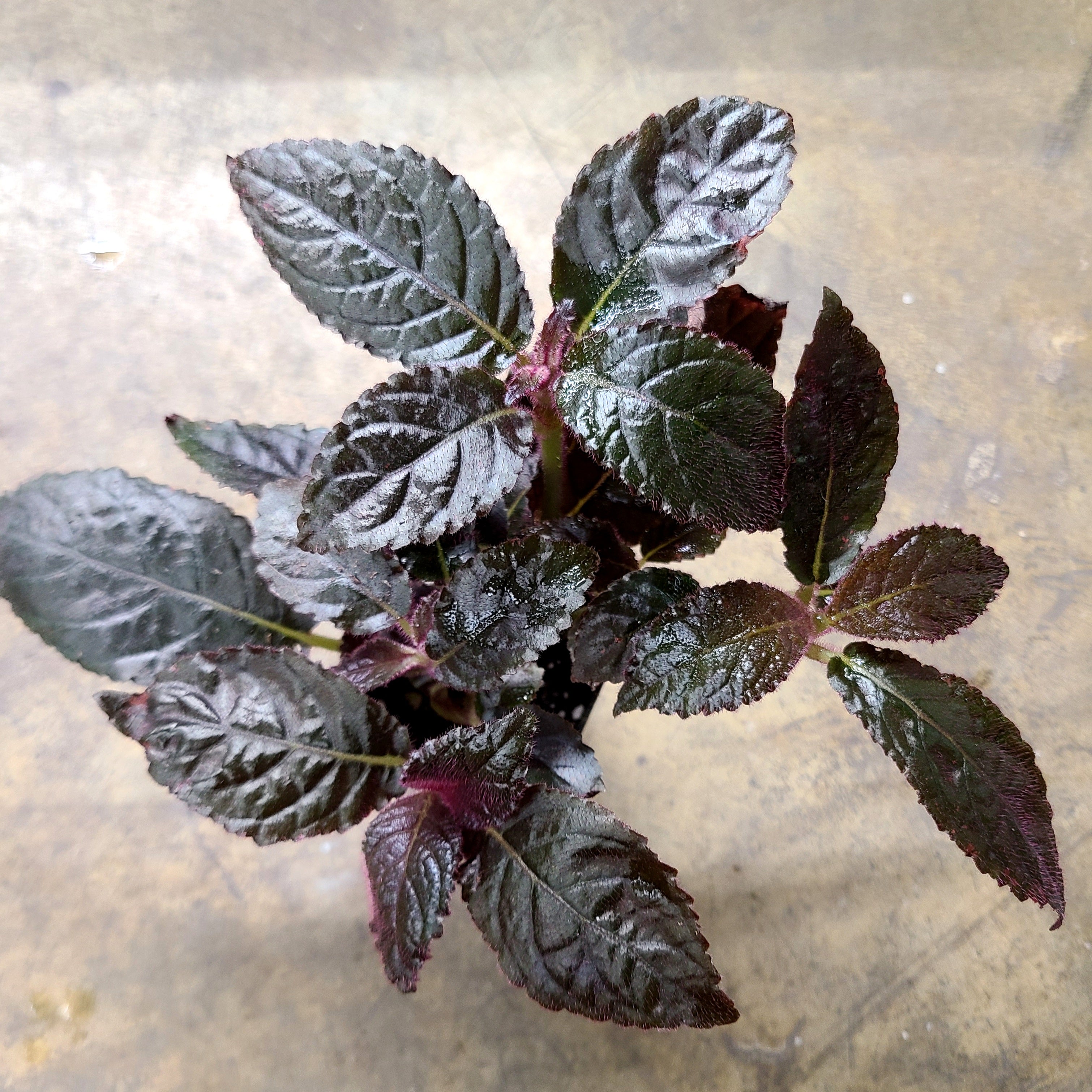 Nautilocalyx glandulifer is from Ecuador. This specimen has green on to top of its leaves and a beautiful purple on the ventral side of the leaf. It also has very short purple trichomes. They like moderate indirect light and high humidity.