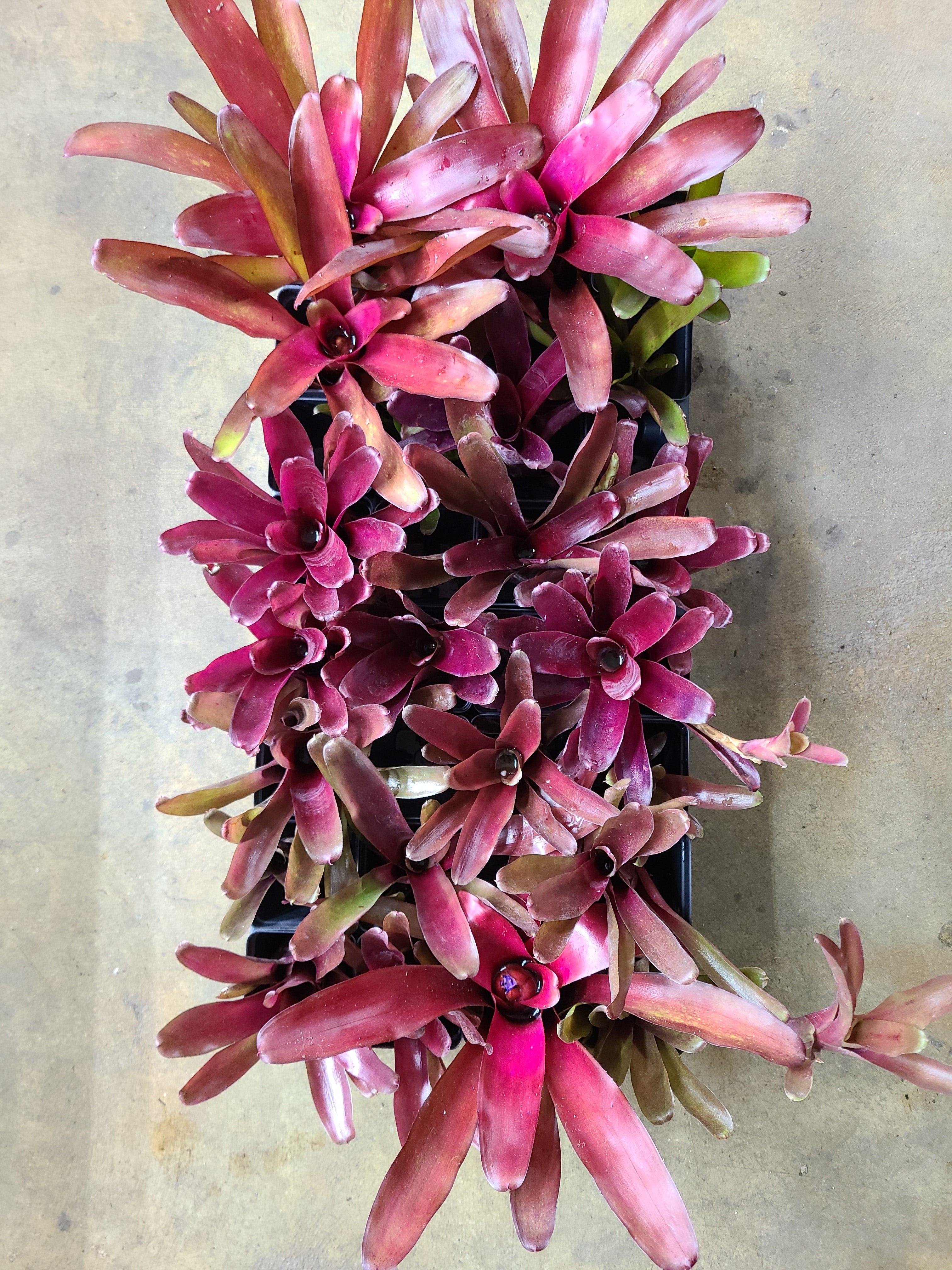 Neoregelia "Fireball" is a medium-sized bromeliad that is perfect for a 20 gallon, 18x18x18 or 18x18x24 tanks. It can be used in smaller tanks but can take up a lot of room. This one holds a decent amount of water, and is versitile. This bromeliad is dark green to red, depending on light intensity. Bromeliads are epiphytic and will send roots out in order to attach to other plants, rocks, or backgrounds. Bromeliads also hold water in their leaves, providing deposition sites for tadpoles. For this reason, we do not recommend planting this Bromeliad in the substrate; if they are watered from the bottom and top, the core can rot. Many dart frogs, especially Oophaga, rely on these plants (and film canisters in captivity) for breeding. Bromeliads form pups from the mature plant and will clump together. Please add fresh water to your bromeliads at least weekly, and allow them adequate ventilation. If you do not have ventilation, we do not recommend keeping them fully filled with water.