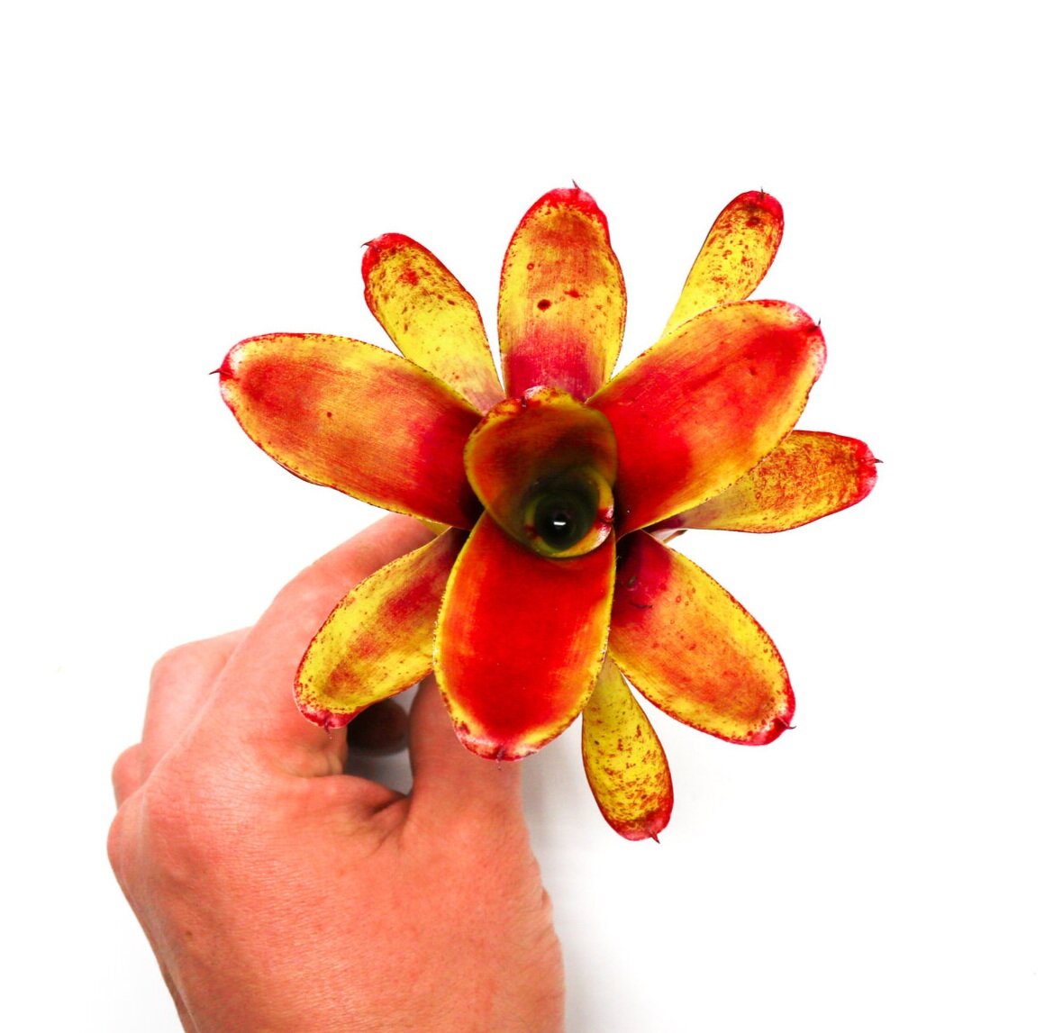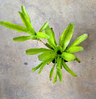 Neoregelia Green Ball is a small-sized bromeliad that is perfect for a 10-20 gallon, 18x18x18 or 18x18x24 tanks, but even works in 12x18 enclosures. This bromeliad is pure green in lower light (pictured first) to bright yellow-green with red banding under high light (second and third pictures). Please understand that yours may be of either coloration depending on stock, but rest assured they are the same! Bromeliads are epiphytic and will send roots out in order to attach to other plants, rocks, or backgrounds. Bromeliads also hold water in their leaves, providing deposition sites for tadpoles. For this reason, we do not recommend planting this Bromeliad in the substrate; if they are watered from the bottom and top, the core can rot. Many dart frogs, especially Oophaga, rely on these plants (and film canisters in captivity) for breeding. Bromeliads form pups from the mature plant and will clump together. Please add fresh water to your bromeliads at least weekly, and allow them adequate ventilation. If you do not have ventilation, we do not recommend keeping them fully filled with water.