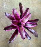 Neoregelia Pink Magic is a medium to large-sized bromeliad that is perfect for a centerpiece in an 18x24 or 24x24 vivarium. They get about 16-18 inches in diameter easily, so we do not recommend them for 18x24. This bromeliad has a beautiful purple coloration across albomargination that flares pink. You cannot beat this bromeliad in terms of color! Color upon receipt may be slightly duller due to growing in lower light conditions. Bromeliads are epiphytic and will send roots out in order to attach to other plants, rocks, or backgrounds. Bromeliads also hold water in their leaves, providing deposition sites for tadpoles. For this reason, we do not recommend planting this Bromeliad in the substrate; if they are watered from the bottom and top, the core can rot. Many dart frogs, especially Oophaga, rely on these plants (and film canisters in captivity) for breeding. Bromeliads form pups from the mature plant and will clump together. Please add fresh water to your bromeliads at least weekly, and allow them adequate ventilation. If you do not have ventilation, we do not recommend keeping them fully filled with water.