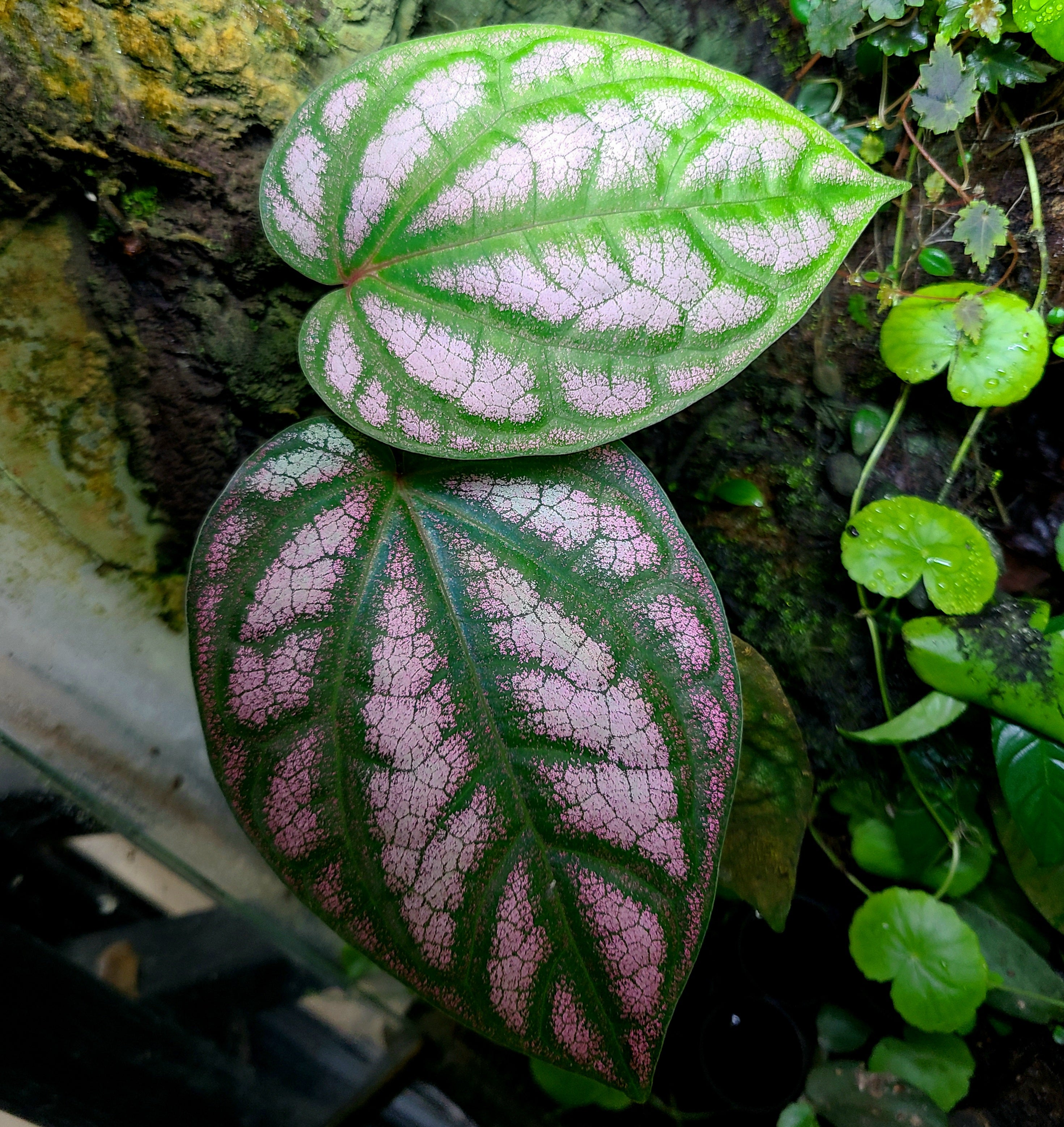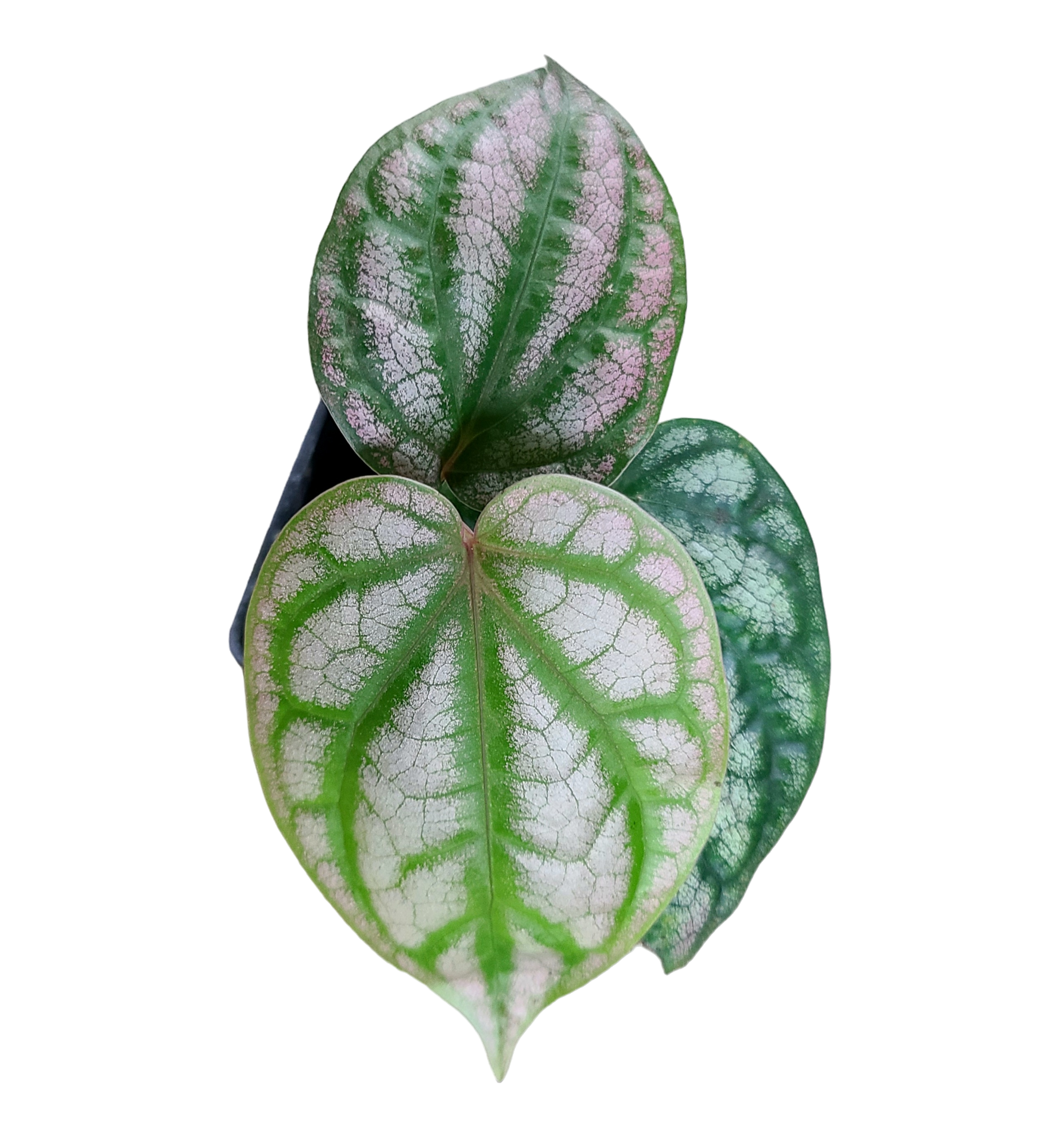 Piper sylvaticum is an amazing plant native to India and China. It has thin dark green leaves with low to high pink coloration (see pic 2 compared to pic 1). It is an amazing trailing vine. It is a bit sensitive to root, but once rooted, it is a good grower. It is exceptionally rare in the USA. It prefers high humidity and moderate light. Moist Sphagnum moss is useful for rooting this species.
