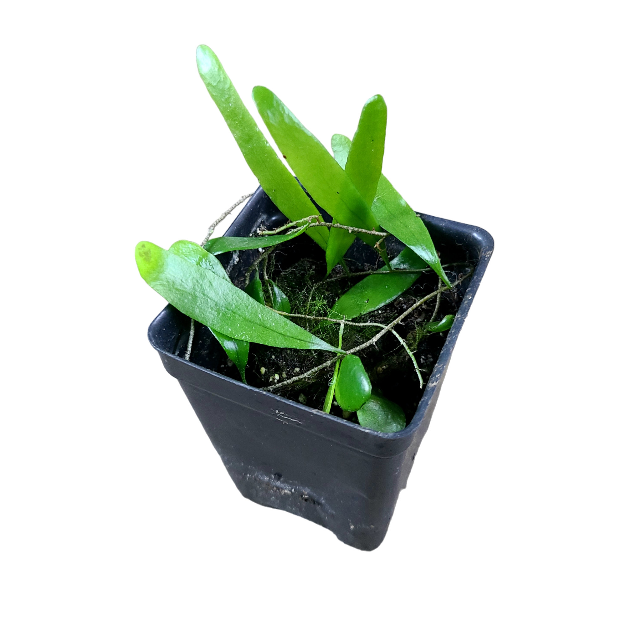 Pyrrosia piloselloides Tall Form is a cool micro fern from Southeast Asia and Malaysia. It has waxy green fronds that are abnormally tall, hence the name. It spreads via a creeping rhizome. This plant does well epiphityically and and a ground sprawler. Like other micro ferns (microferns), it is slow to grow. It does well in moderate, indirect light and high humidity. Moist soil and moist but not wet sphagnum moss are helpful for rooting this species.