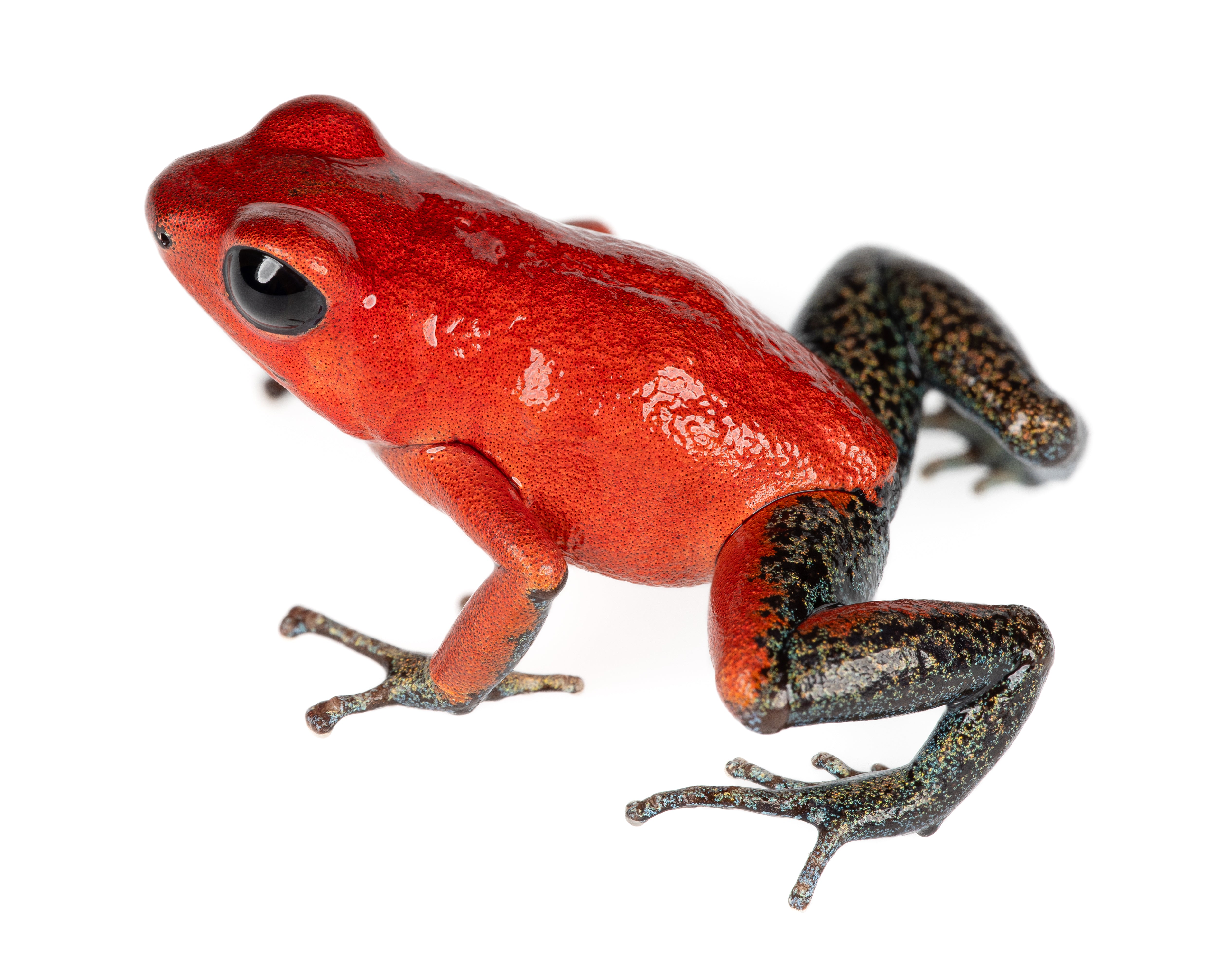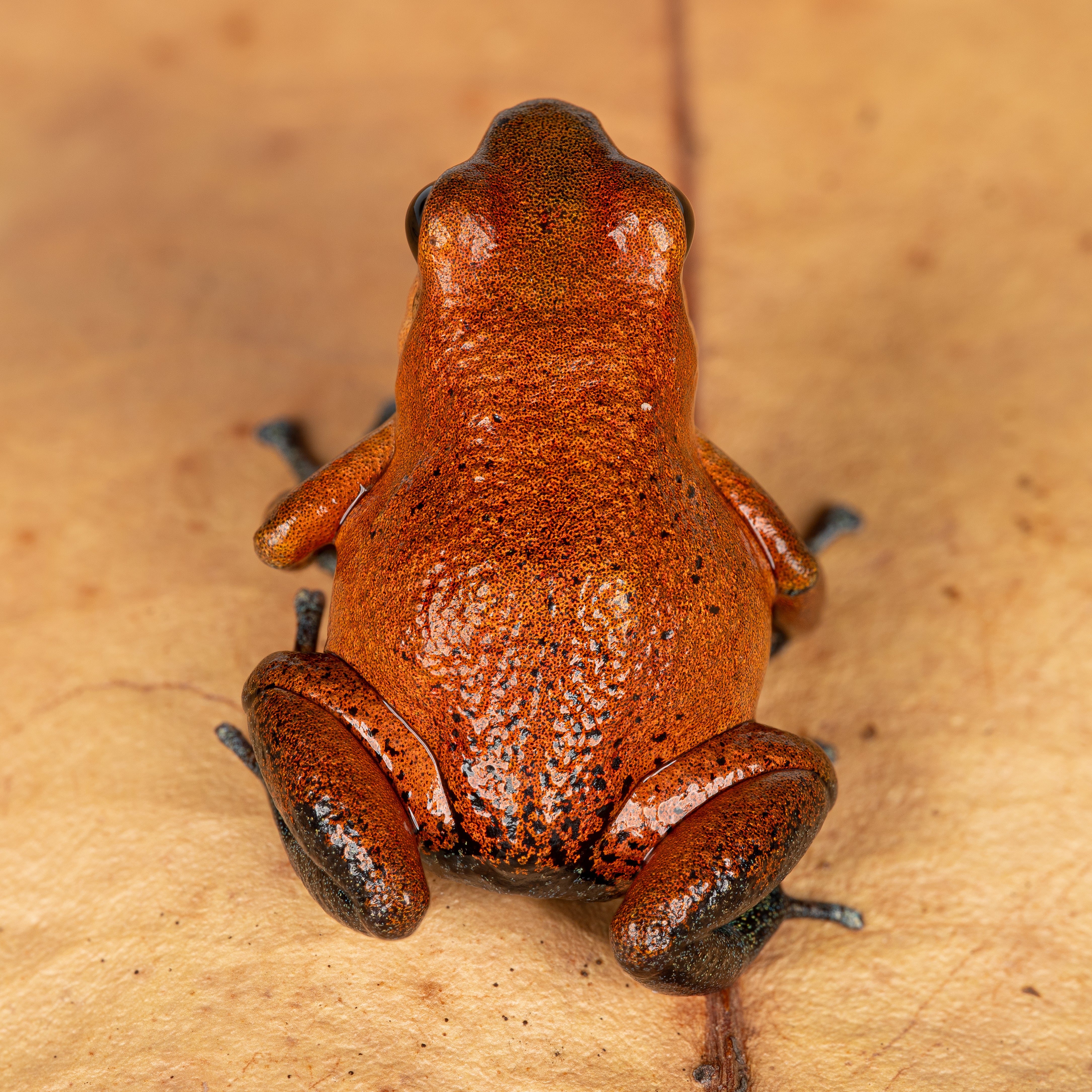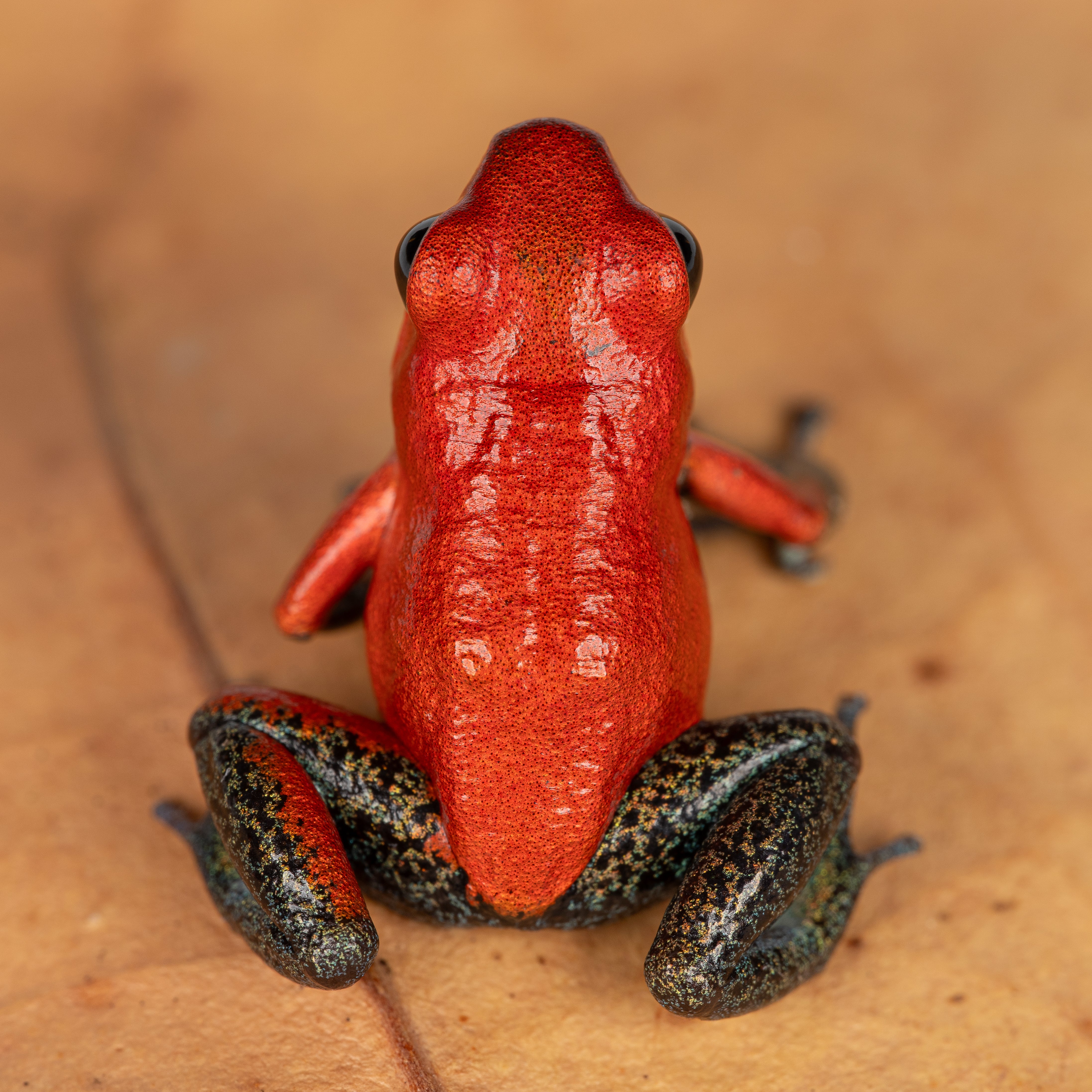 Vulture Point is a Bocas del Toro mainland morph located south of Isla Pastores (Shepard Island). This area is also known as Cayo Draco. Vulture Point are often stark red with black / blue legs. They do fine in small groups, but do best as a pair or trio when sexual maturity is reached. The males often have control of 1 to 5 square meters of territory in the wild, so rival males may display aggression for supremacy. They usually lay 3 to 10 eggs on glossy leaves, on glass, or sometimes in leaf litter. Tadpoles must be raised by adults because they feed on infertile eggs from the female. These dart frogs are interesting to many hobbyists because they exhibit biparental care. No more than a trio should go in a 20 gallon vertical conversion tank or a 18 x 24 Exo-terra enclosure. Additional information can be found, of course, through our complimentary Encyclopedia Database: DendroKnow Project.