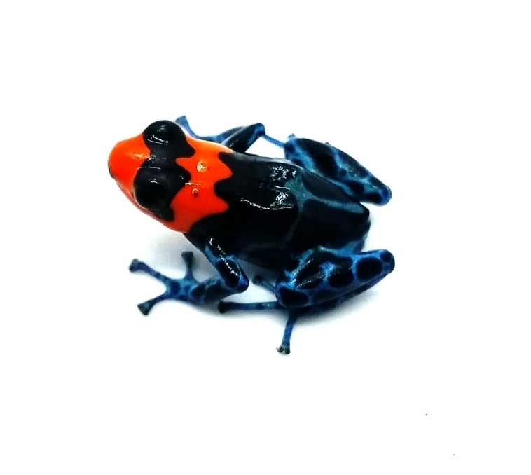 Ranitomeya benedicta "Shucushuyacu" hails from eastern Peruvian forests from 150 to 405m (mostly lowland). This frog is moderately social, quite shy, and does well in groups. They are EXREMELY fast, so be very careful when feeding or misting. There can be some egg eating between females, although this is rare. Females will generally lay 4 to 10 eggs under leaf litter or on a bromeliad leaf. Males will then usually transport tadpoles to a body of water. However, you may pull the eggs and raise them yourself. If left alone, the tadpoles can cannibalize. No more than a trio should go in a 10 gallon vertical conversion tank or a 12 x 12 x 18 ExoTerra tank, and we advise larger enclosures to prevent escapees. Please contact us with further questions.