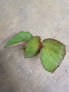 Begonia 'Morocco' is a fast growing hybrid by Kartuz. Its leaves are olive green and red, and show excellent venation and texture. It does well in bright, indirect light and high humidity. It does not require airflow to grow. Moist soil and sphagnum moss are helpful for rooting this species. It roots quickly compared to many other Begonia. It flowers frequently in a vivarium, and can grow to impressive sizes, so give it room to grow!