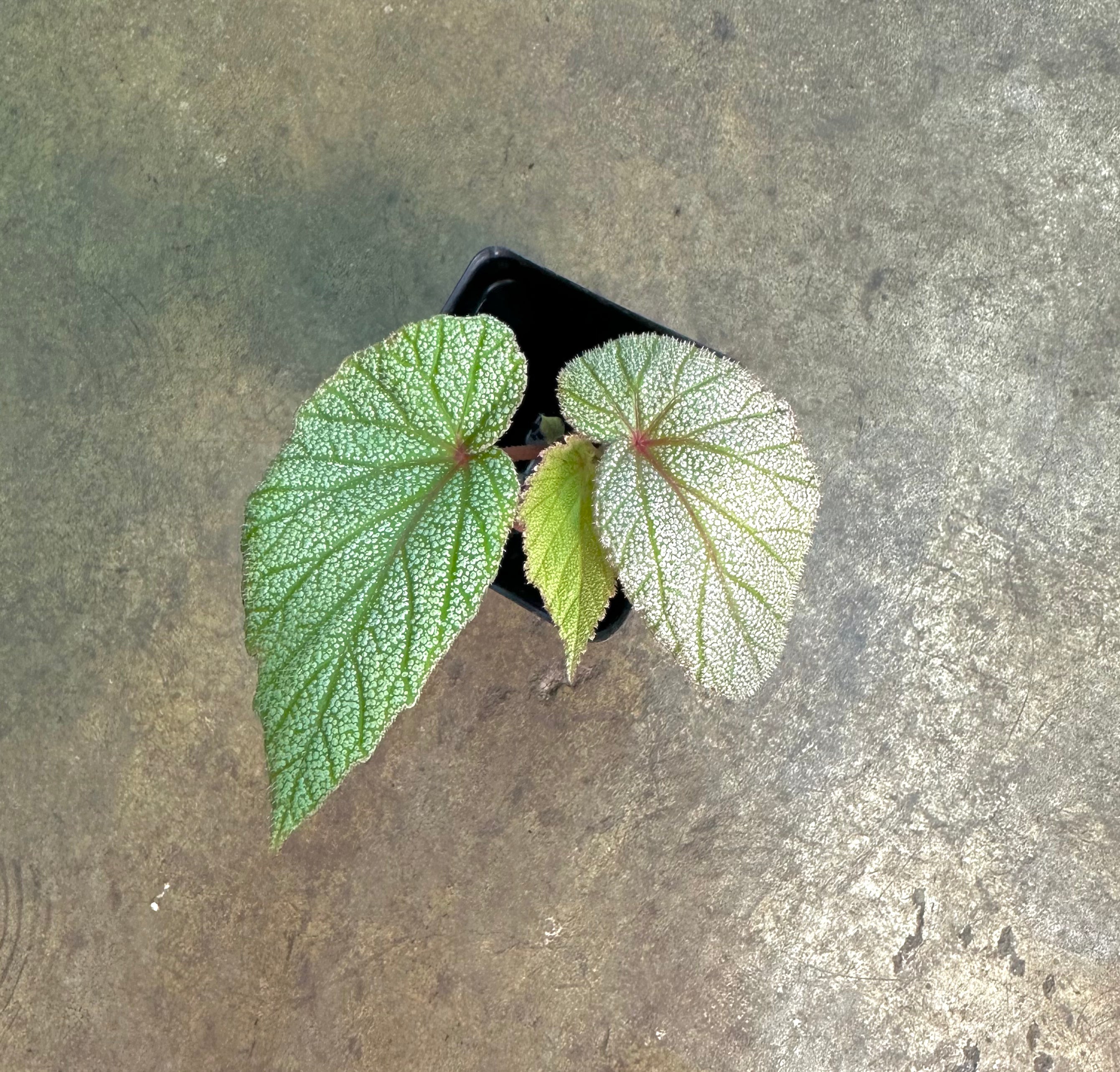 Begonia Sinbad, and is a type of angel wing Begonia, which are cane Begonias. These have a brilliant sea green color with light pink accents, and have become some of the most popular Begonia on the market! Begonia Sinbad are easy-going plants that can grow to sizable specimens, even in vivarium culture. They enjoy moderate humidity and moderate to bright light once established.