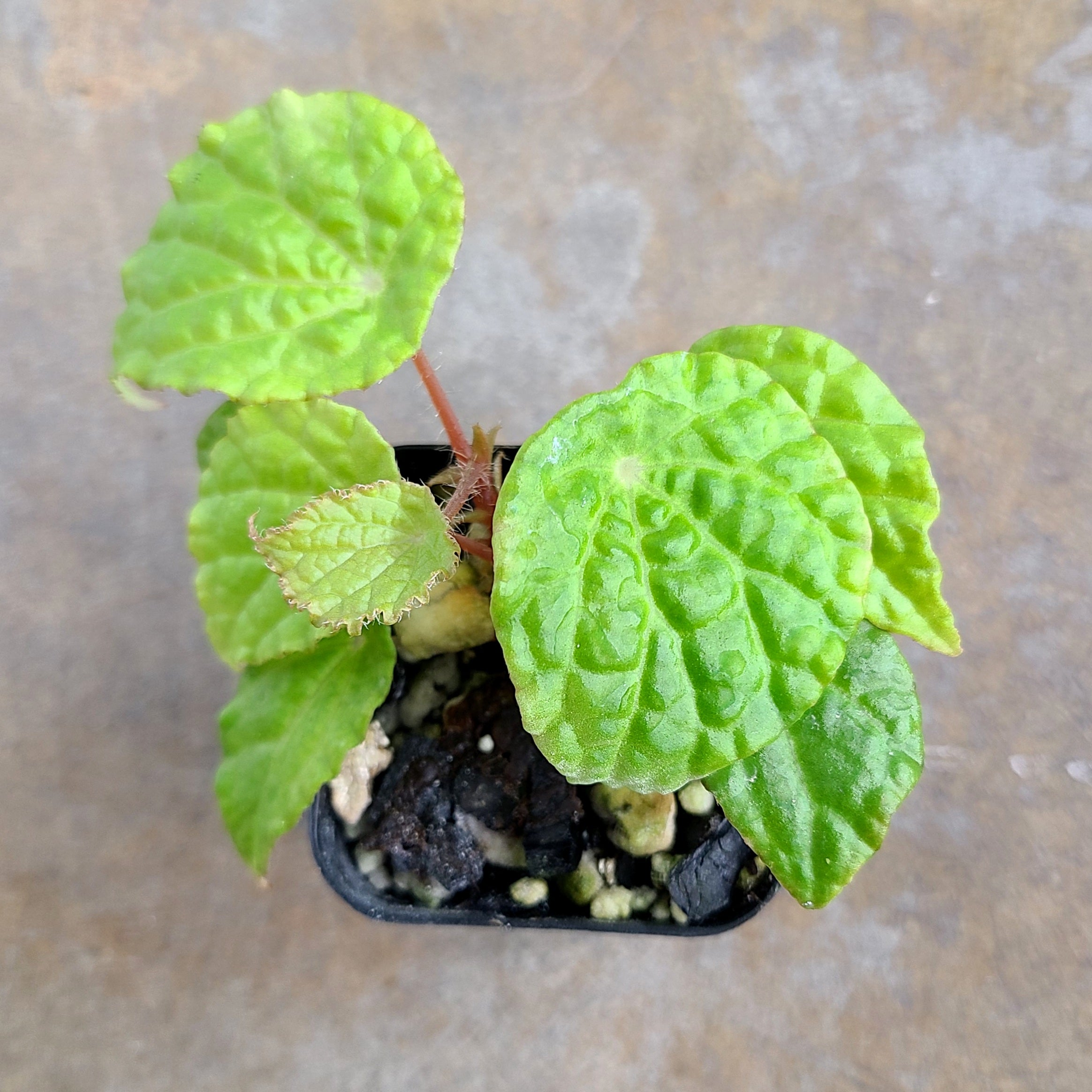 Begonia “Buttercup” (microsperna x prismatocarpa) is one of our personal favorites due to it combining everything we love about both parent plants! It is a moderate growing species of Begonia. It is prized amongst collectors for the bullate texture on its saucer-like leaves, and very small leaves! This is a fantastic candidate for terrariums. It does well in moderate, indirect light and moderate to high humidity, but appreciates airflow. Moist soil and sphagnum moss are helpful for rooting this species.