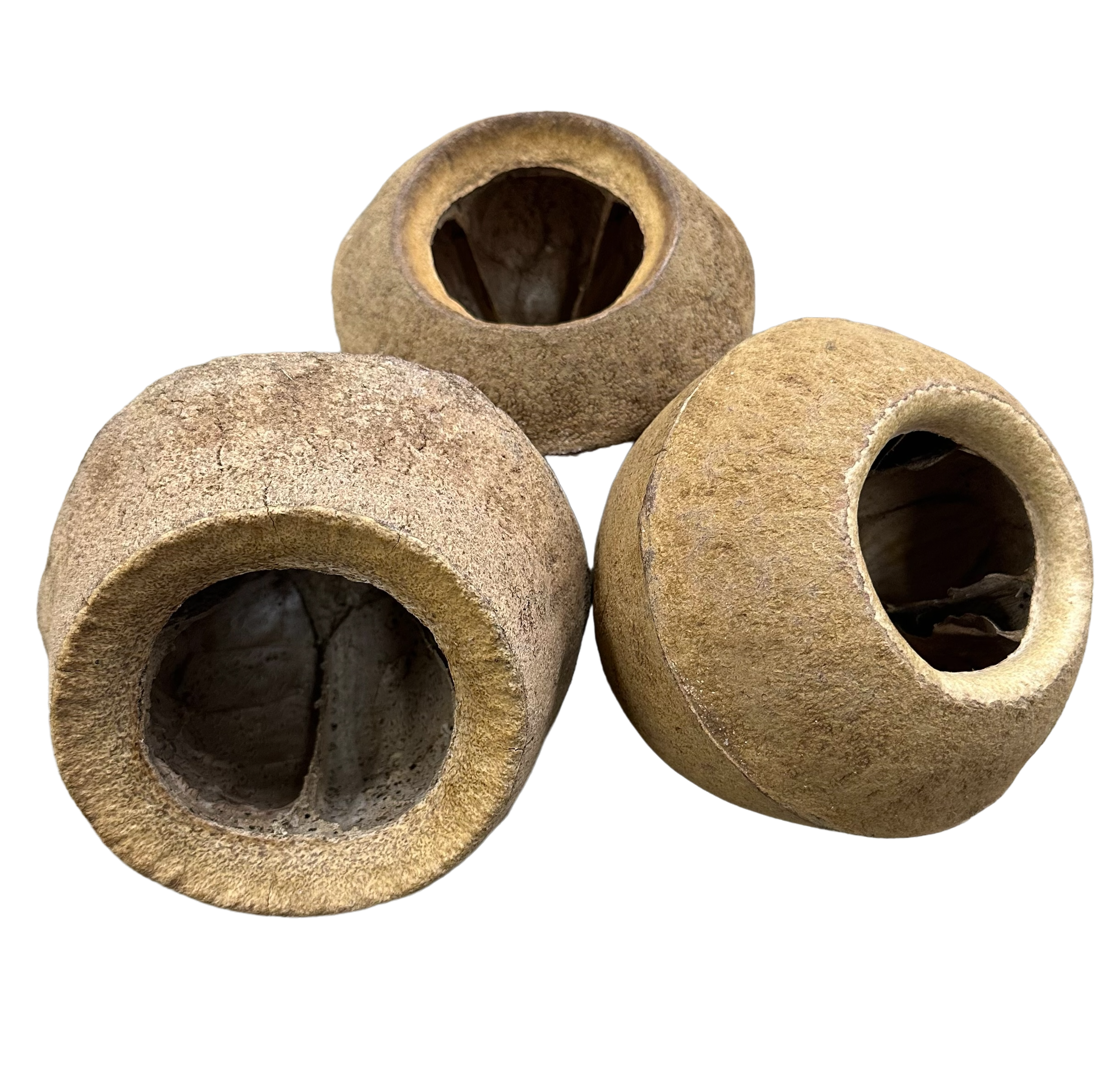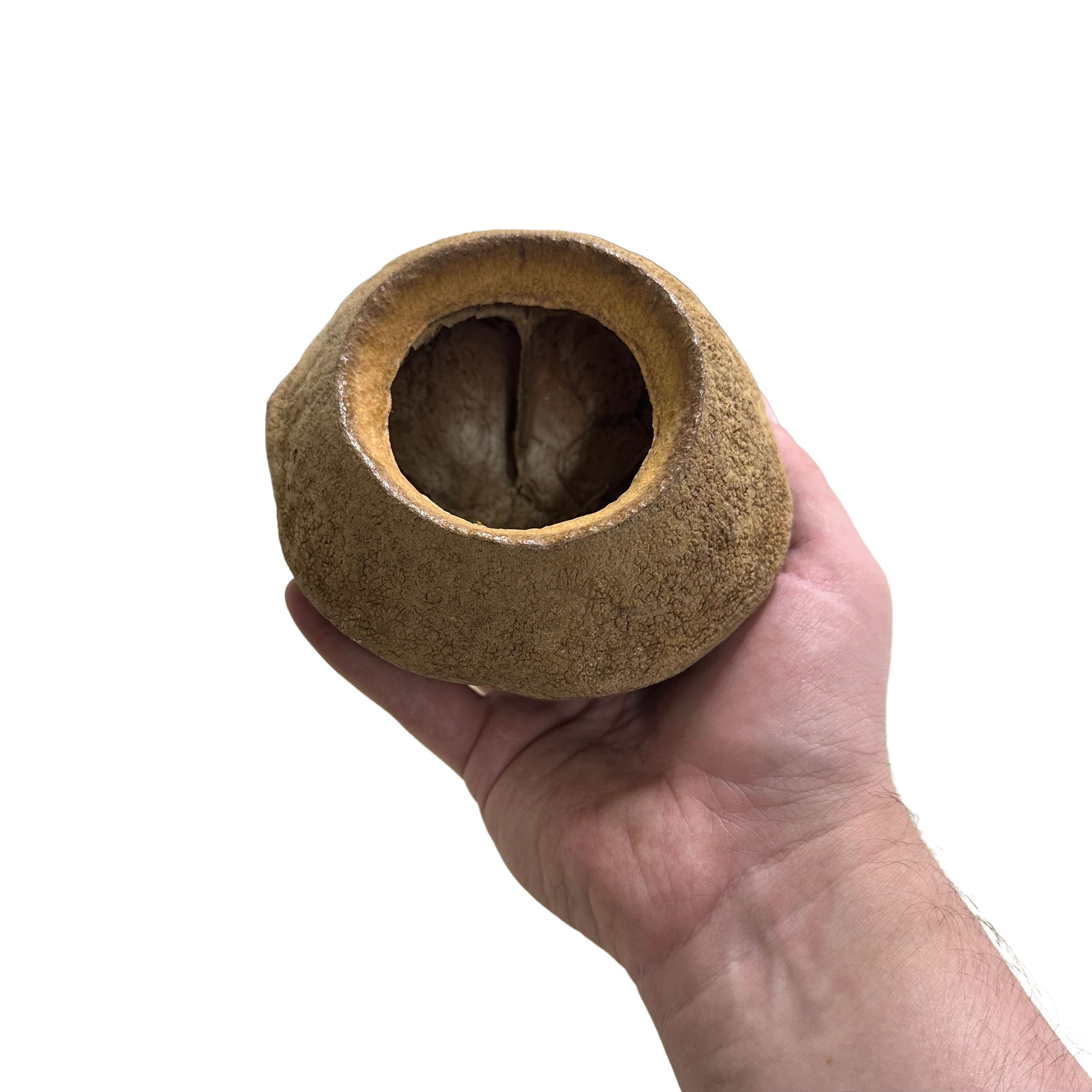 These are the biggest and heaviest pods we offer! They are absolutely behemoth in size, easily measuring over 5-7 inches in diameter and some weighing almost a pound! They take a very very long time to decompose. You must use these in enclosures 18x18 or larger or they will take up most of the enclosure. These pods add some flair and enhance the overall appearance of a vivarium!