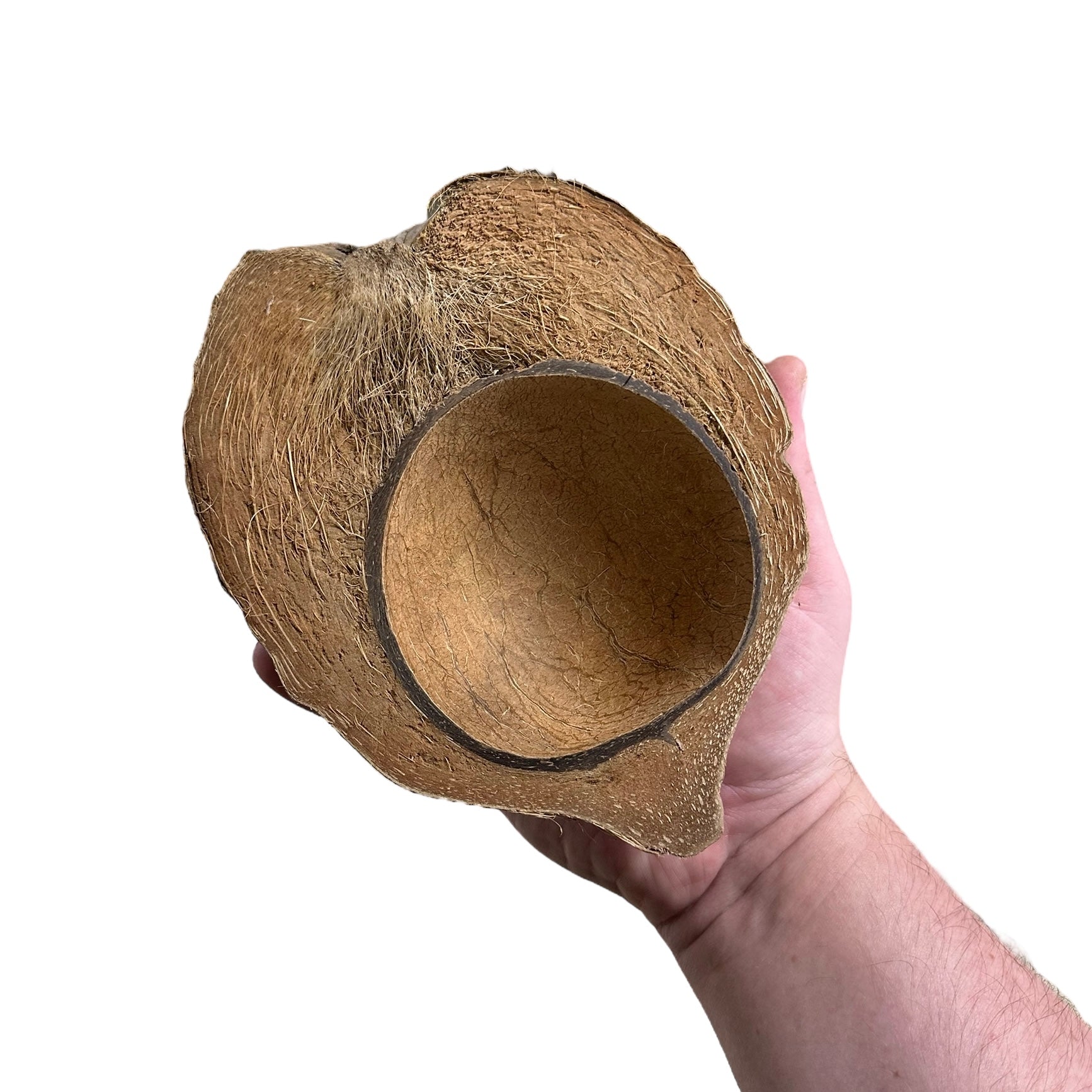 Coconut boats are halved coconuts with the husk! These are big! This is a natural product and may vary in size, shape, and color. They are primarily used as decor and enhancement for dart frogs and other animals.
