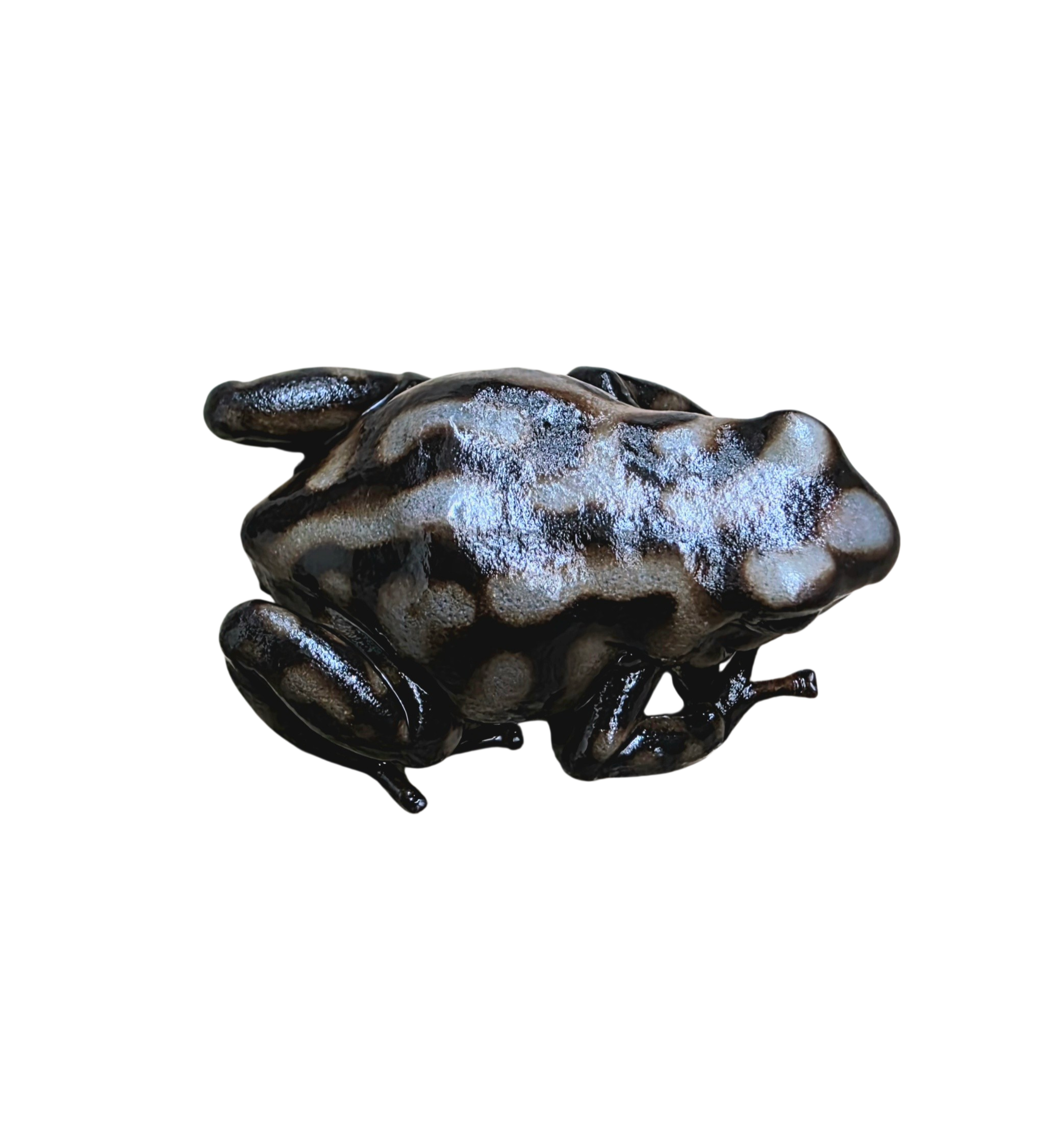 Dendrobates auratus "Campana" hail from Panama. These frogs have beautiful cream colored bodies, with a black to dark brown reticulation. This frog is moderately shy, and does well in groups. They get bolder with age and exposure, like others of their species. There will be some aggression and wrestling between females, while males do not tend to partake in fighting often. Despite this, you can keep a decently large group of frogs together, even as adults, provided that there are plenty of hiding places and food available. Females will generally lay 4 to 10 eggs under leaf litter or a coconut hut with flat leaves or a petri dish underneath. They will then transport tadpoles to a body of water, like tinctorius. However, you may pull the eggs and raise them yourself. If left alone, the tadpoles will cannibalize. Please let us know if you have any questions. Additional information can be found, of course, through our complimentary Encyclopedia Database: DendroKnow Project.