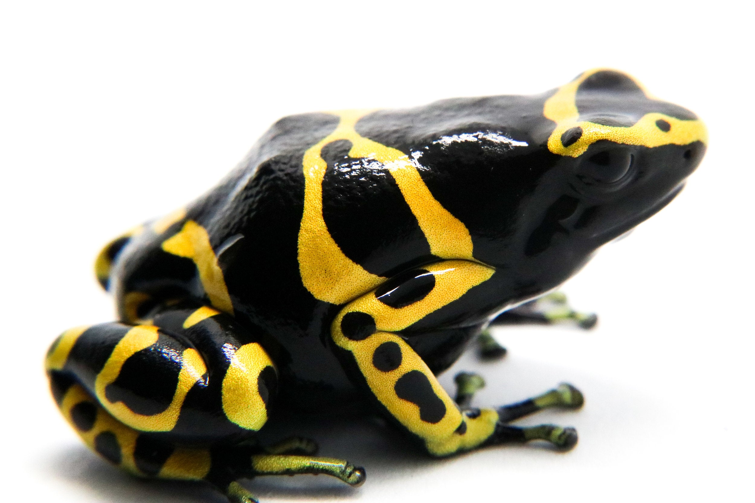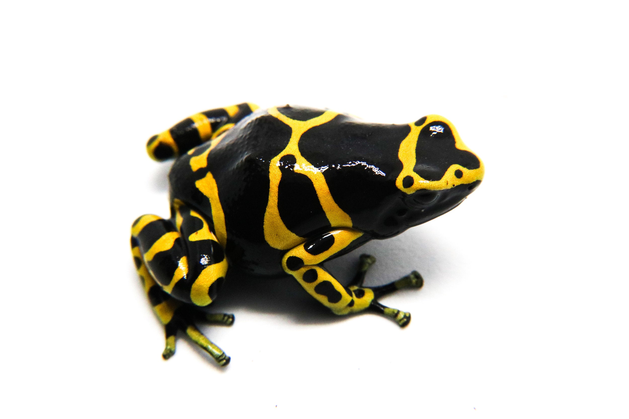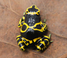 Dendrobates leucomelas "Standard" is found in Columbia, Brazil, Venezuela, and other parts of South America. This frog is very social, moderately bold, and does moderately well in groups. There will be some aggression and wrestling between females, while males do not tend to partake in fighting often. Despite this, you can keep a decently large group of frogs together, even as adults, provided that there are plenty of hiding places and food available. Females will generally lay 4 to 10 eggs under leaf litter or a coconut hut with flat leaves or a petri dish underneath, but can lay larger clutches. Males will then usually transport tadpoles to a body of water, like tinctorius. However, you may pull the eggs and raise them yourself. If left alone, the tadpoles will cannibalize. Please let us know if you have any questions. Additional information can be found, of course, through our complimentary Encyclopedia Database: DendroKnow Project.