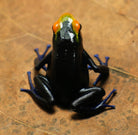 Dendrobates tinctorius "Lorenzo" hail from Brazil. These frogs can only be housed in groups as juveniles to sub adults, and even then it becomes risky as they near adulthood. Most of the issues arise from female to female aggression. All tinctorius are very territorial, and defend large areas in the wild. Females are aggressive, and fight for dominance over access to males. There has been plenty of empirical evidence of male on female aggression as well, with the female as the aggressor. A trio is the maximum size for a 55-75 gallon tank, but this is usually not advised. Please do not place more than two in one enclosure at adulthood, unless it is a 2.1.0 (two males and one female). As a pair, the female will usually lay 4 to 10 eggs on glossy leaves, but they can have larger clutches. Thick leaves (such as Philodendron, Costus, etc), thick leaf litter (such as magnolia), or a petri dish underneath a coconut hut works well for breeding. Please let us know if you have any questions. Additional information can be found, of course, through our complimentary Encyclopedia Database: DendroKnow Project.