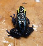 Dendrobates tinctorius "Robertus" hail from Suriname. These frogs can only be housed in groups as juveniles to sub adults, and even then it becomes risky as they near adulthood. Most of the issues arise from female to female aggression. All tinctorius are very territorial, and defend large areas in the wild. Females are aggressive, and fight for dominance over access to males. There has been plenty of empirical evidence of male on female aggression as well, with the female as the aggressor. A trio is the maximum size for a 55-75 gallon tank, but this is usually not advised. Please do not place more than two in one enclosure at adulthood, unless it is a 2.1.0 (two males and one female). As a pair, the female will usually lay 4 to 10 eggs on glossy leaves, but they can have larger clutches. Thick leaves (such as Philodendron, Costus, etc), thick leaf litter (such as magnolia), or a petri dish underneath a coconut hut works well for breeding. Please let us know if you have any questions. Additional information can be found, of course, through our complimentary Encyclopedia Database: DendroKnow Project.