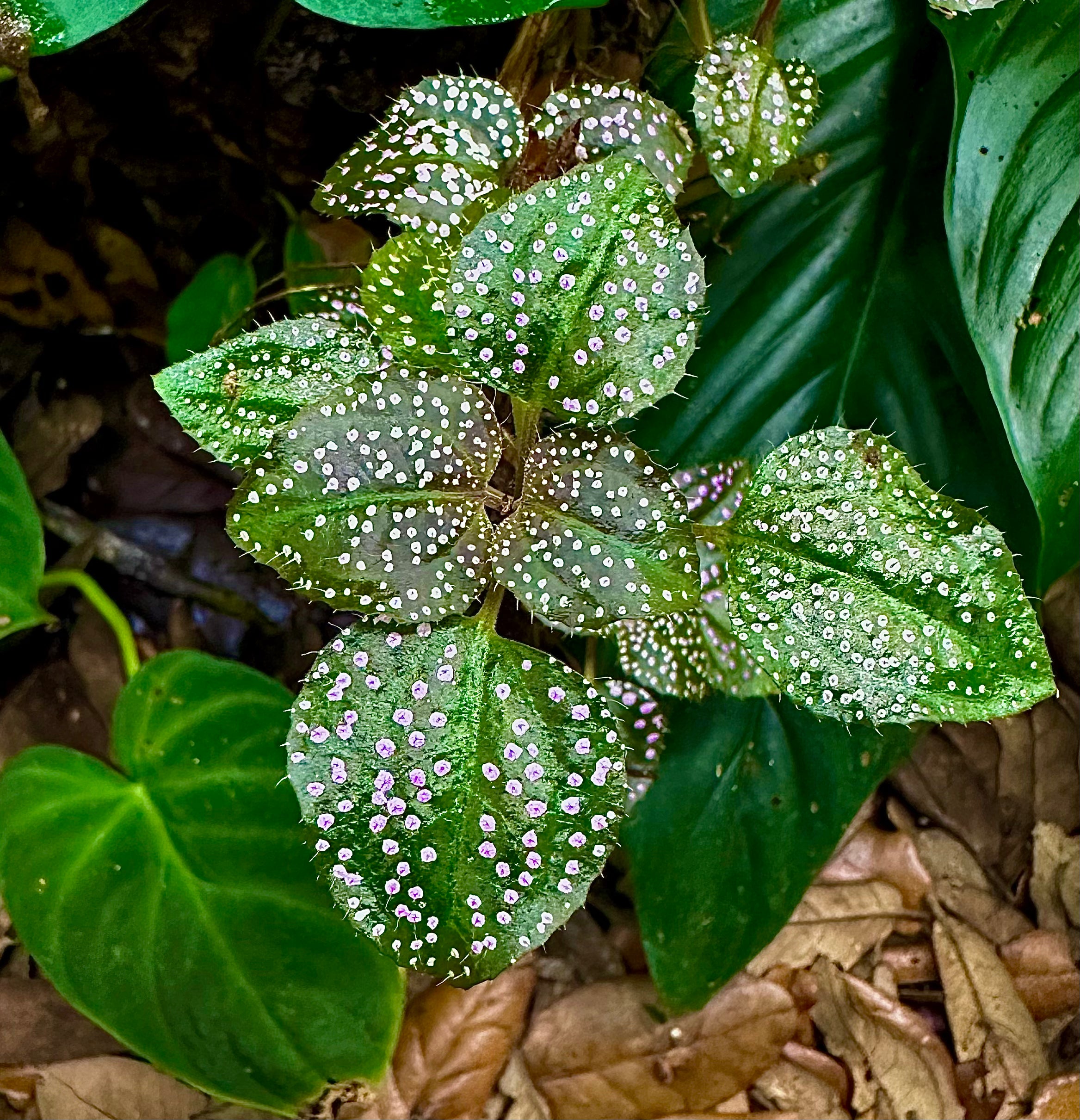 Calvoa sessiliflora is native to central to west Africa. It is a beautiful Melastome species that has green leaves with bright pink to white spots. It can grow into a small shrub-like bush but is easy to trim. It needs high humidity. Growing this plant in a terrarium until well established is advised. It MUST be kept humid.