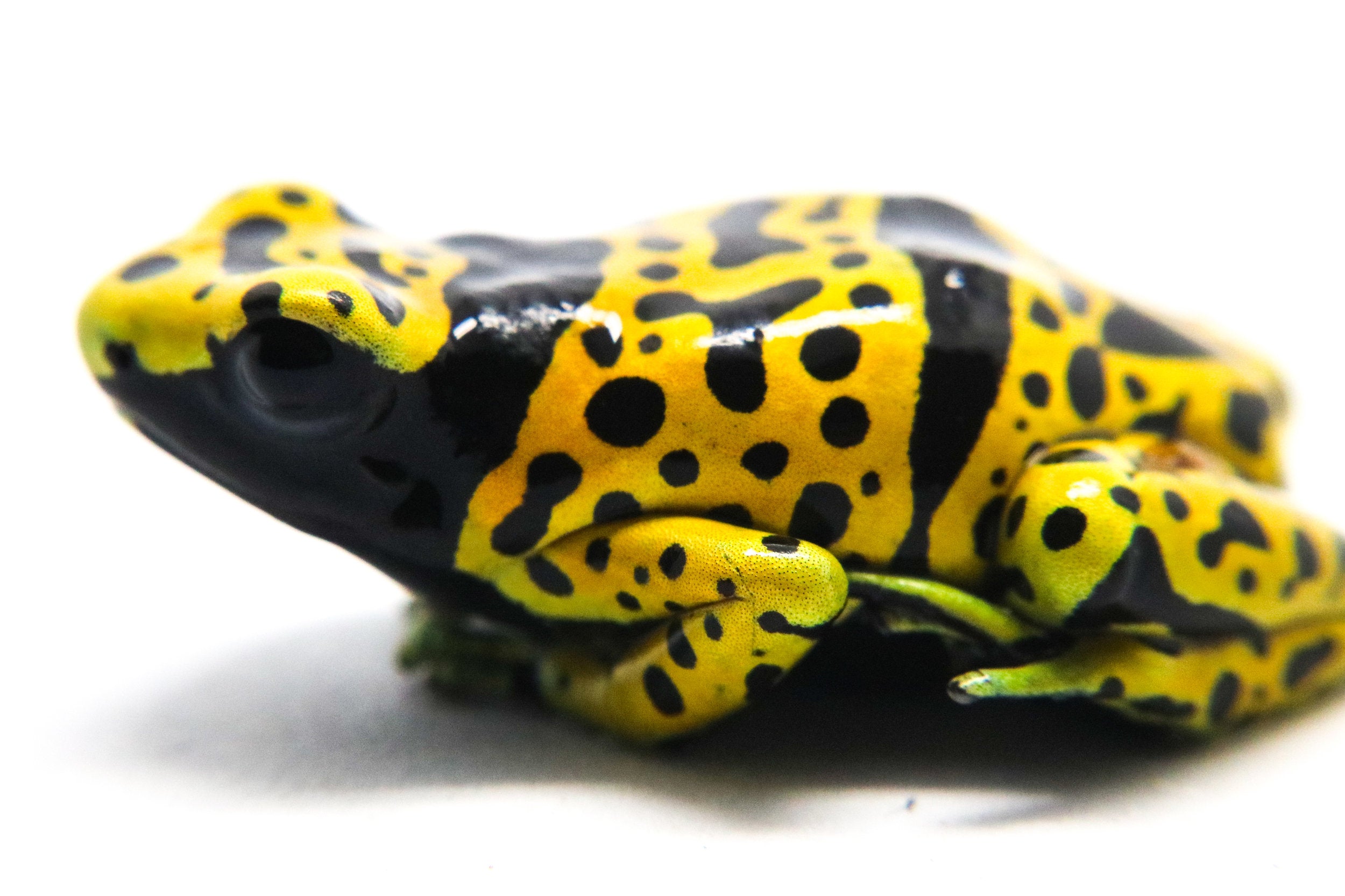 Dendrobates leucomelas "Fine Spot" is a locale from Bolivar. This frog is very social, moderately bold, and does moderately well in groups. There will be some aggression and wrestling between females, while males do not tend to partake in fighting often. Despite this, you can keep a decently large group of frogs together, even as adults, provided that there are plenty of hiding places and food available. Females will generally lay 4 to 10 eggs under leaf litter or a coconut hut with flat leaves or a petri dish underneath, but can lay larger clutches. Males will then usually transport tadpoles to a body of water, like tinctorius. However, you may pull the eggs and raise them yourself. If left alone, the tadpoles will cannibalize. Please let us know if you have any questions. Additional information can be found, of course, through our complimentary Encyclopedia Database: DendroKnow Project.