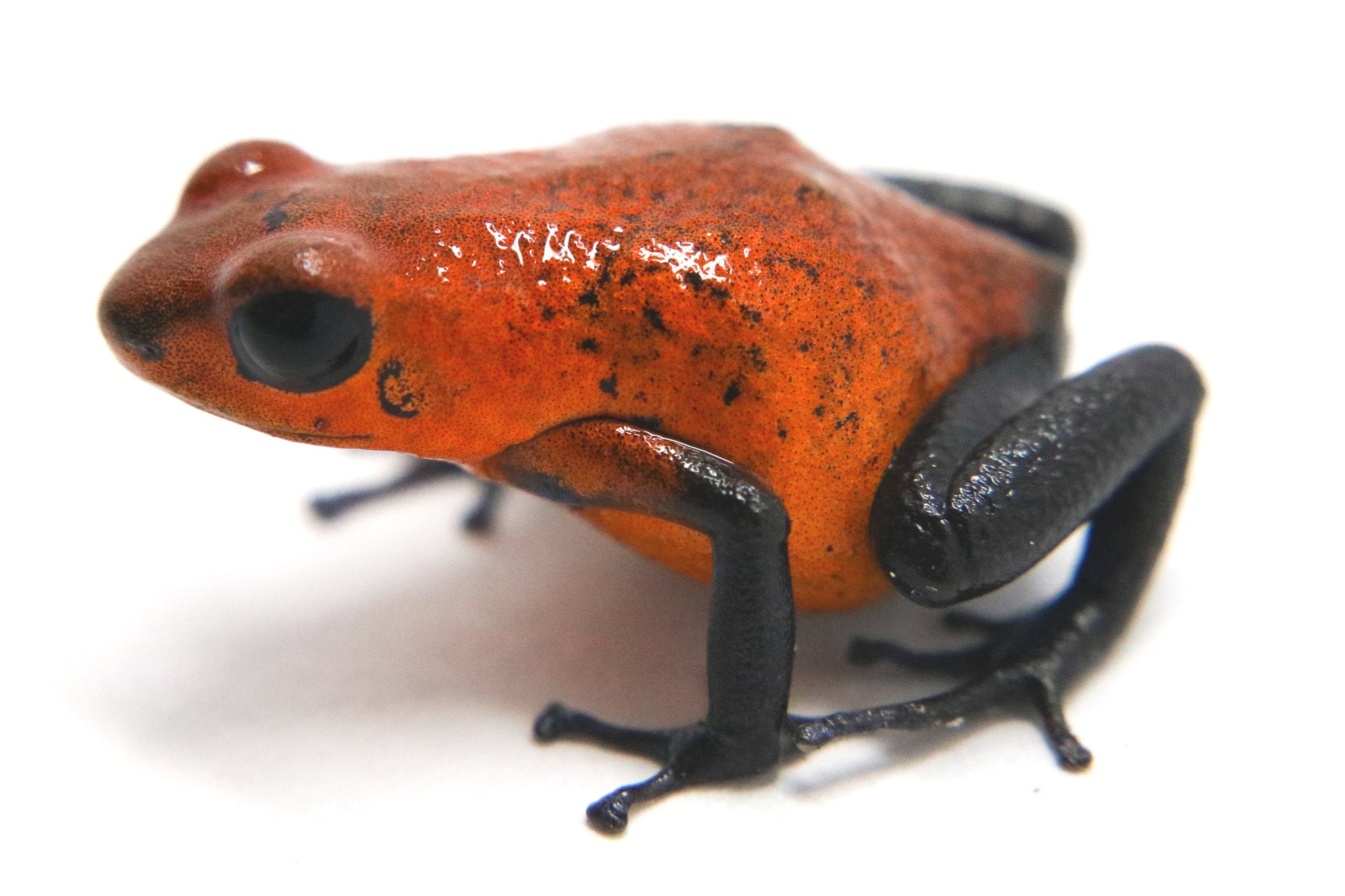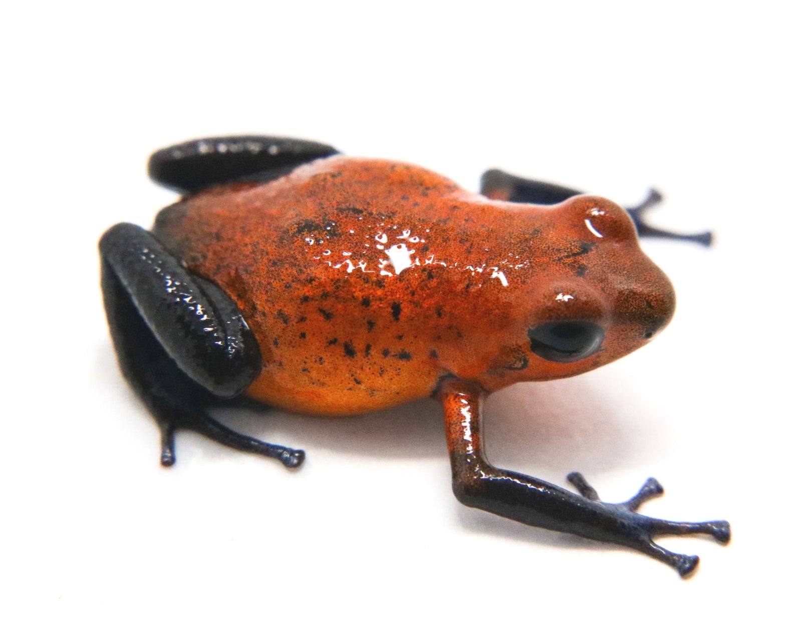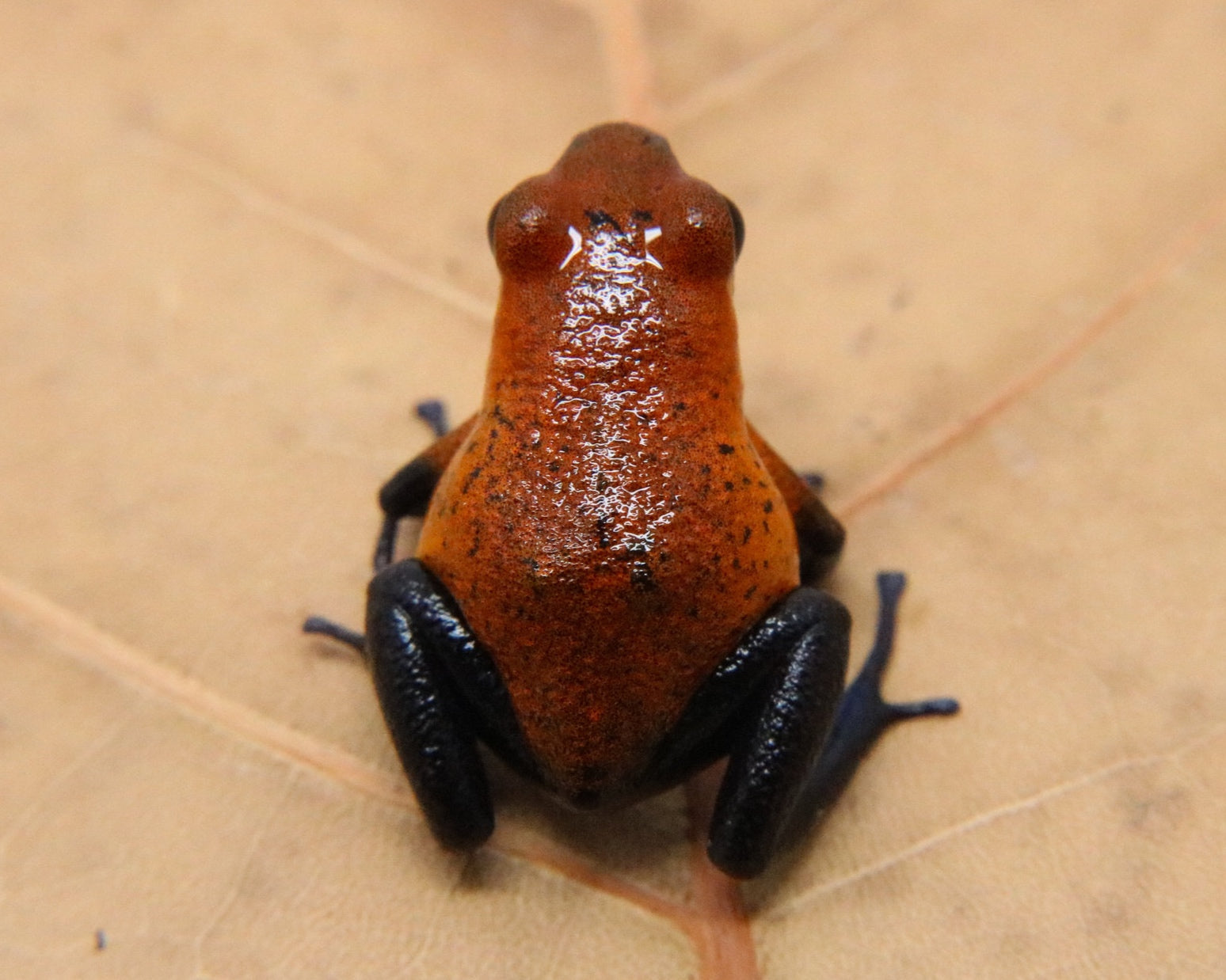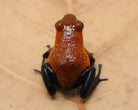 Oophaga typographica "Blue Jeans" is a small poison dart frog that inhabits the premontane slopes in Nicaragua through Costa Rican lowlands up to 900 m and into northwestern Panama. They do fine in small groups, but do best as a pair or trio when sexual maturity is reached. The males often have control of 1 to 5 square meters of territory in the wild, so rival males may display aggression for supremacy. They usually lay 3 to 10 eggs on glossy leaves, on glass, or sometimes in leaf litter. Tadpoles must be raised by adults because they feed on infertile eggs from the female. These dart frogs are interesting to many hobbyists because they exhibit biparental care. No more than a trio should go in a 20 gallon vertical conversion tank or a 18 x 24 Exo-terra enclosure. Additional information can be found, of course, through our complimentary Encyclopedia Database: DendroKnow Project.
