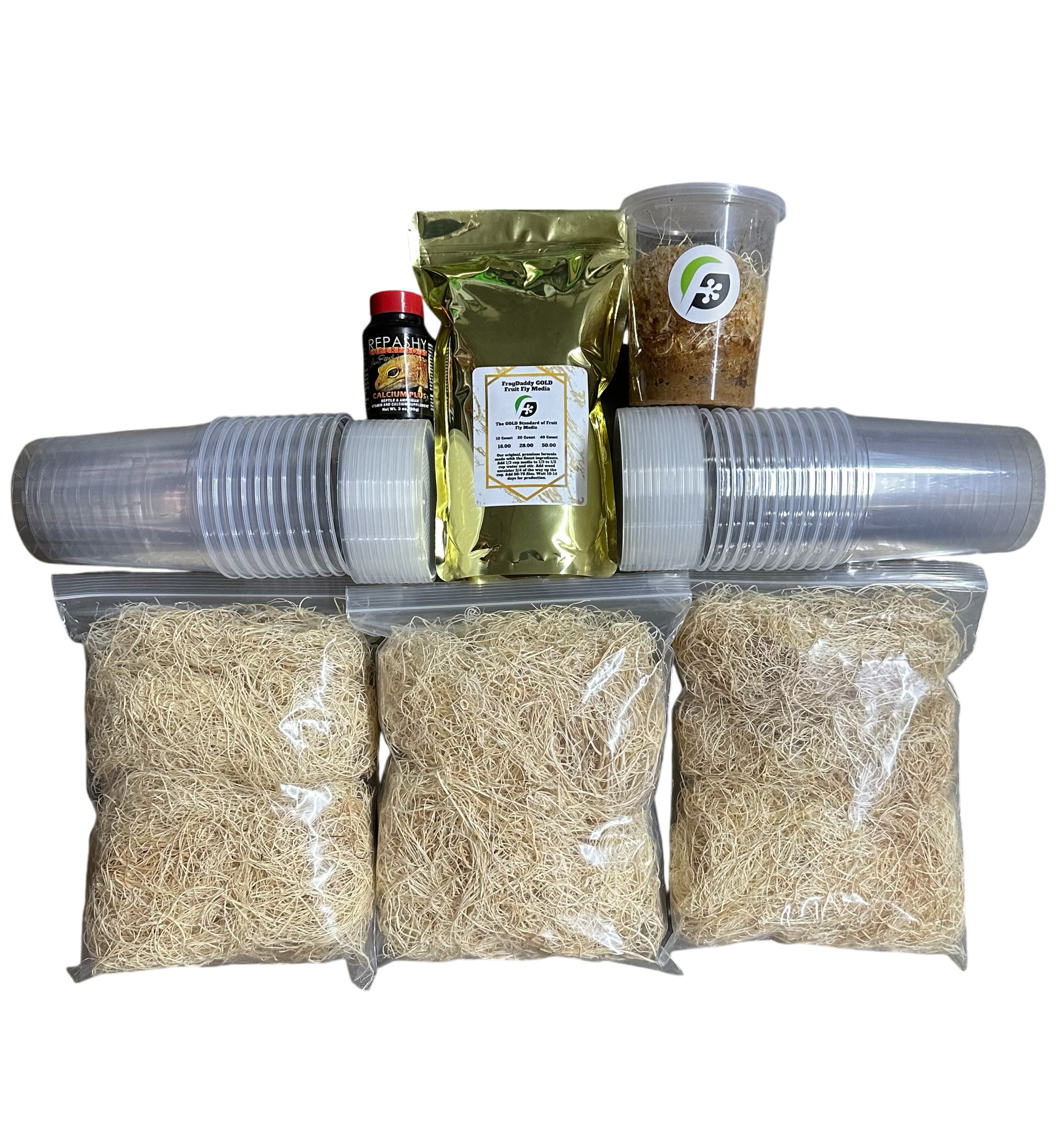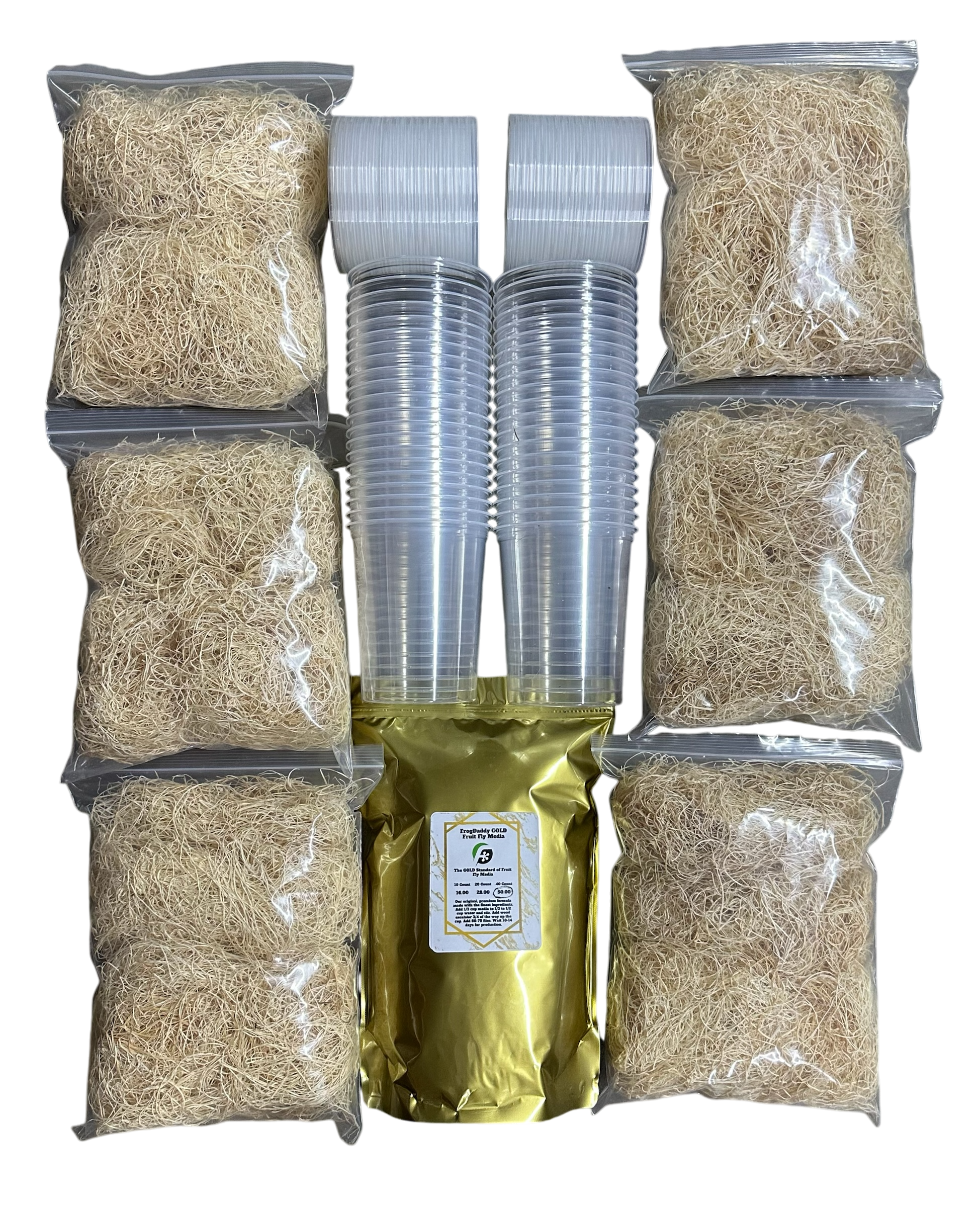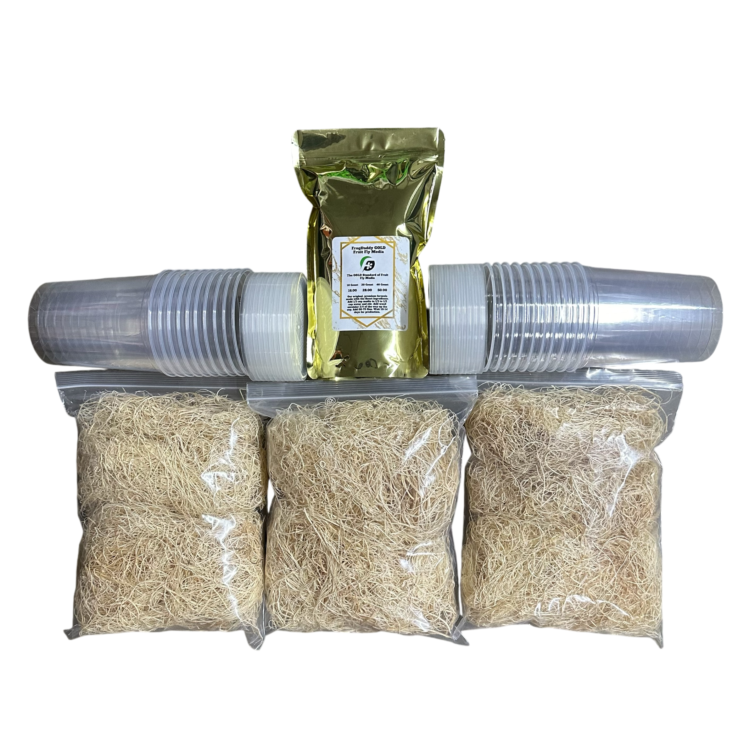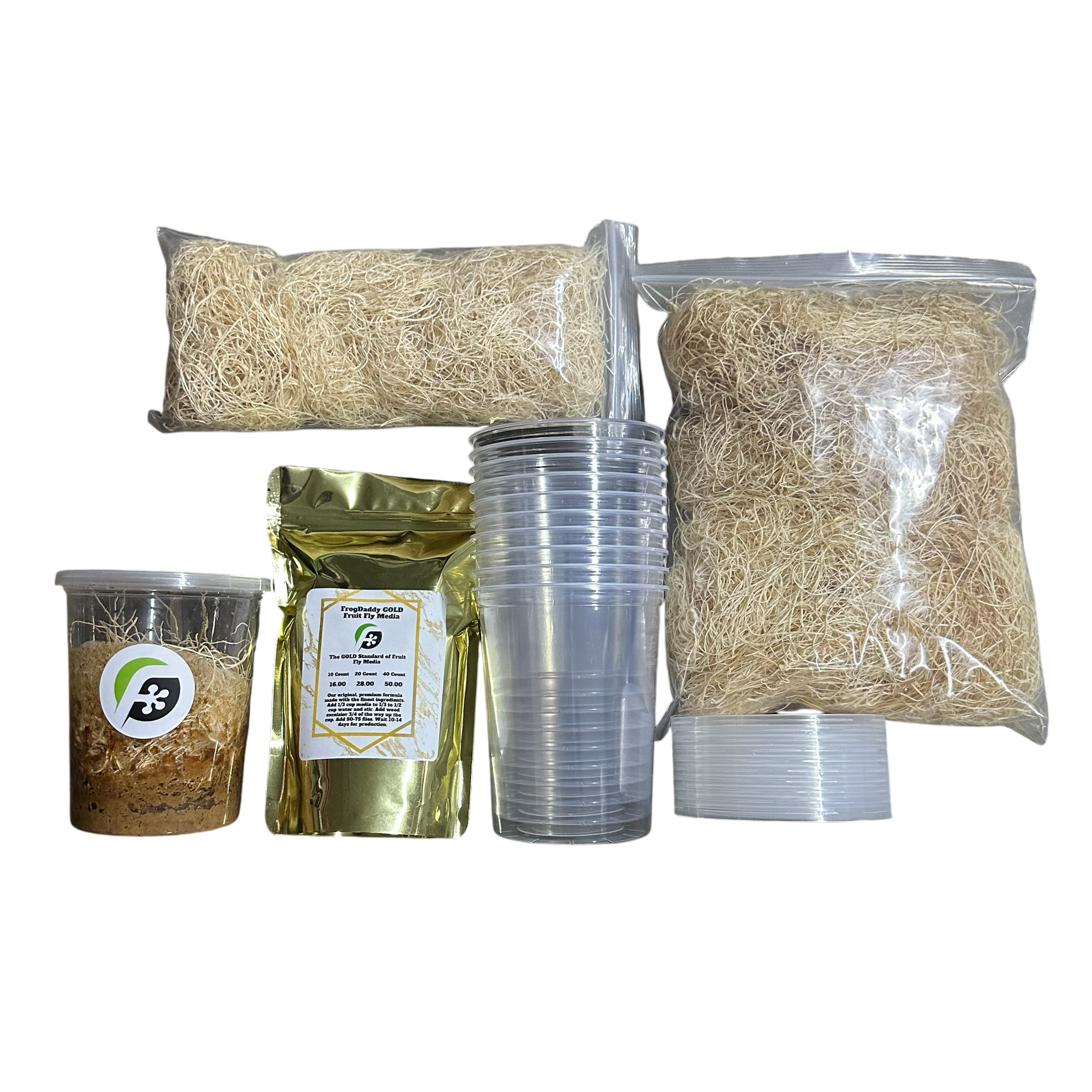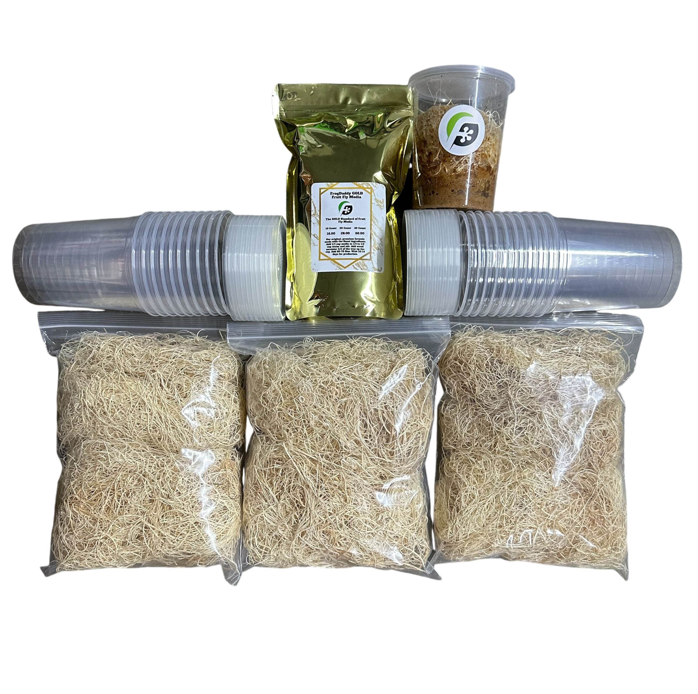 Our premium, high-yield FrogDaddy GOLD Fruit Fly Media: 10-15 // 20-30 // 40-60
