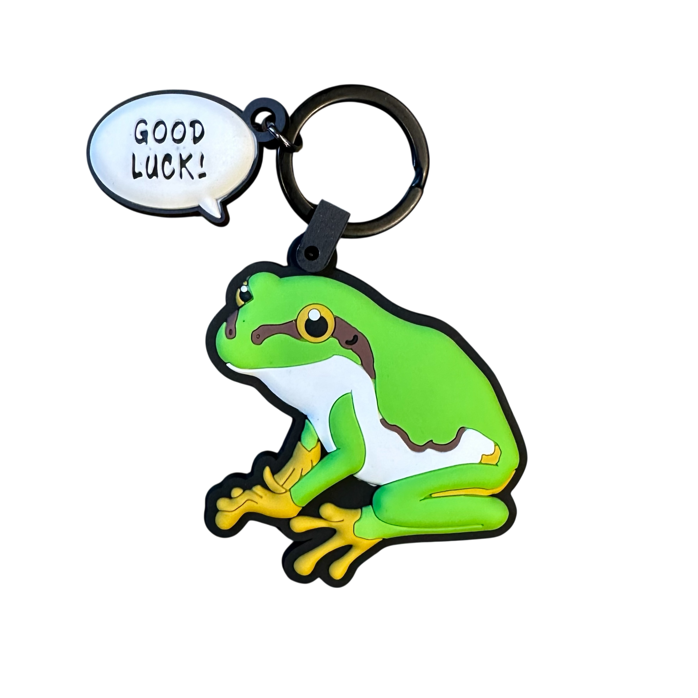 A cute luggage tag featuring a dumpy (White’s) tree frog!