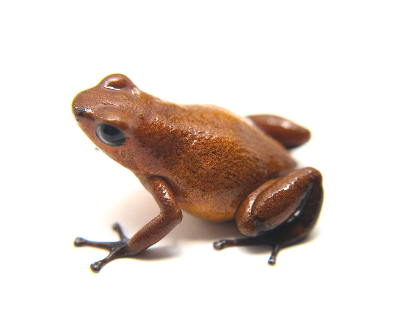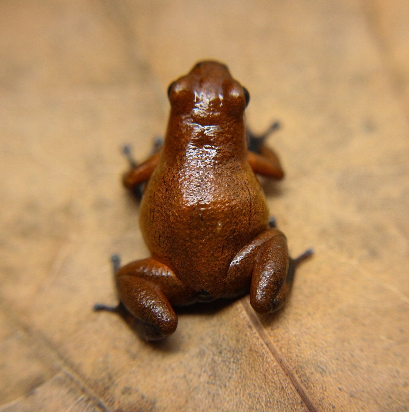 Oophaga pumilio "Finca Four"" is a small poison dart frog that has brilliant orange coloration. They do fine in small groups, but do best as a pair or trio when sexual maturity is reached. The males often have control of 1 to 5 square meters of territory in the wild, so rival males may display aggression for supremacy. They usually lay 3 to 10 eggs on glossy leaves, on glass, or sometimes in leaf litter. Tadpoles must be raised by adults because they feed on infertile eggs from the female. These dart frogs are interesting to many hobbyists because they exhibit biparental care. No more than a trio should go in a 20 gallon vertical conversion tank or a 18 x 24 Exo-terra enclosure. Additional information can be found, of course, through our complimentary Encyclopedia Database: DendroKnow Project.