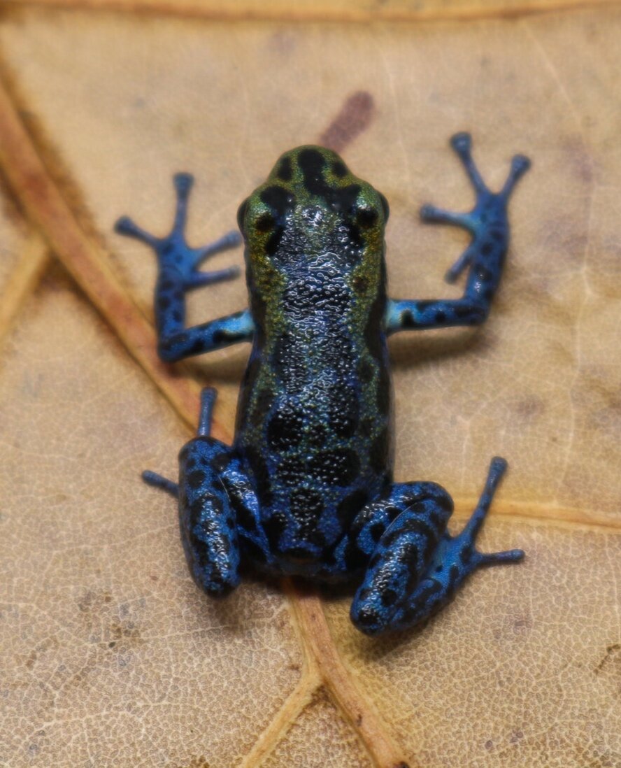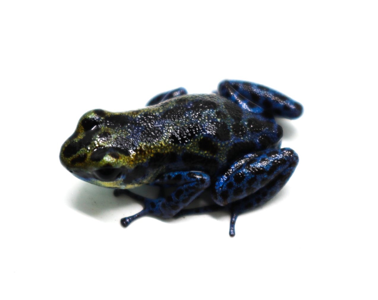 Oophaga pumilio "Loma Colubre / Culubre” is a small poison dart frog that inhabits Panama. They have boldly colored blue and black bodies with yellow to reddish colored heads. These pumilio are highly prized. They do fine in small groups, but do best as a pair or trio when sexual maturity is reached. The males often have control of 1 to 5 square meters of territory in the wild, so rival males may display aggression for supremacy. They usually lay 3 to 10 eggs on glossy leaves, on glass, or sometimes in leaf litter. Tadpoles must be raised by adults because they feed on infertile eggs from the female. These dart frogs are interesting to many hobbyists because they exhibit biparental care. No more than a trio should go in a 20 gallon vertical conversion tank or a 18 x 24 Exo-terra enclosure. Additional information can be found, of course, through our complimentary Encyclopedia Database: DendroKnow Project.