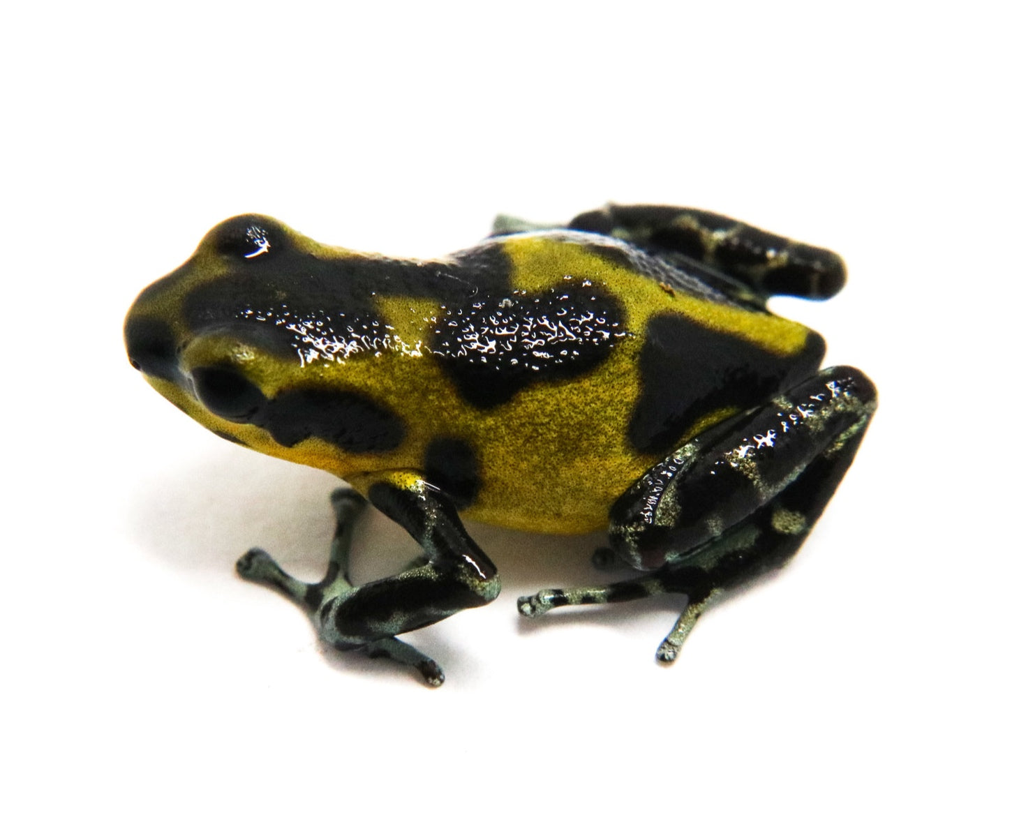Oophaga pumilio "Guarumo" is a small poison dart frog that inhabits Panama, just North of the Bocas del Toro region. These Oophaga greatly vary in phenotypic appearance, but most recent imports show a yellow coloration. "Guarumo" that were imported in 2008 look very similar to these "Rambala" and the "Rambala" in the book: The Complete Oophaga pumilio are an orange coloration - which is not represented in our hobby. They do fine in small groups, but do best as a pair or trio when sexual maturity is reached. The males often have control of 1 to 5 square meters of territory in the wild, so rival males may display aggression for supremacy. They usually lay 3 to 10 eggs on glossy leaves, on glass, or sometimes in leaf litter. Tadpoles must be raised by adults because they feed on infertile eggs from the female. These dart frogs are interesting to many hobbyists because they exhibit biparental care. No more than a trio should go in a 20 gallon vertical conversion tank or a 18 x 24 Exo-terra enclosure. Additional information can be found, of course, through our complimentary Encyclopedia Database: DendroKnow Project.