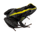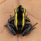 Phyllobates aurotaenia “Yellow” are found on the Pacific coast of Columbia. They have beautiful, starry-sky legs and are much more uncommon in the hobby now. These frogs are moderately shy throughout their lifespans (can get bolder with age, as with any frog), and do very well in groups, provided that the enclosure is large enough. It is recommended that no more than 3 go into a 10 gallon tank, 4-5 in a 20 gallon tank, and 6-8 in a 40 gallon tank. Females will generally lay 10-15 eggs under leaf litter or a coconut hut with flat leaves or a petri dish underneath. The frogs will transport tadpoles if left alone. Additional information can be found, of course, through our complimentary Encyclopedia Database: DendroKnow Project.