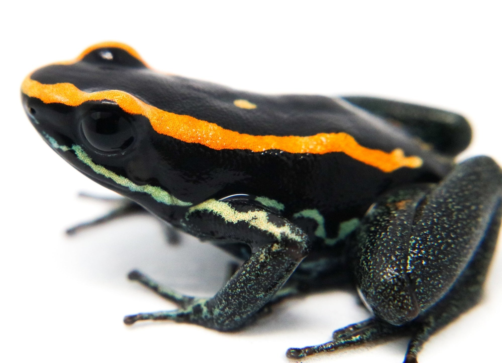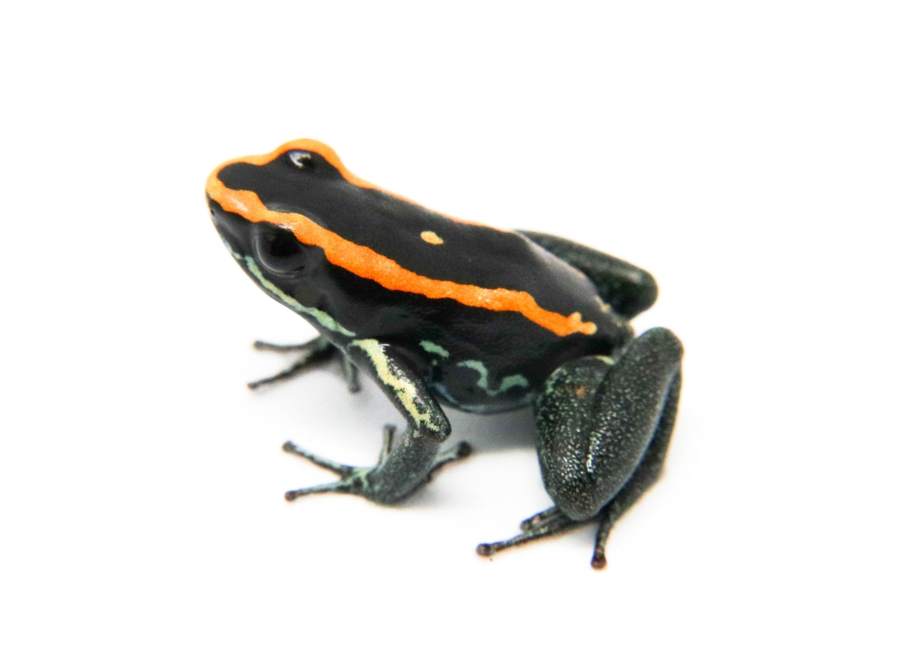 Phyllobates vittatus are found in Golfo Dulce on the pacific coast of Costa Rica. These frogs are moderately shy throughout their lifespans (can get bolder with age, as with any frog), and do very well in groups, provided that the enclosure is large enough. It is recommended that no more than 3 go into a 10 gallon tank, 4-5 in a 20 gallon tank, and 6-8 in a 40 gallon tank. Females will generally lay 10-15 eggs under leaf litter or a coconut hut with flat leaves or a petri dish underneath. The frogs will transport tadpoles if left alone. Additional information can be found, of course, through our complimentary Encyclopedia Database: DendroKnow Project.