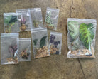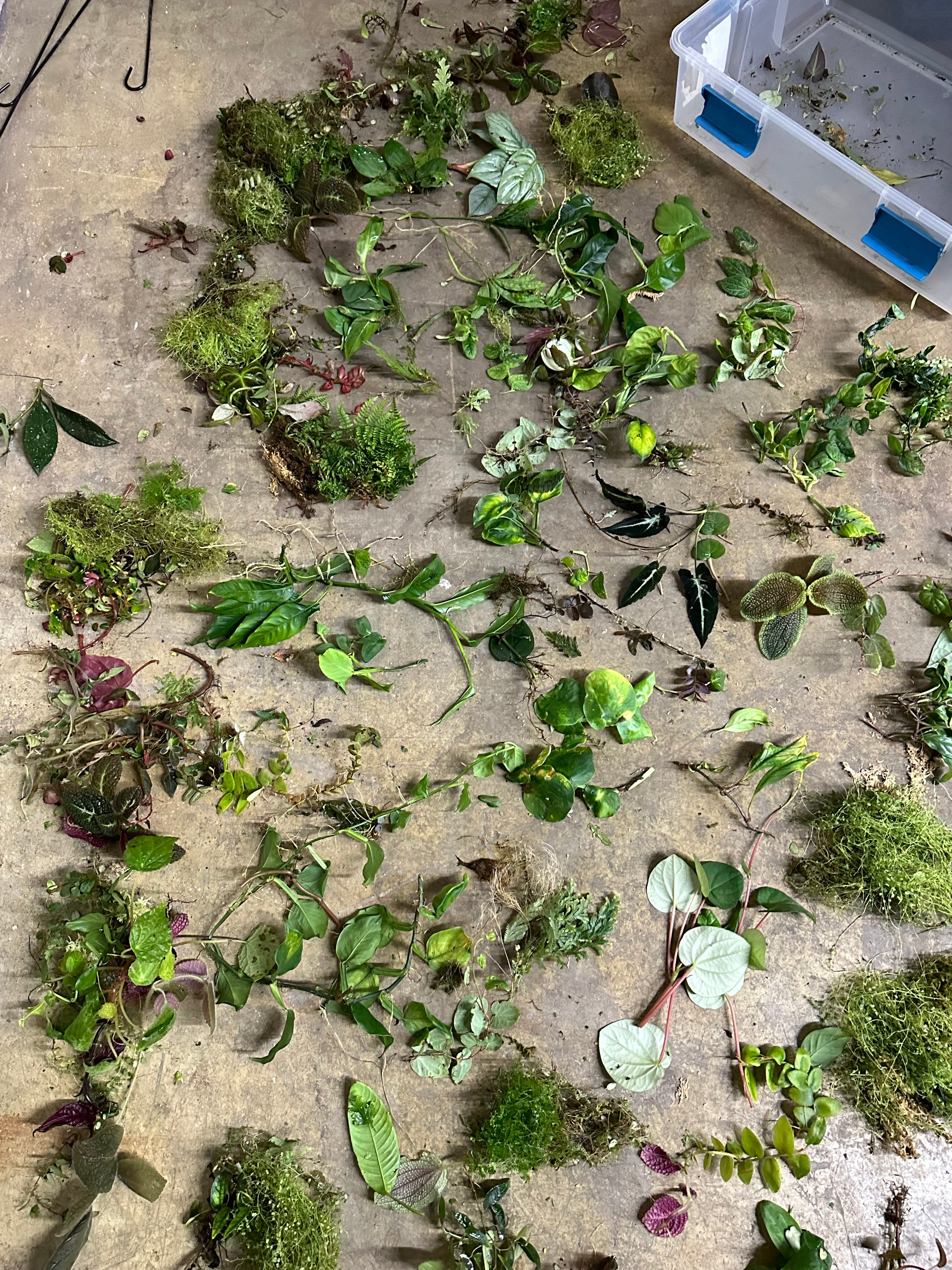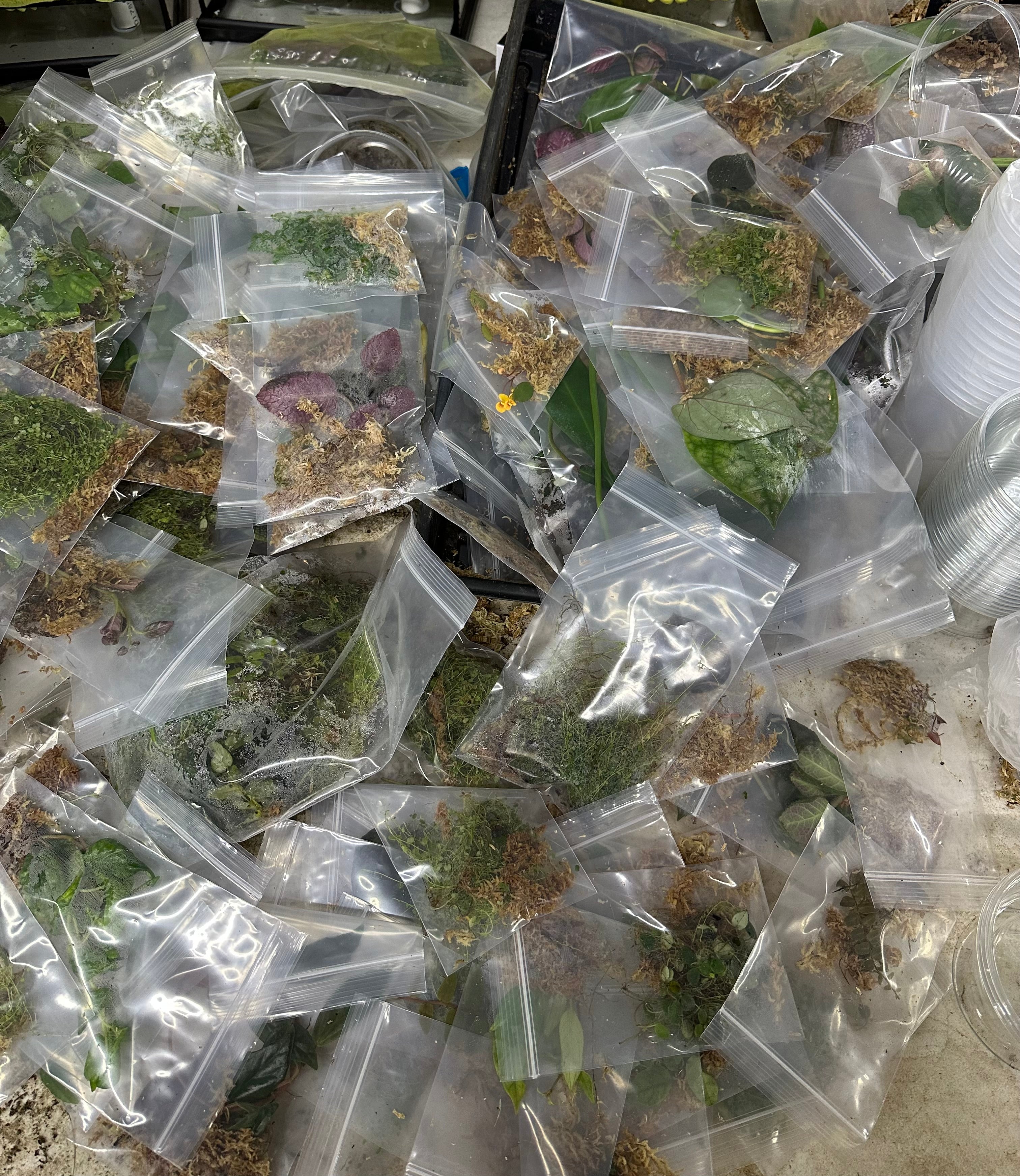 1. These are all terrarium plant cuttings, some beautiful, some…not so beautiful, but all healthy! These cuttings come in bags with a small amount of moss to retain their health through shipping. They are used to high to very high humidity, and will appreciate maintaining high humidity while rooting. If you plan to transition to lower humidity, you must root them first and then proceed to do so slowly, generally over a month’s time from receiving.