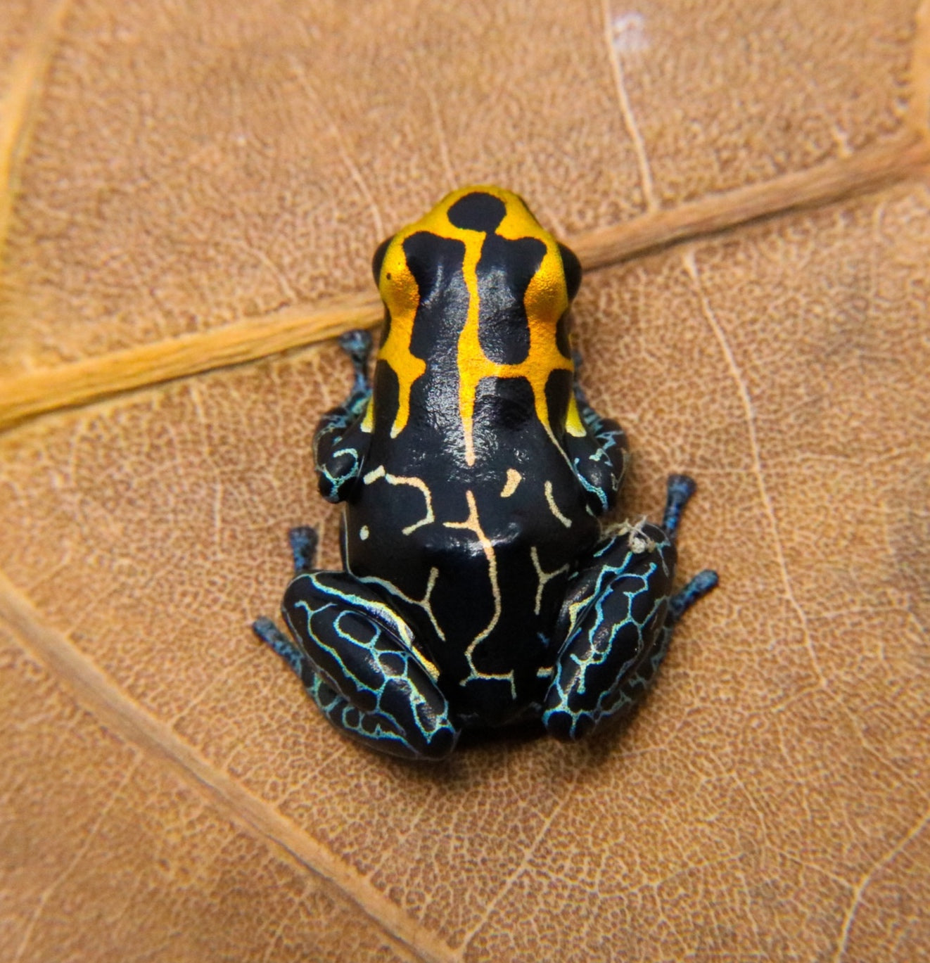 Ranitomeya fantastica "Lowland" is a lowland species, inhabiting Peru. They do decently in groups, but males can get aggressive. R. fantastica usually lay 3 to 6 eggs in leaf litter, horizontal film canisters, or bromeliads. Tadpoles can be pulled or left to be raised by adults, but may cannibalize if left with other tadpoles in proximity with less-than-adequate food. Egg eating may occur from rival females, and wrestling will often occur between same-sex frogs. No more than a pair should go in a 10 gallon tank or a 12 x 12 x 18 ExoTerra tank, but we recommend larger enclosures due to their speed. Please contact us with further questions.