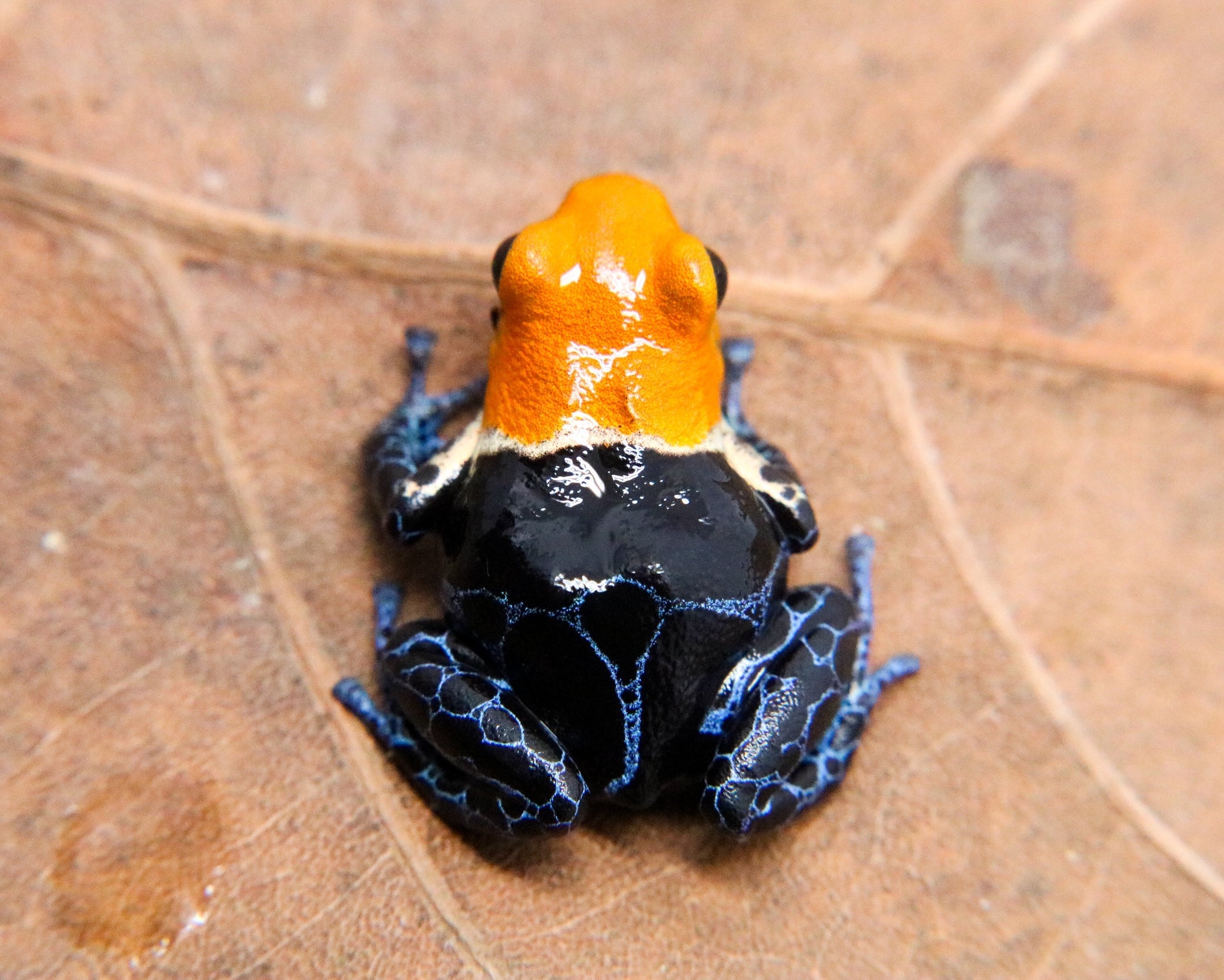 Ranitomeya fantastica "True Nominal" is a lowland species, inhabiting Peru. They do decently in groups, but males can get aggressive. R. fantastica usually lay 3 to 6 eggs in leaf litter, horizontal film canisters, or bromeliads. Tadpoles can be pulled or left to be raised by adults, but may cannibalize if left with other tadpoles in proximity with less-than-adequate food. Egg eating may occur from rival females, and wrestling will often occur between same-sex frogs. No more than a pair should go in a 10 gallon tank or a 12 x 12 x 18 ExoTerra tank, but we recommend larger enclosures due to their speed. Please contact us with further questions.