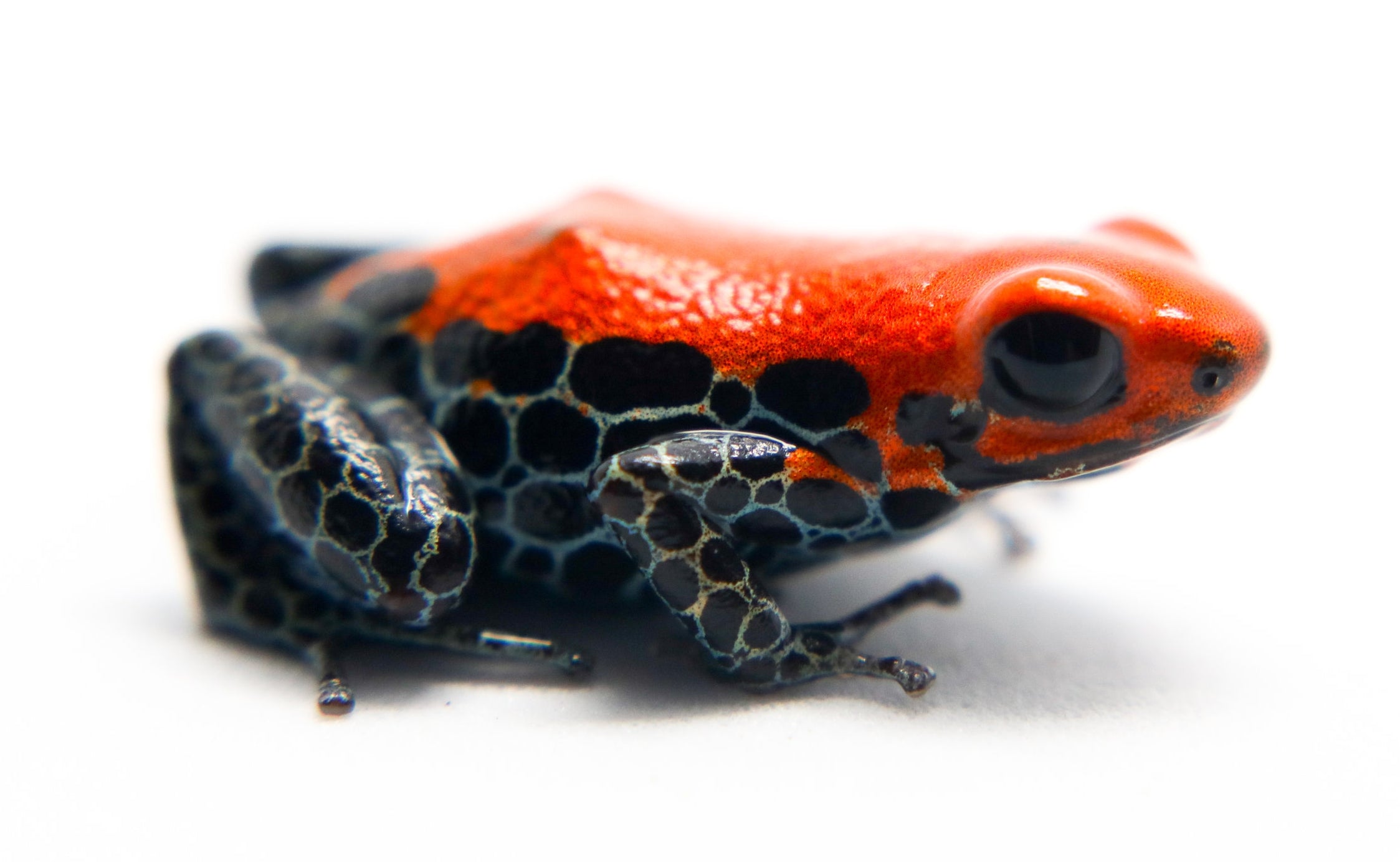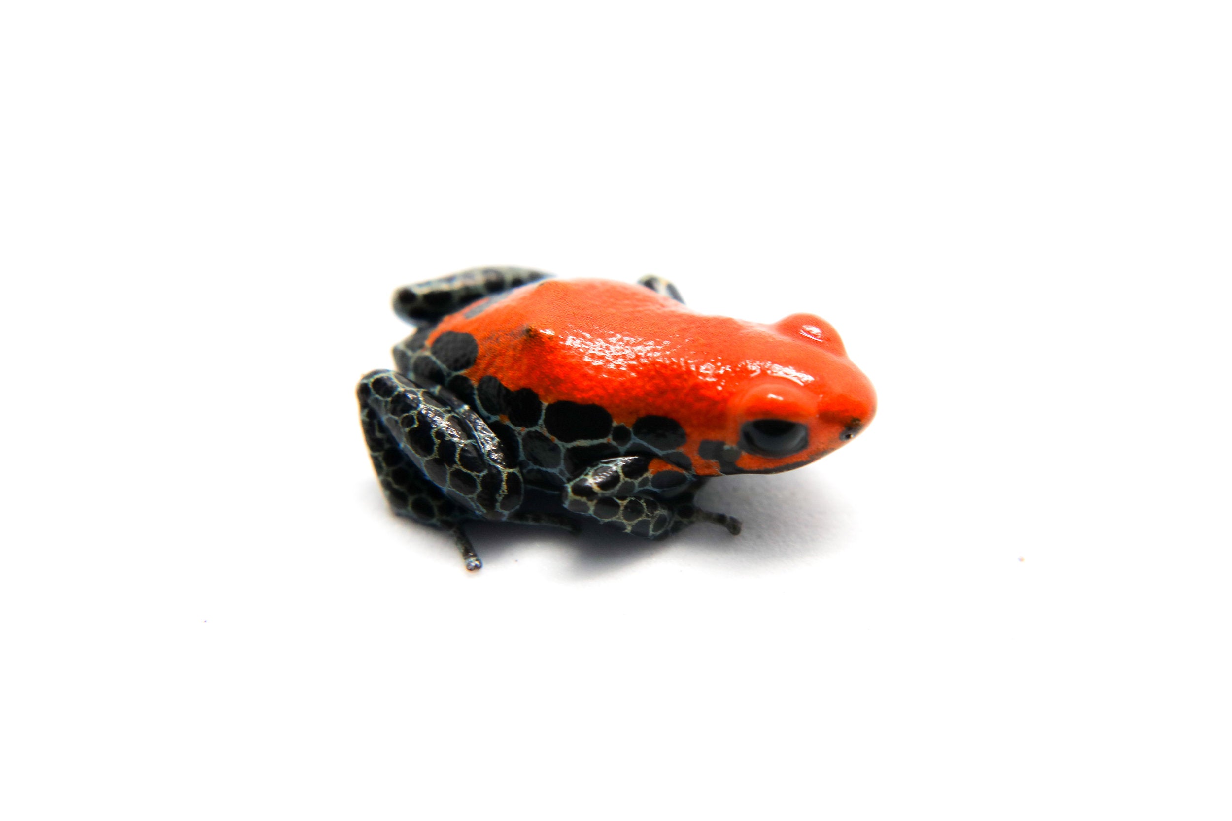 Ranitomeya reticulata are very small thumbnails that hail from the lowlands near Iquitos, Peru. They do well in pairs or trios, and tend to make decent group frogs (same sex aggression can occur). R reticulata usually lay 4-8 eggs in leaf litter or on vegetation. Tadpoles can be pulled or left to be raised by adults, but may cannibalize if left with other tadpoles in proximity with less-than-adequate food. Minor egg eating may occur from rival females. No more than a pair should go in a 10 gallon vertical conversion tank or a 12 x 12 x 18 ExoTerra tank, but we recommend larger enclosures. Please contact us with further questions.