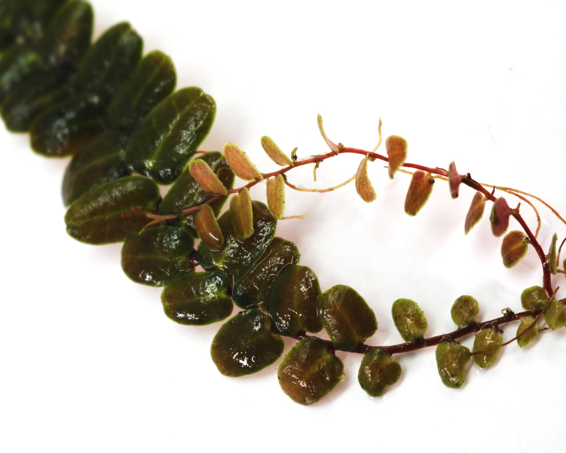 This Marcgravia is a beautiful one! This Marcgravia grows at a moderate speed. It has ovate leaves that come out with deep, almost black color. It is of average to uncommon rarity in the USA vivarium hobby. These vines appreciate lower light while rooting, and will display high levels of phototropism. They appreciate moderate to high humidity, and do not like water standing on their leaves. We like to root Marcgravia flattened out on sphagnum moss. We keep them in lower light and keep the moss moist but not wet while rooting. We are usually very generous with these portions. Many rooted options have multiple leads.