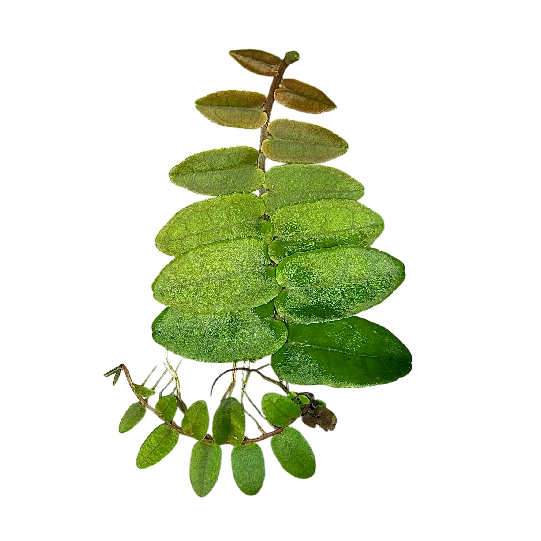 This Marcgravia is found throughout Central and South America. This is a beginner Marcgravia that grows faster and is more tolerant of negative conditions than other Marcgravia. It is the most common Marcgravia in the vivarium hobby. These vines appreciate lower light while rooting, and will display high phototropism. They appreciate moderate to high humidity, and do not like water standing on their leaves. We like to root Marcgravia flattened out on sphagnum moss. We keep them in lower light and keep the moss moist but not wet while rooting. We are usually very generous with these portions. Many rooted options have multiple leads.