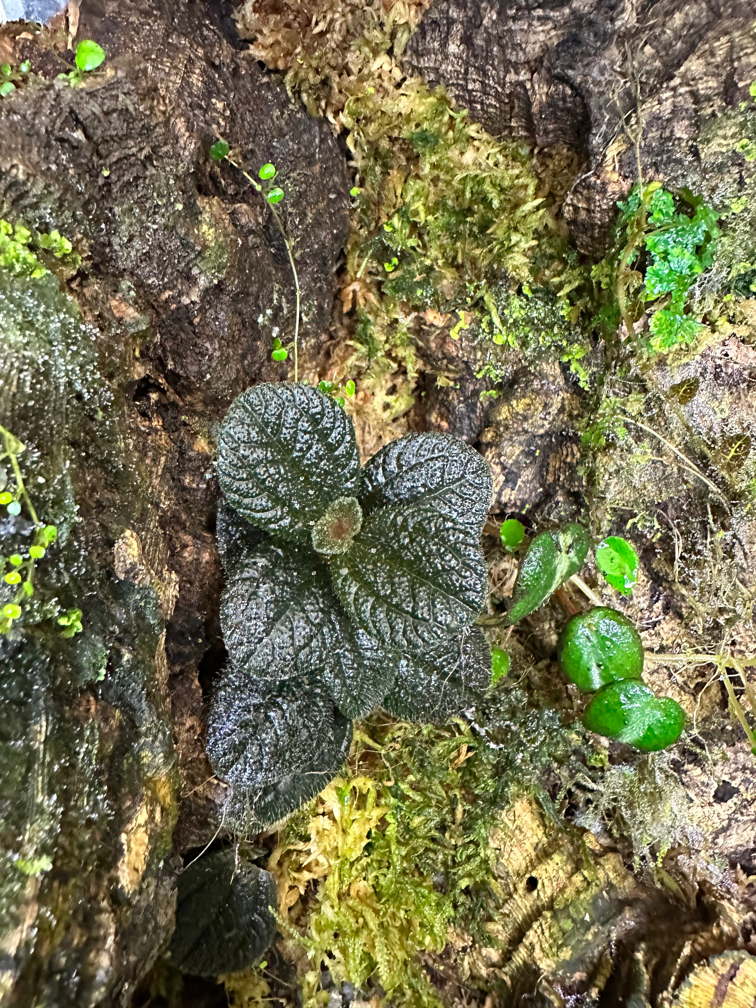Pilea repens is an amazingly bullate species from the West Indies. This Pilea does well in bright, indirect light and moderate humidity, but can tolerate lower light conditions. It does not require much ventilation. Moist soil and sphagnum moss are helpful for rooting this species. It roots quickly, and can be pruned to create plantlets and interesting structures. You can snip off just under wherever aerial roots form and replant it. These Pilea are easy to propagate.