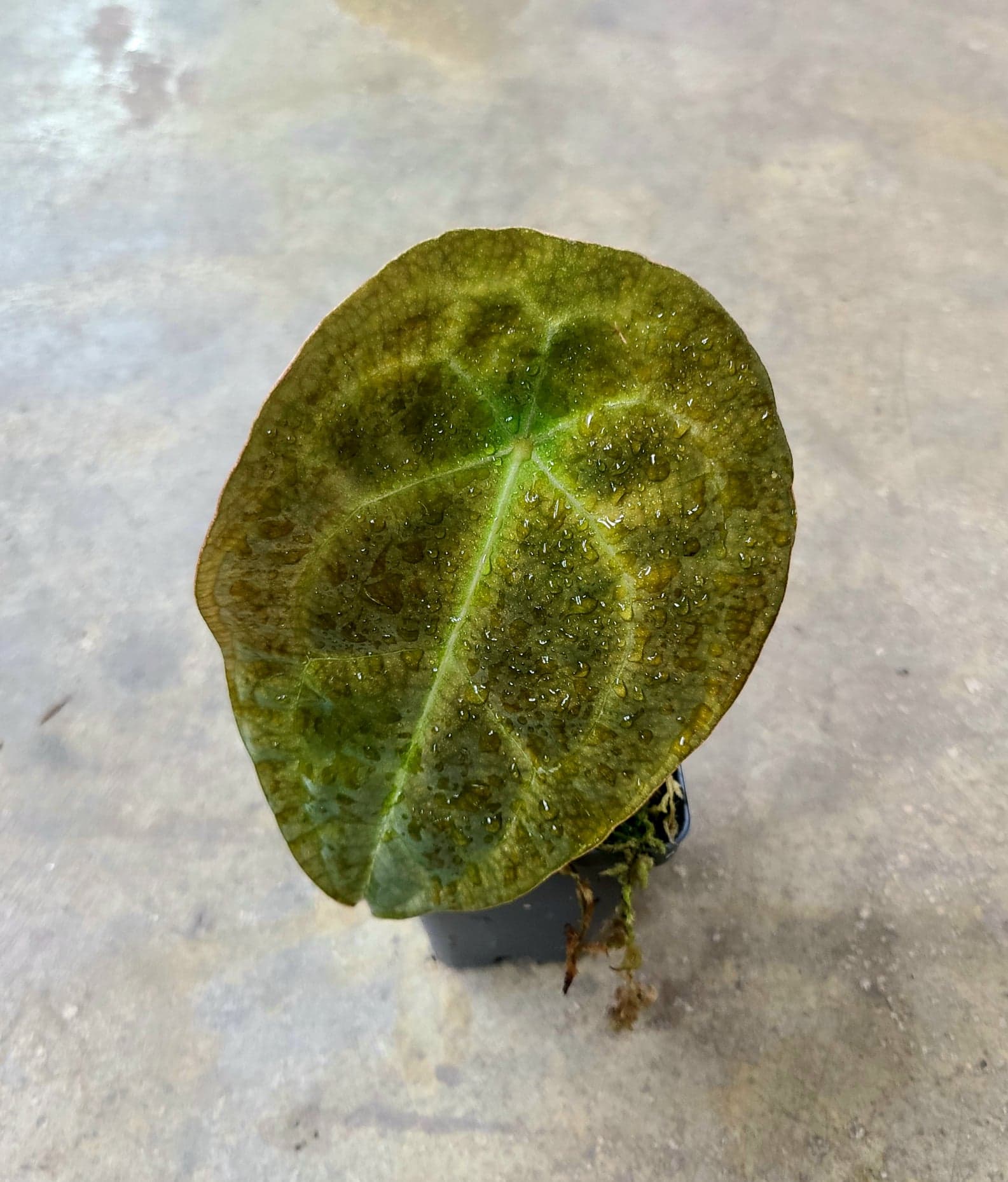 Anthurium forgetii is a beautiful Anthurium with velvety circular-shaped leaves with a classic central sinus. These are some of our favorites. They are native to Columbia. Vivarium conditions are fantastic for this plant, but of course, it will not reach its full potential unless given the space. It does well in moderate, indirect light and high humidity, and appreciates airflow.